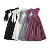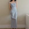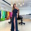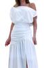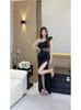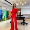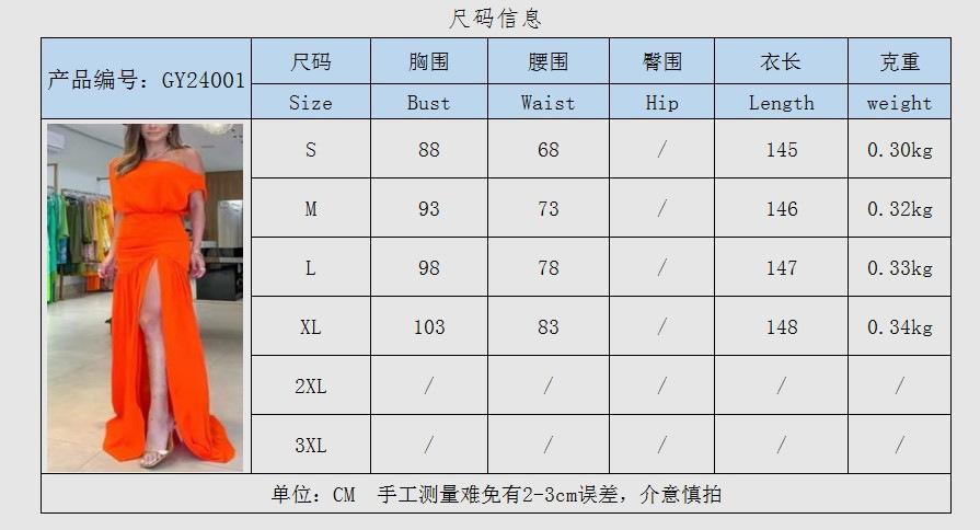 Ropa de verano para mujer europea y americana 2024, moda, cuello oblicuo, hombros descubiertos, cintura ajustada, abertura, largo hasta el suelo, vestido liso de color sólido