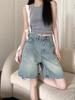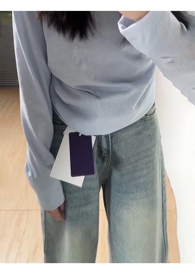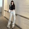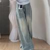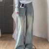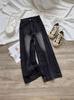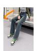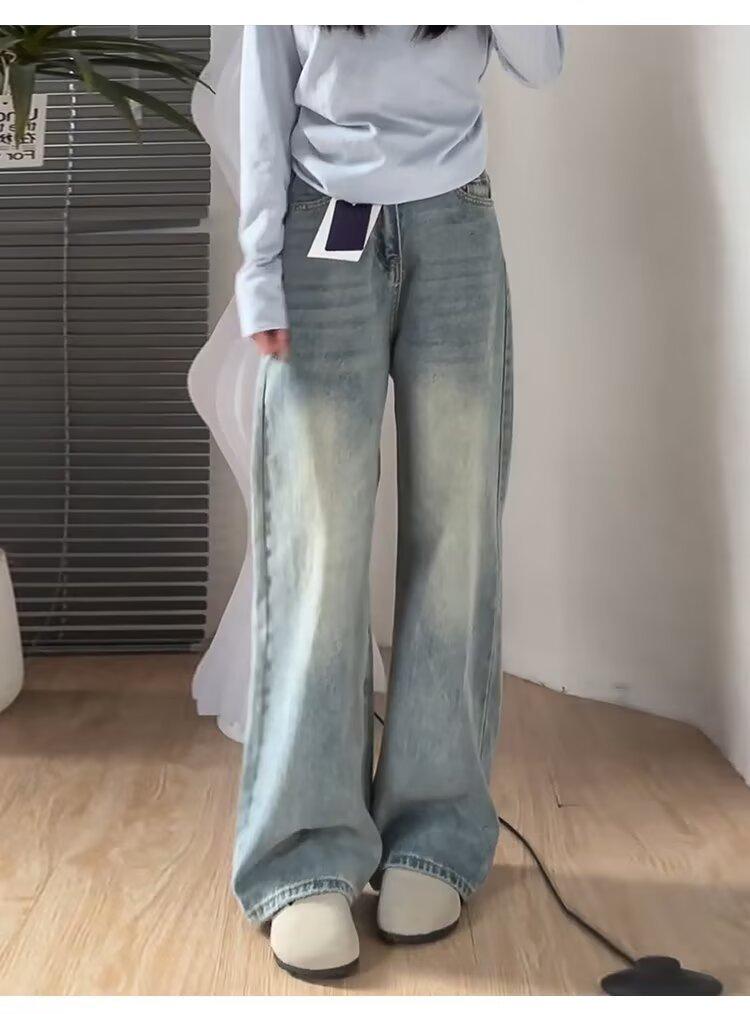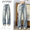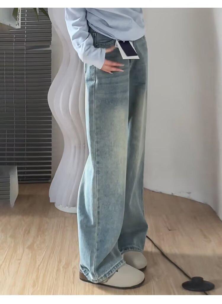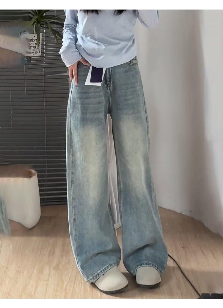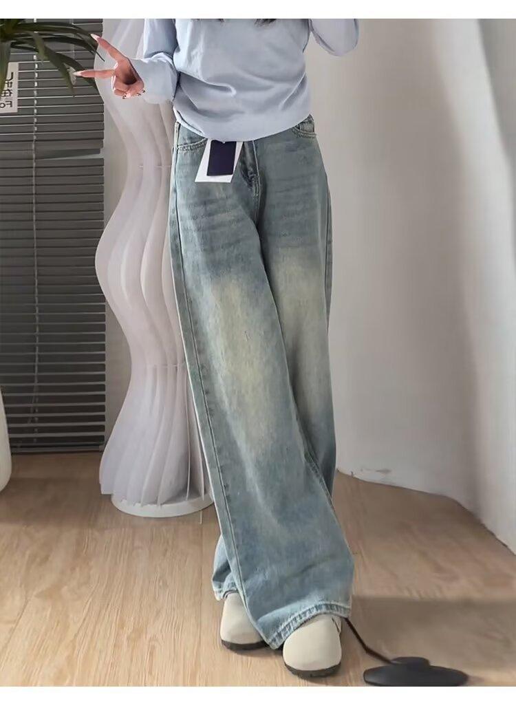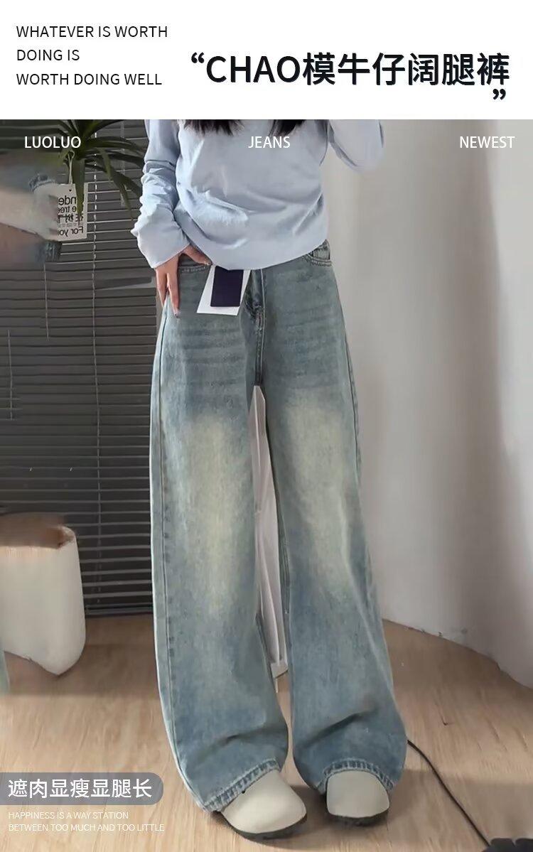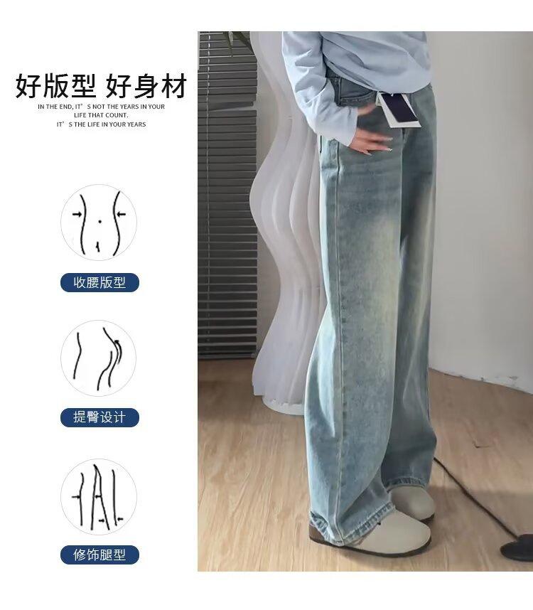 Jeans Rectos Retro Azules para Mujer Otoño Nuevo Cintura Alta Talla Grande Adelgazantes Cuerpo Forma Pera Pantalones Sueltos Pierna Ancha