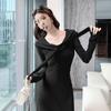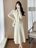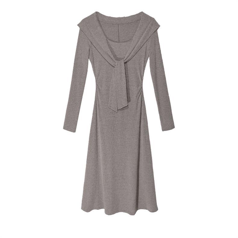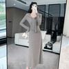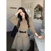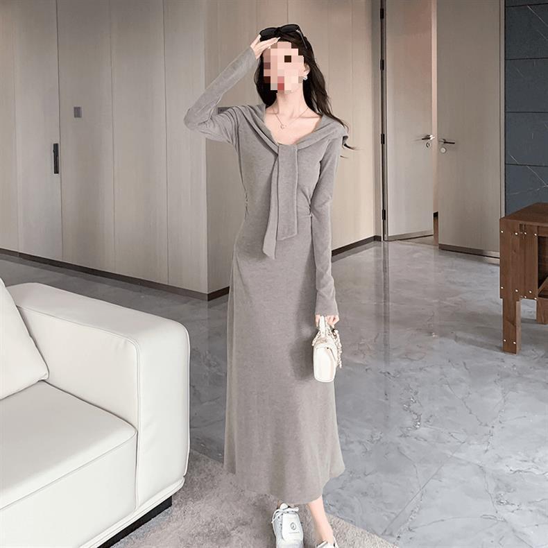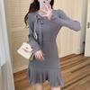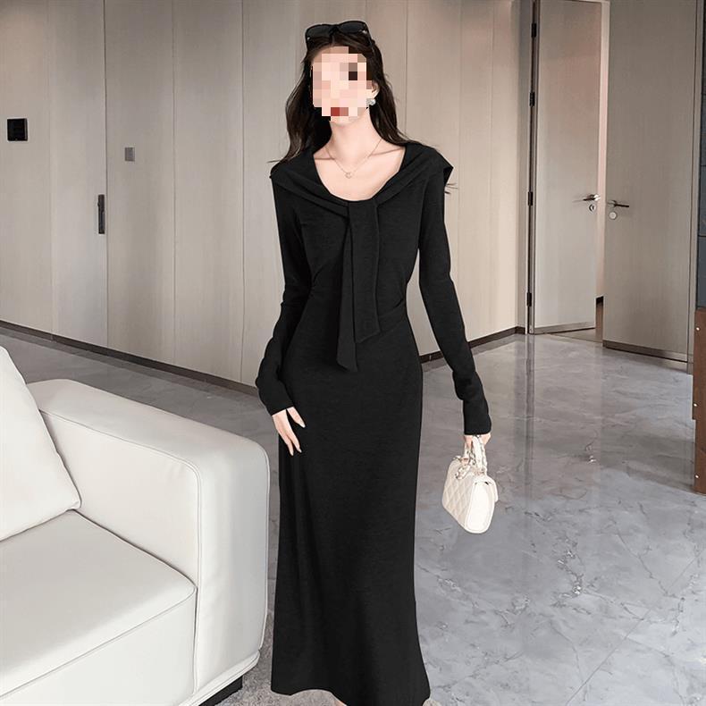 Vestido de diseño tejido 2025 sentido de la moda francés temperamento adelgazante vestido largo nuevo principios de otoño para mujer ceñido a la cintura
