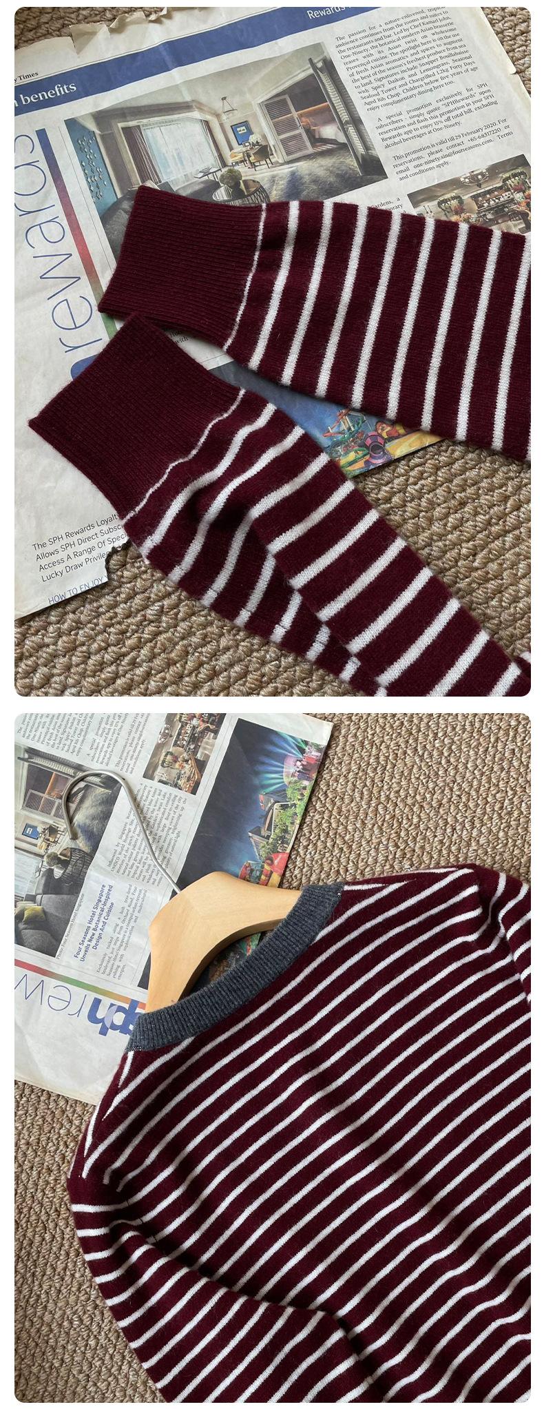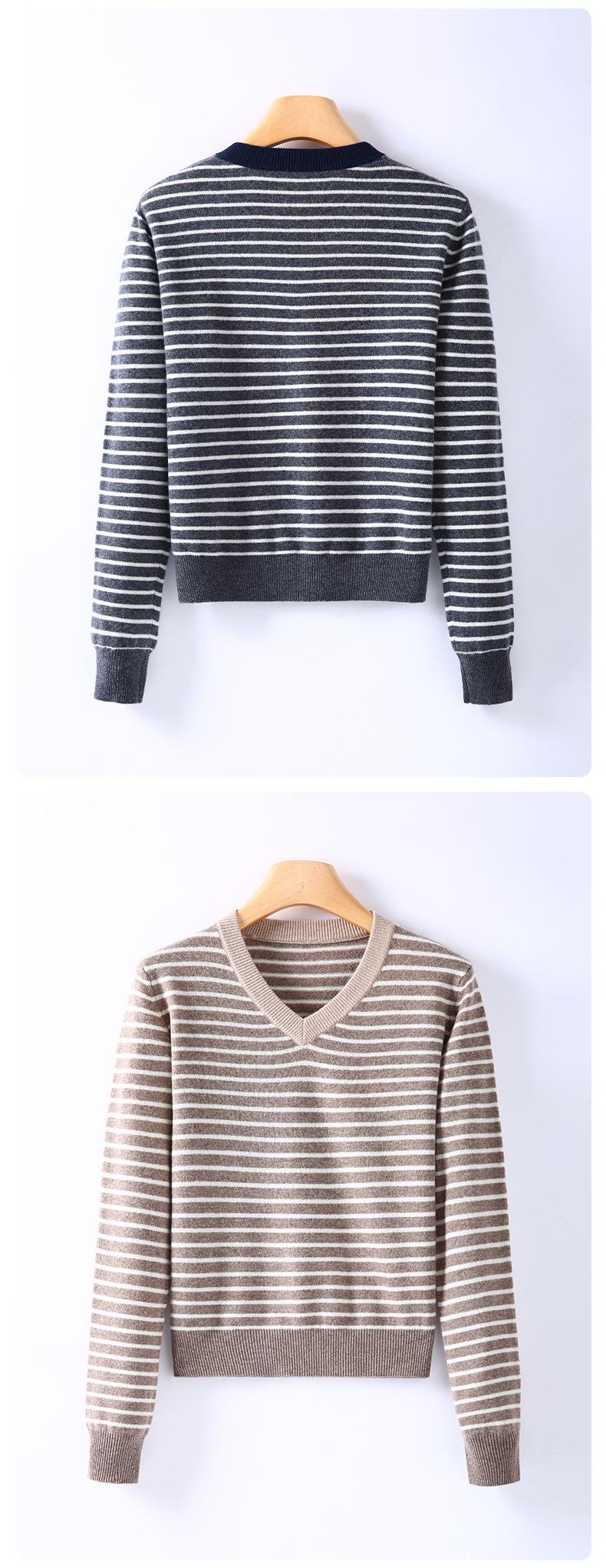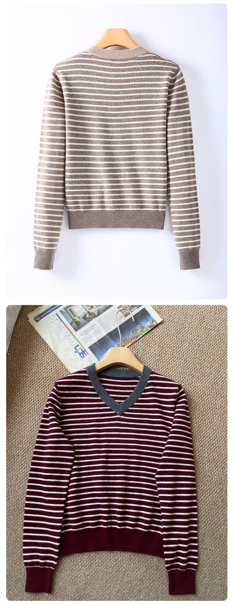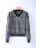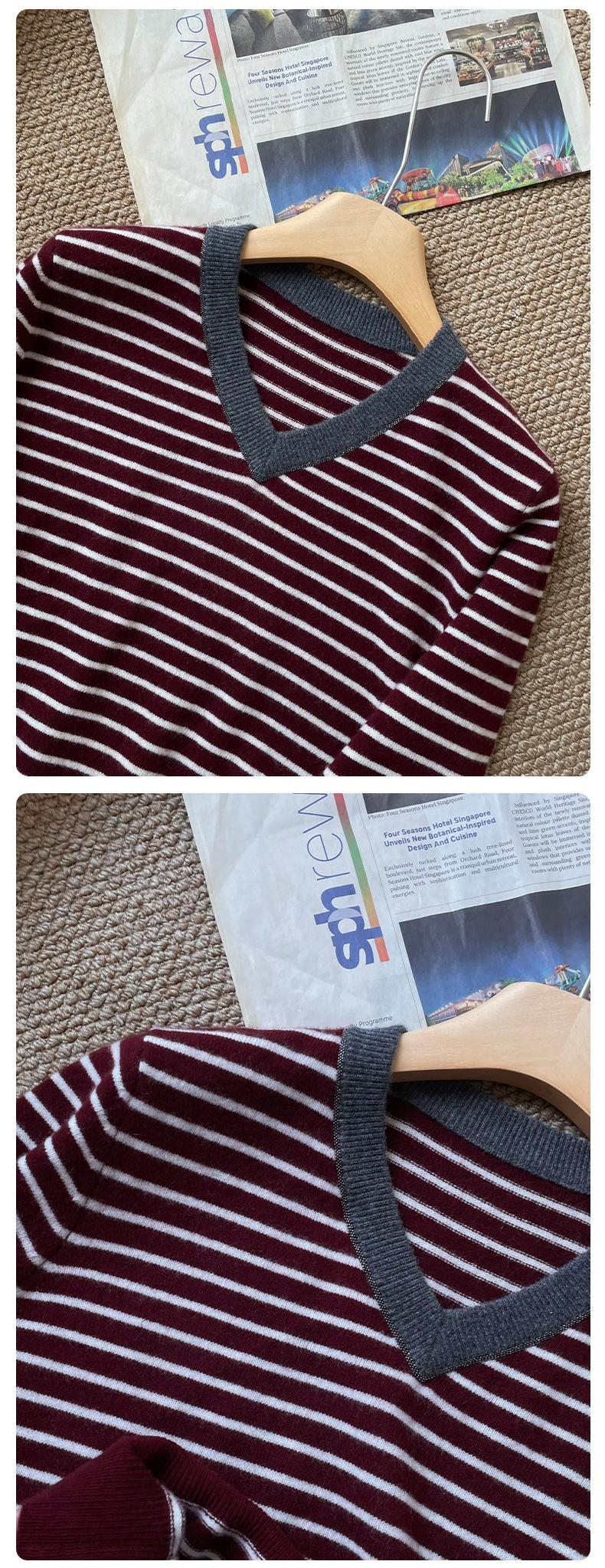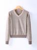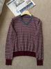 Nuevo Suéter de Punto Rayado Versátil Adelgazante Estilo Retro Coreano de Otoño/Invierno para Mujer Capa Base Clásica con Cuello en V