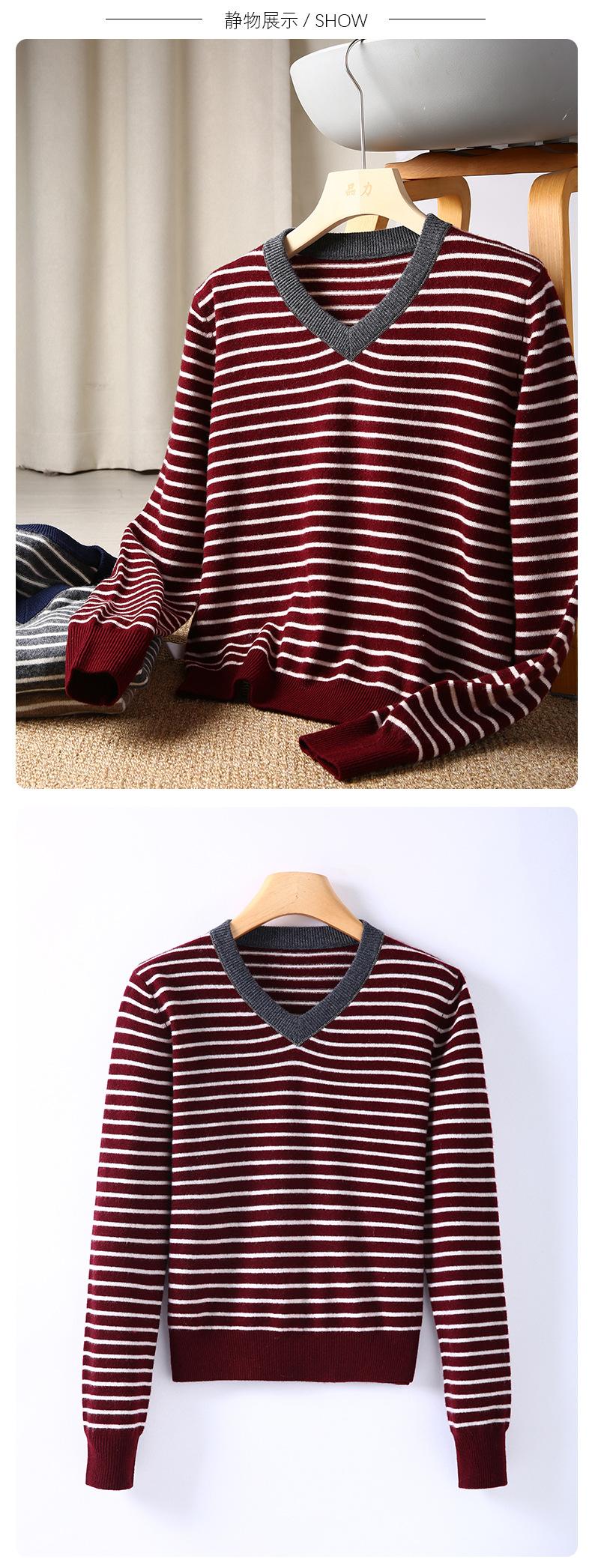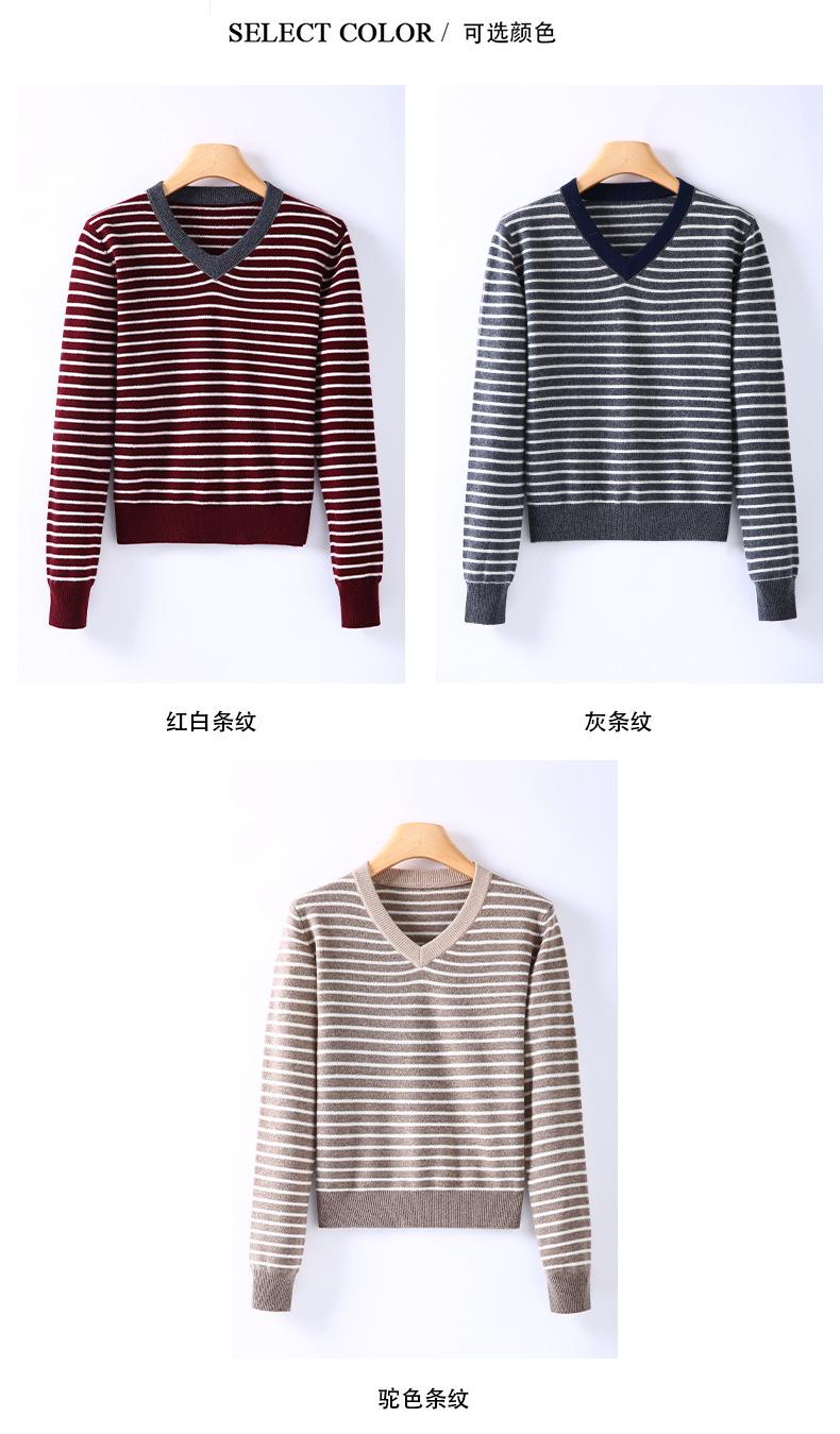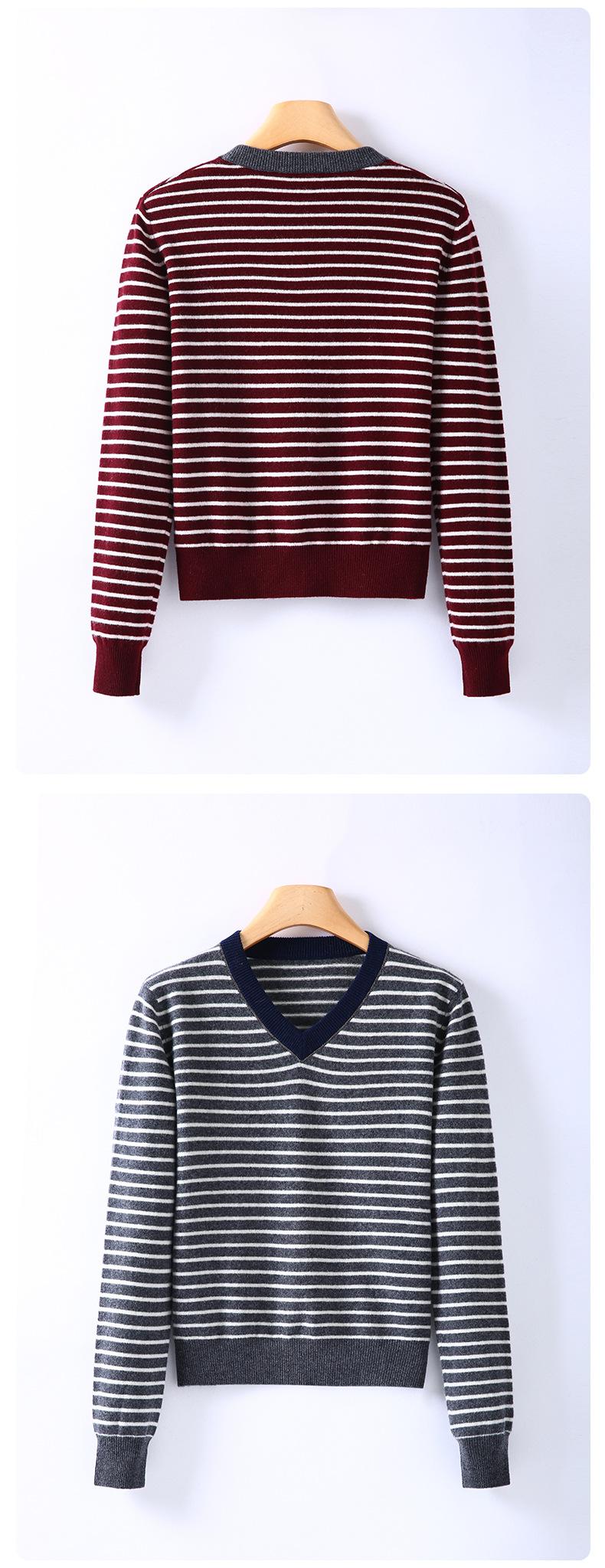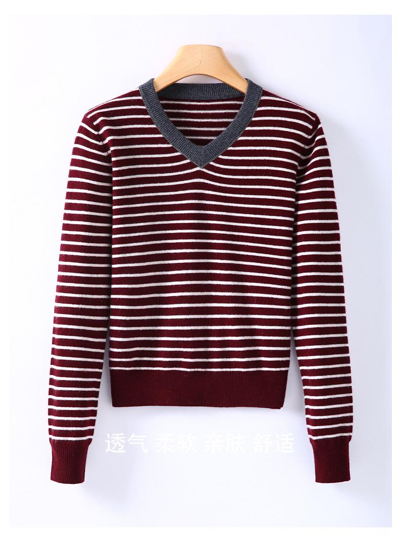 Nuevo Suéter de Punto Rayado Versátil Adelgazante Estilo Retro Coreano de Otoño/Invierno para Mujer Capa Base Clásica con Cuello en V