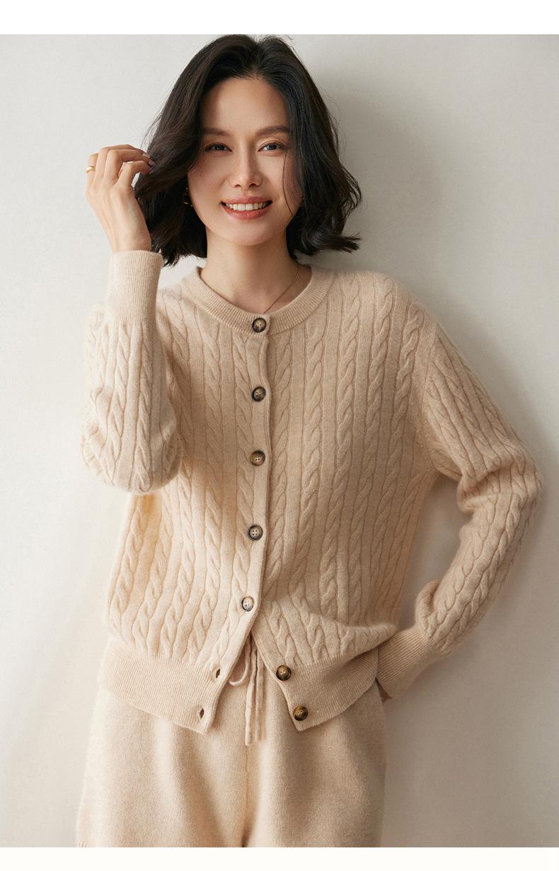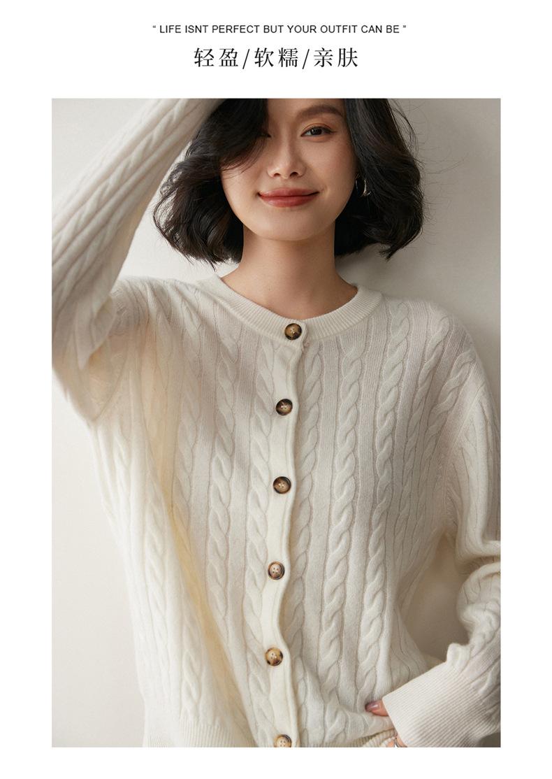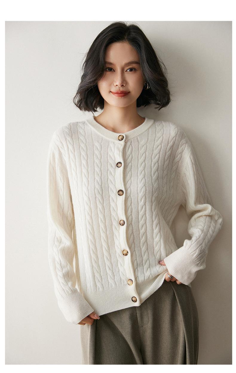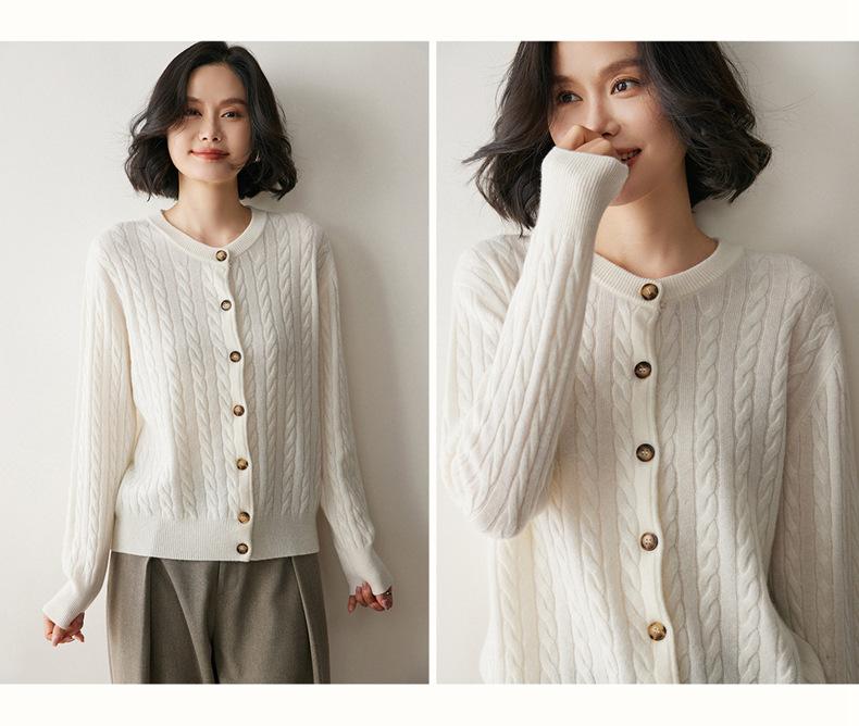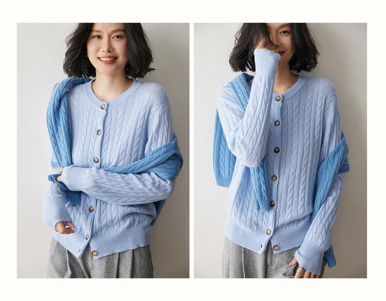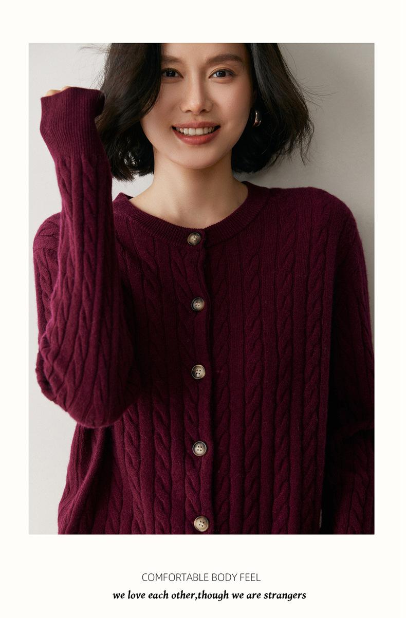 Nuevo Suéter de Moda Holgado de Punto Trenzado de Cable para Otoño e Invierno para Mujer, Cárdigan de Cachemira de Color Sólido, Lana, Cuello Redondo, Manga Larga, Abrigo