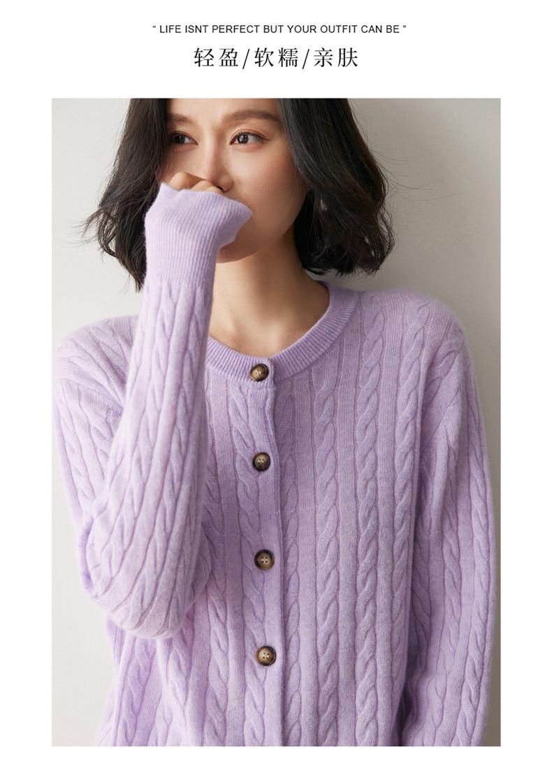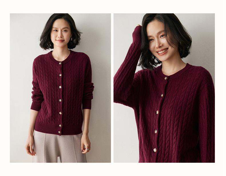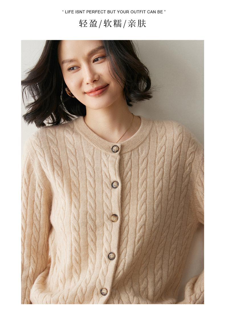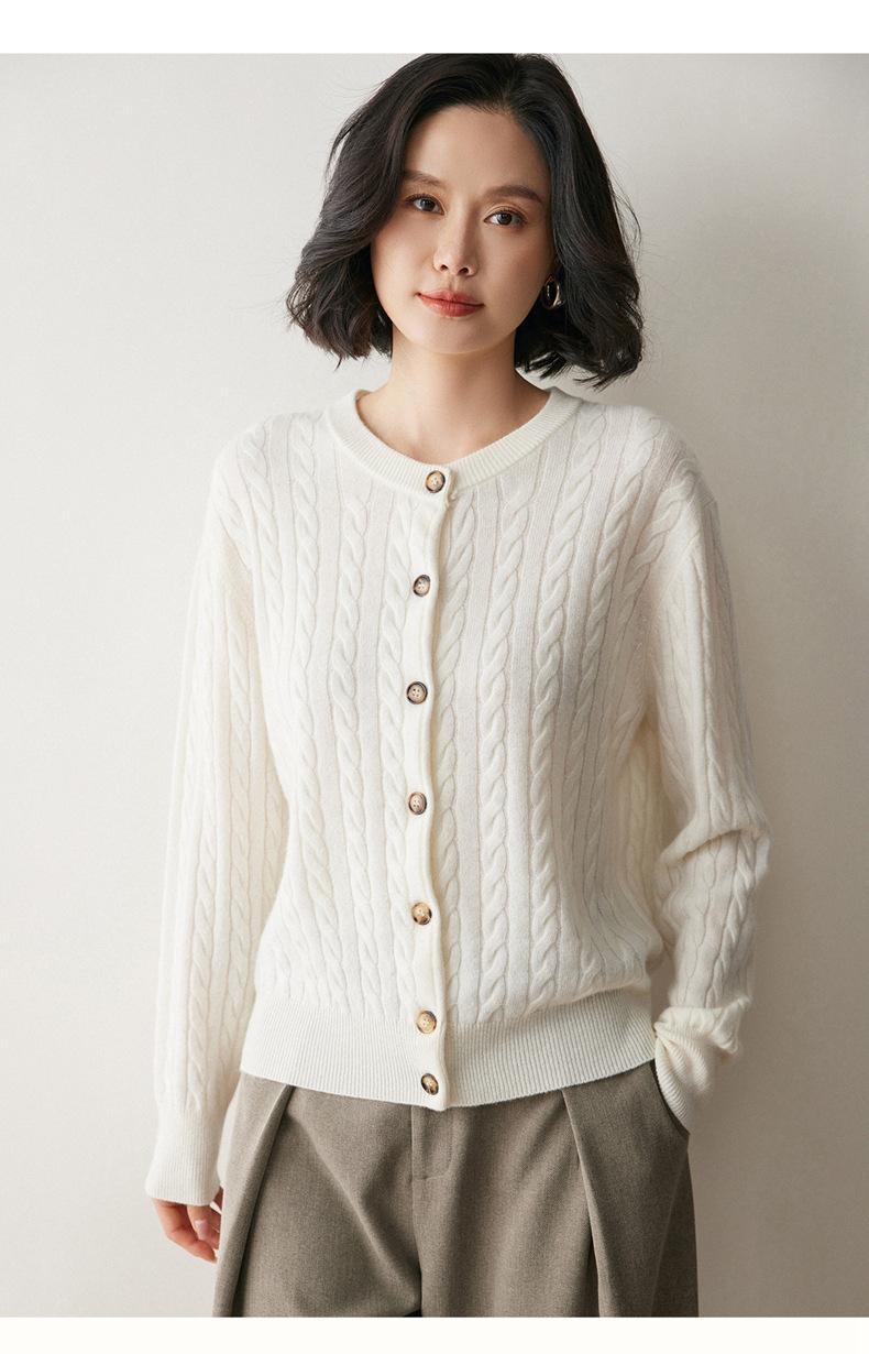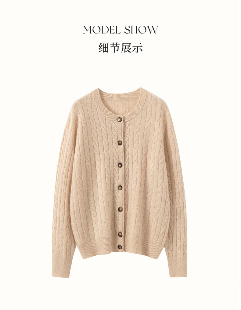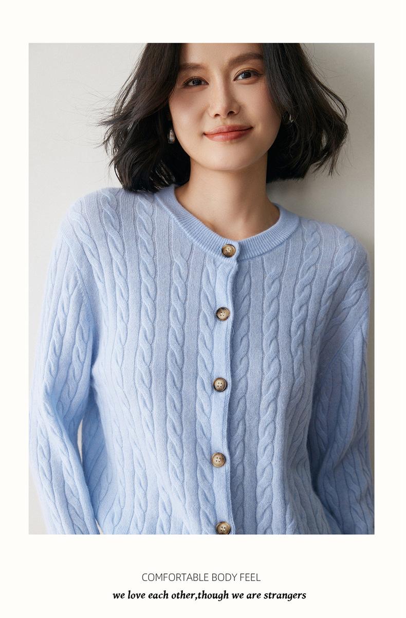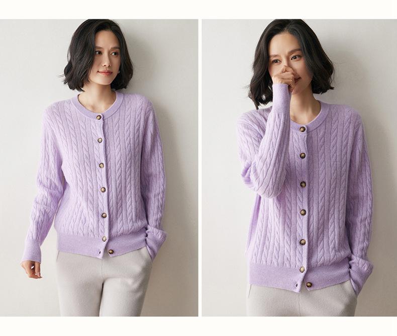 Nuevo Suéter de Moda Holgado de Punto Trenzado de Cable para Otoño e Invierno para Mujer, Cárdigan de Cachemira de Color Sólido, Lana, Cuello Redondo, Manga Larga, Abrigo