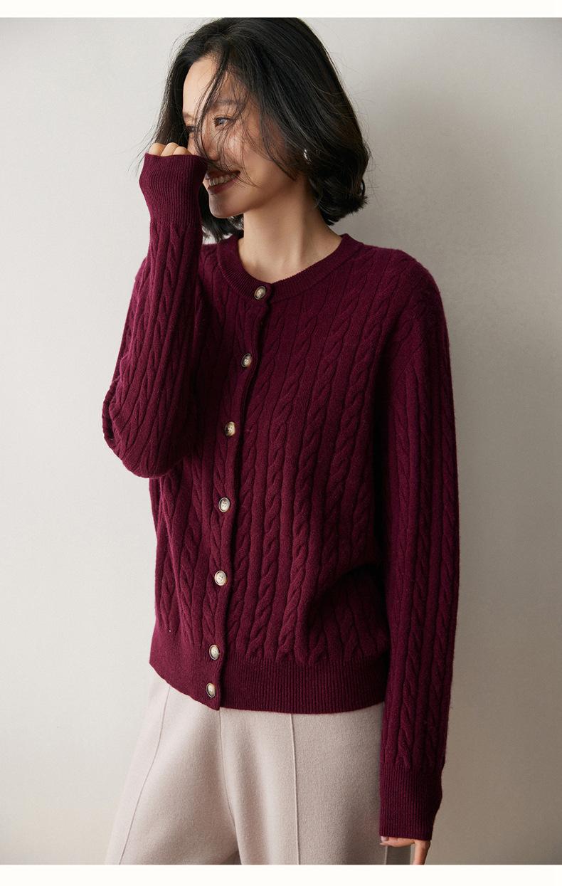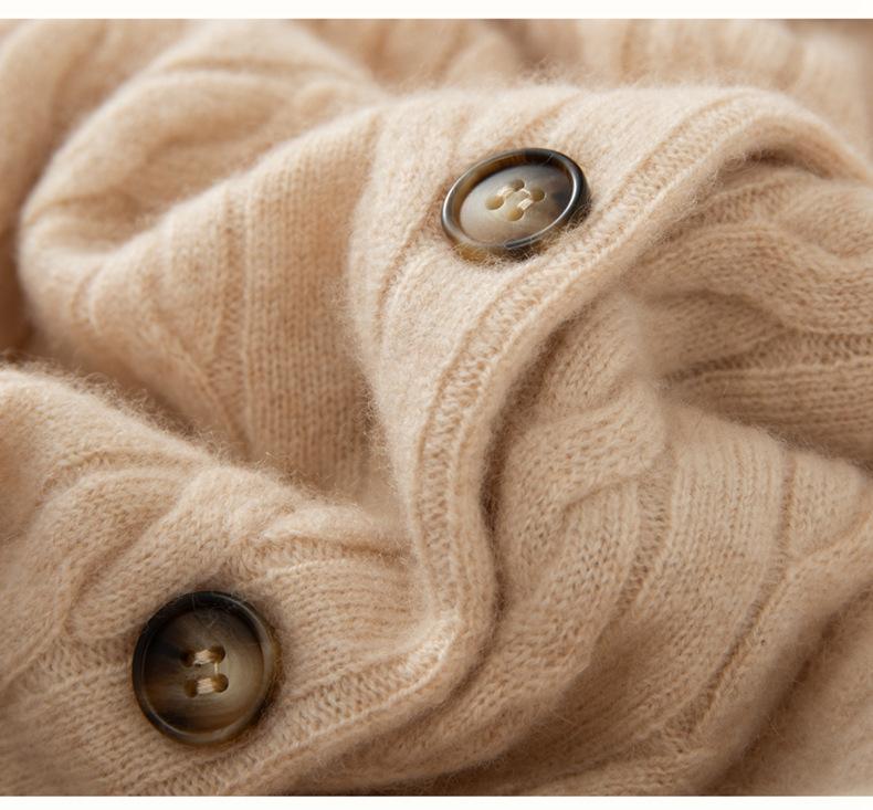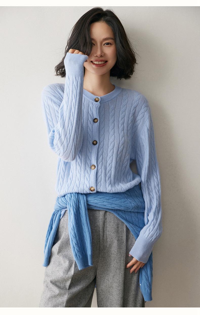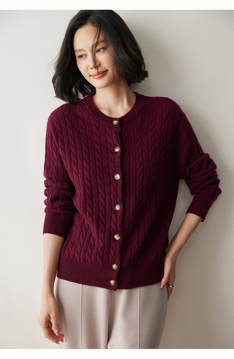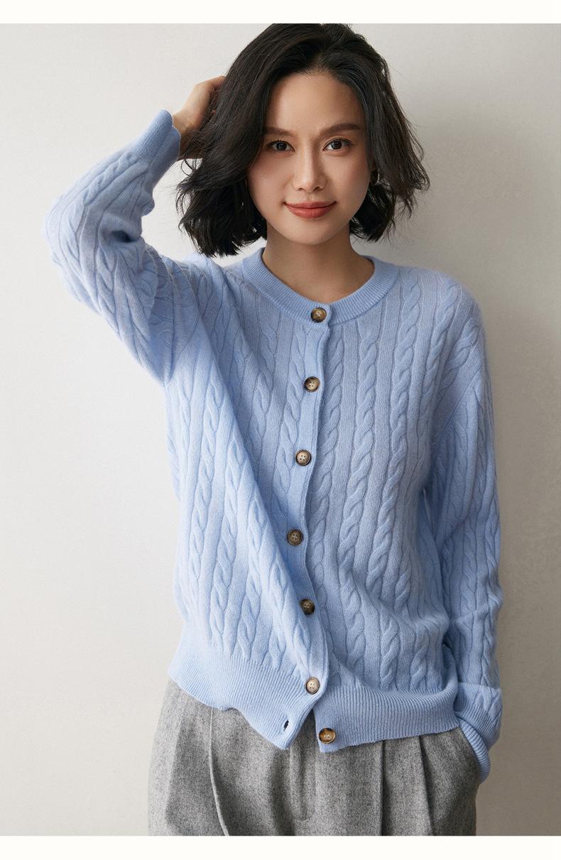 Nuevo Suéter de Moda Holgado de Punto Trenzado de Cable para Otoño e Invierno para Mujer, Cárdigan de Cachemira de Color Sólido, Lana, Cuello Redondo, Manga Larga, Abrigo