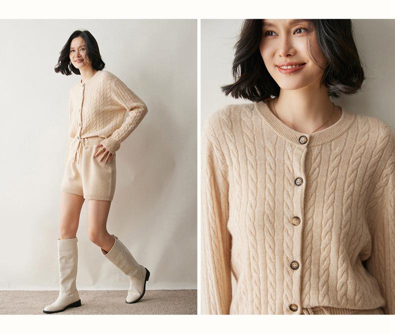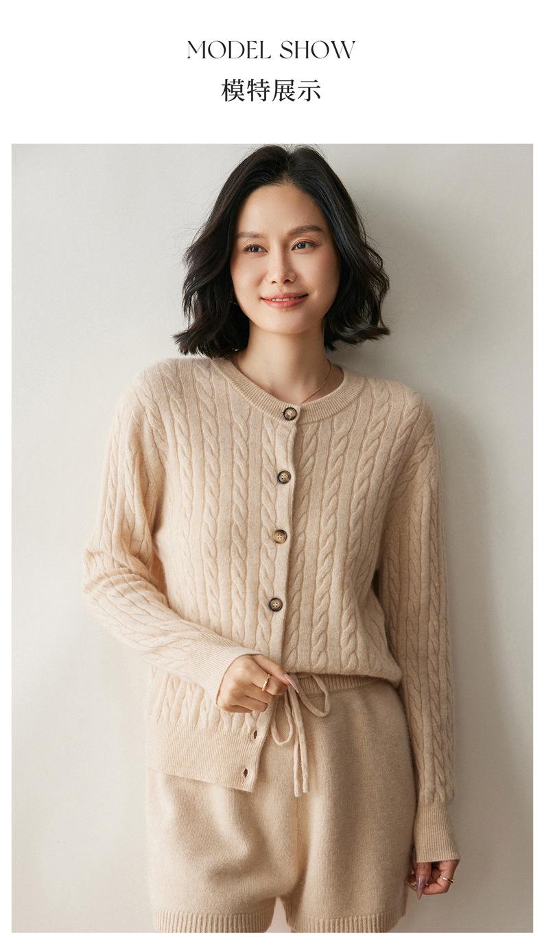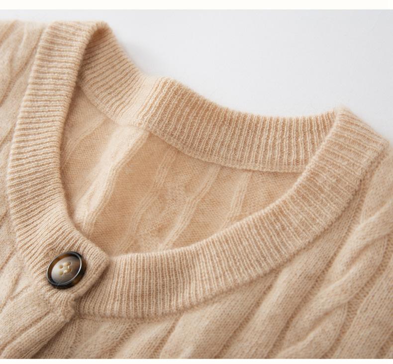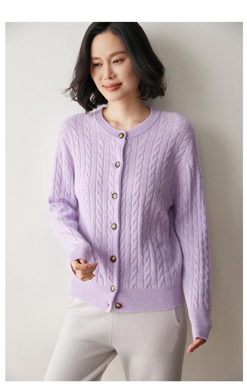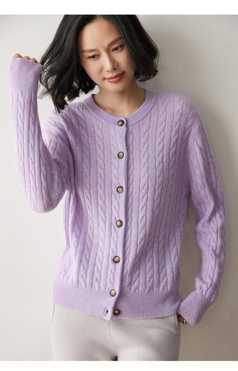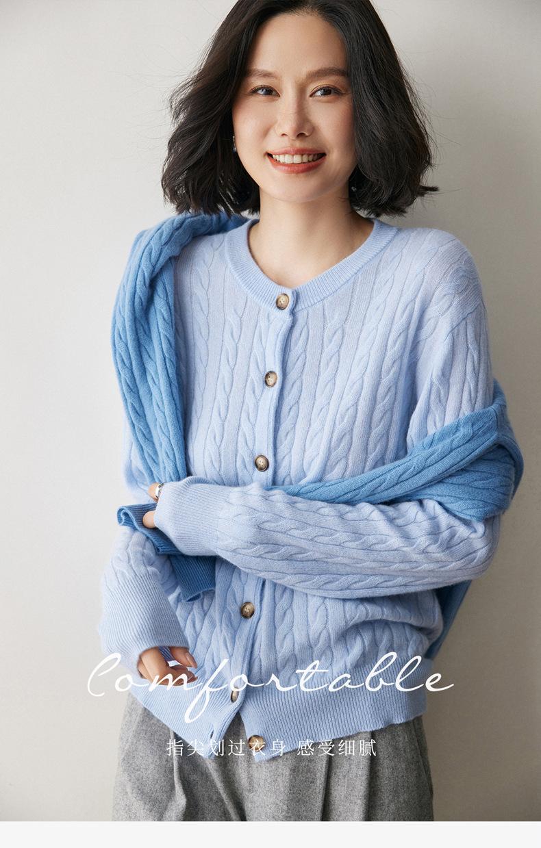 Nuevo Suéter de Moda Holgado de Punto Trenzado de Cable para Otoño e Invierno para Mujer, Cárdigan de Cachemira de Color Sólido, Lana, Cuello Redondo, Manga Larga, Abrigo