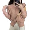 Suéter Rosa Suave Estilo Coreano Primavera 2025 para Mujer, Suave, Cerosa, Agradable a la Piel, Tejido, Cárdigan Pequeño, Suéter de Cuello Redondo, Abrigo para Mujer