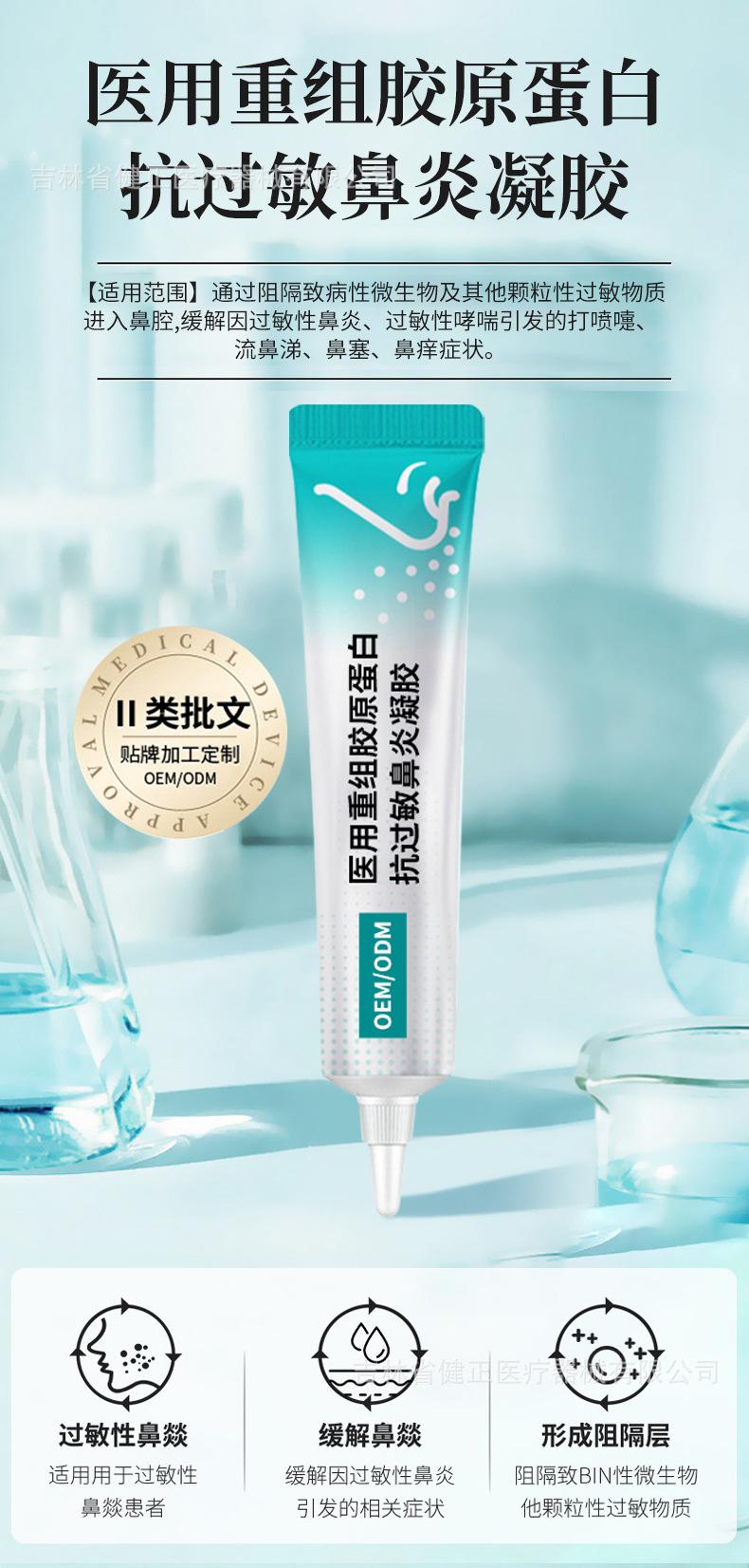 Gel Médico Recombinante de Colágeno para Rinitis Alérgica OEM Alivia la Rinorrea y el Picor Nasal Clase II Gel para Rinitis