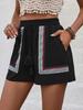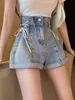 2025 Shorts Casuales Anchos de Pierna Suelta Verano Encaje Cintura Alta Elásticos con Cordón