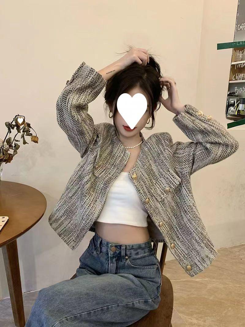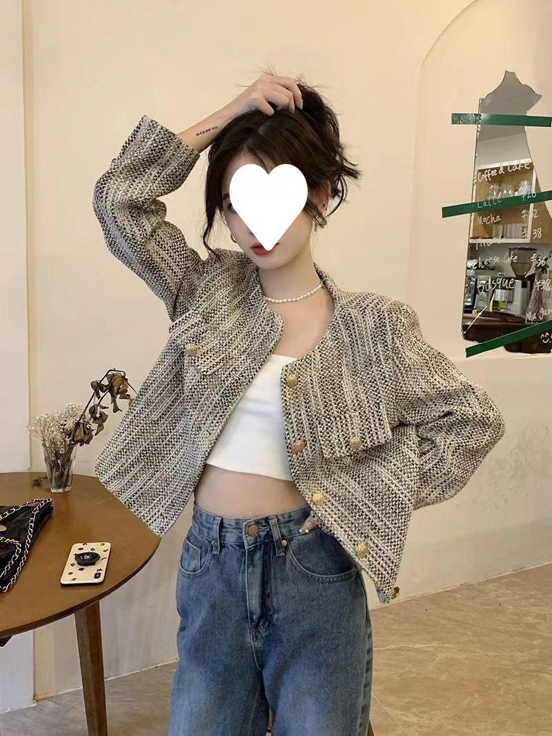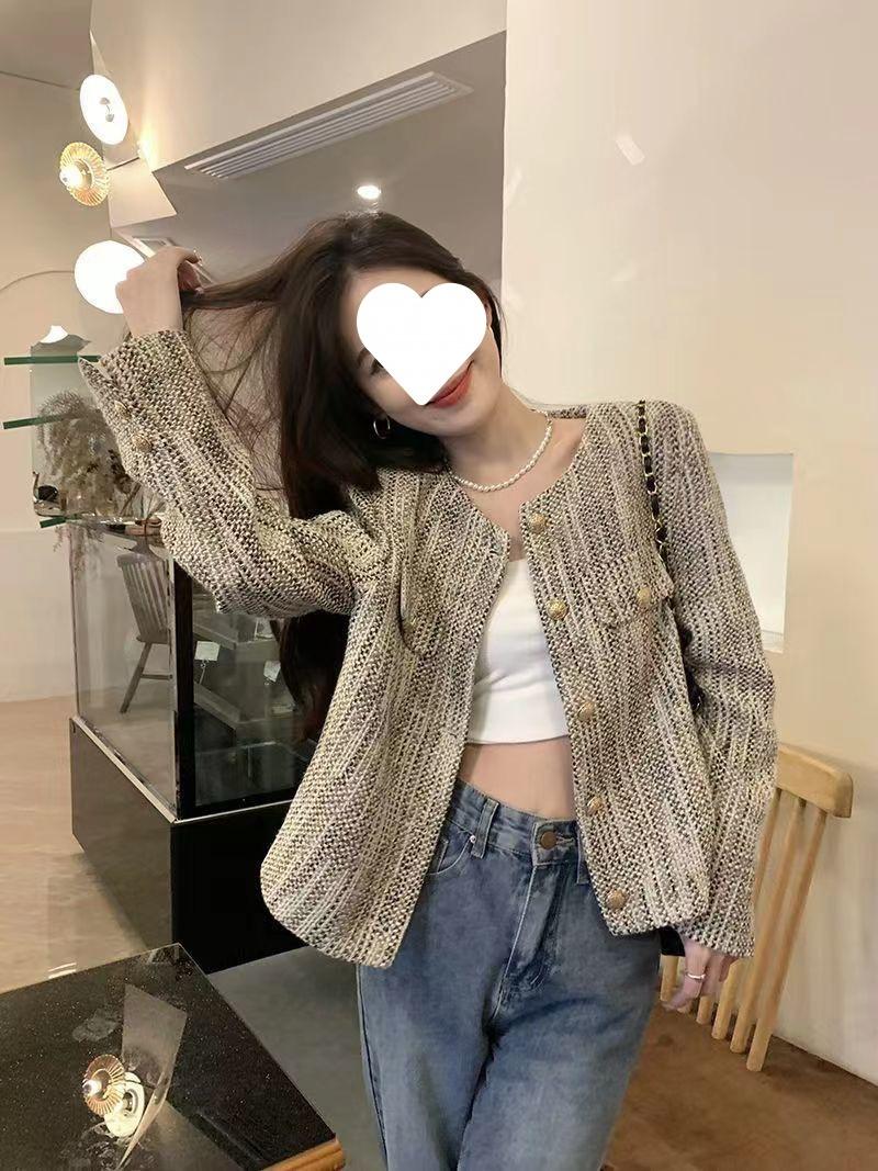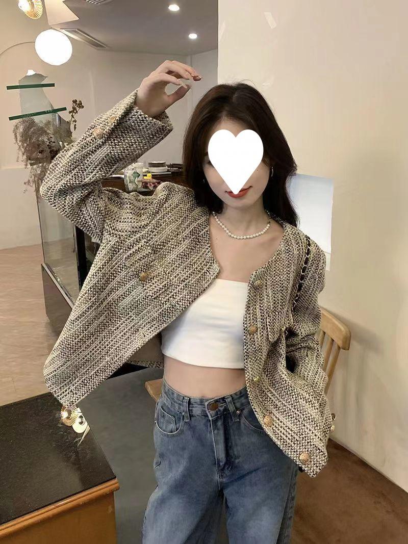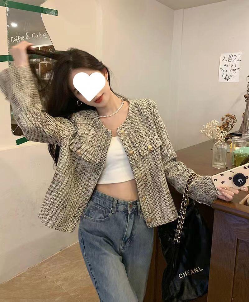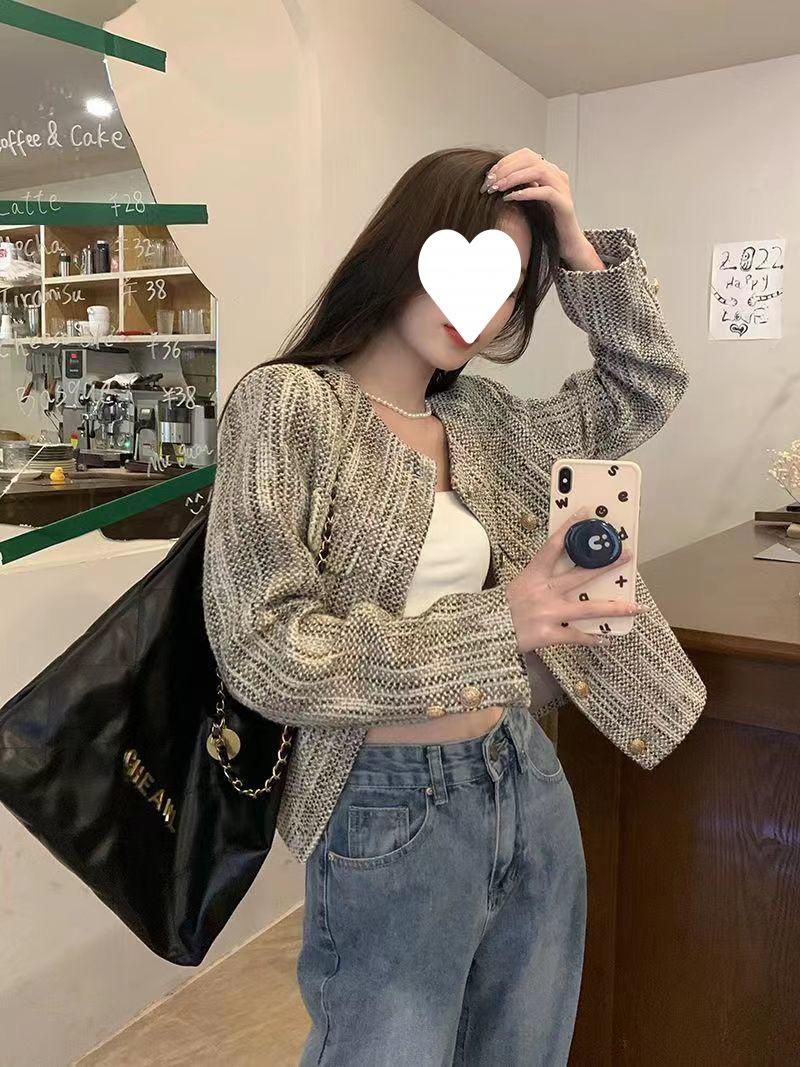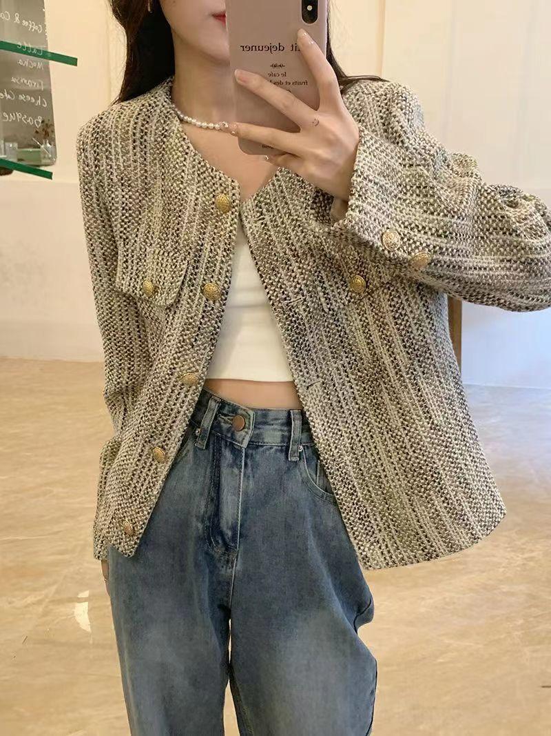 Chaqueta Corta de Manga Larga Estilo Chanel para Mujer, Otoño Simple Nuevo Diseño, Cárdigan Top Elegante de Alta Gama