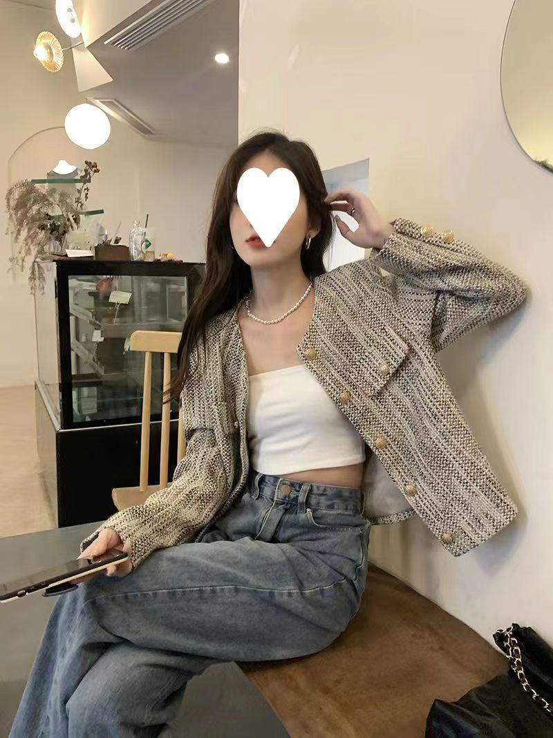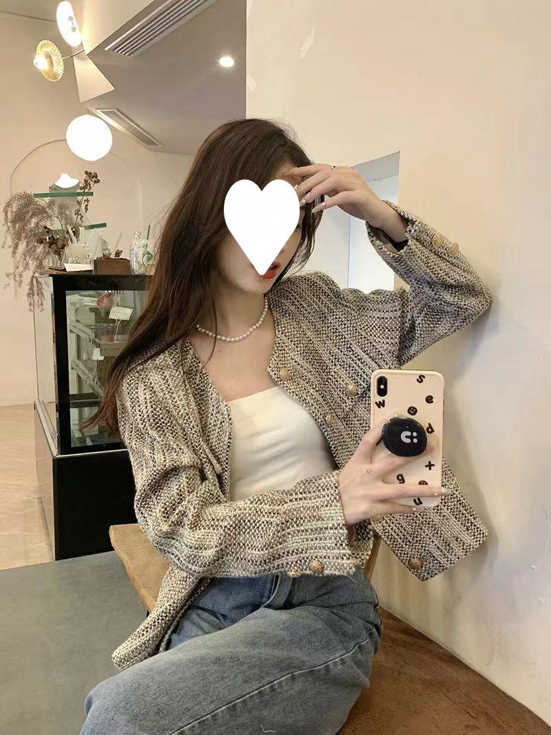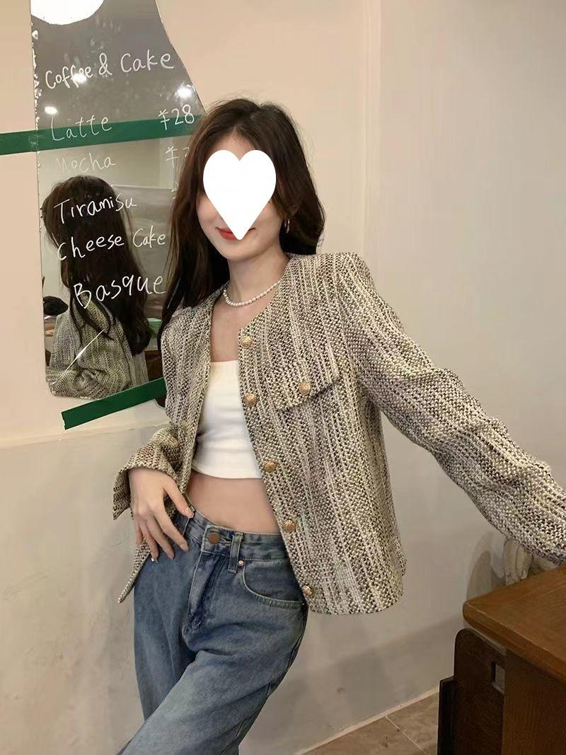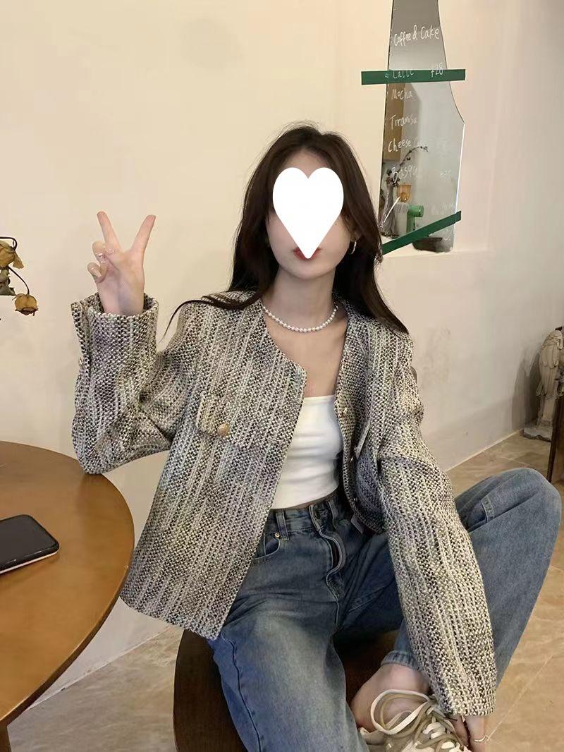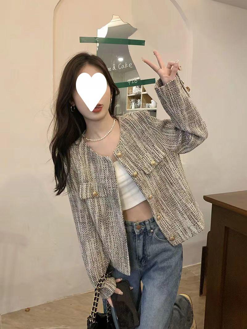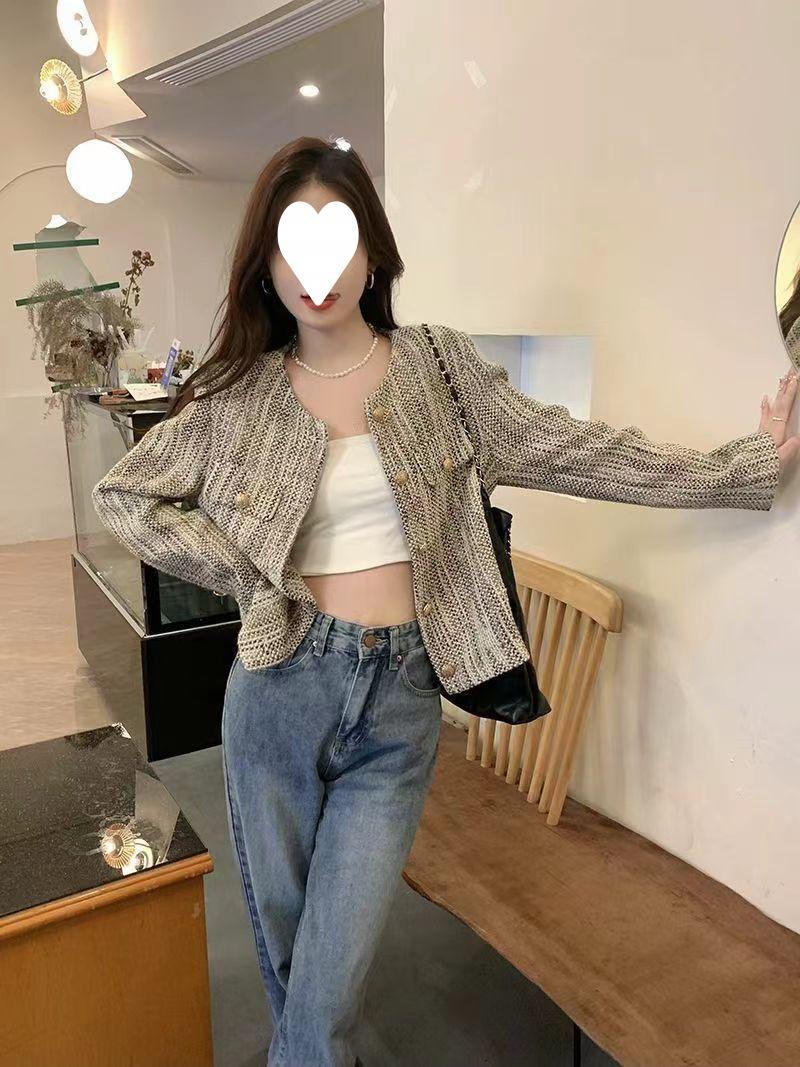Chaqueta Corta de Manga Larga Estilo Chanel para Mujer, Otoño Simple Nuevo Diseño, Cárdigan Top Elegante de Alta Gama