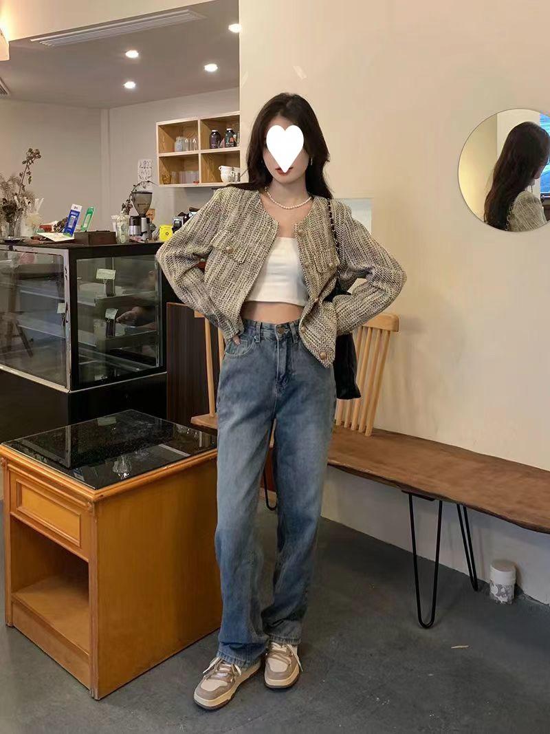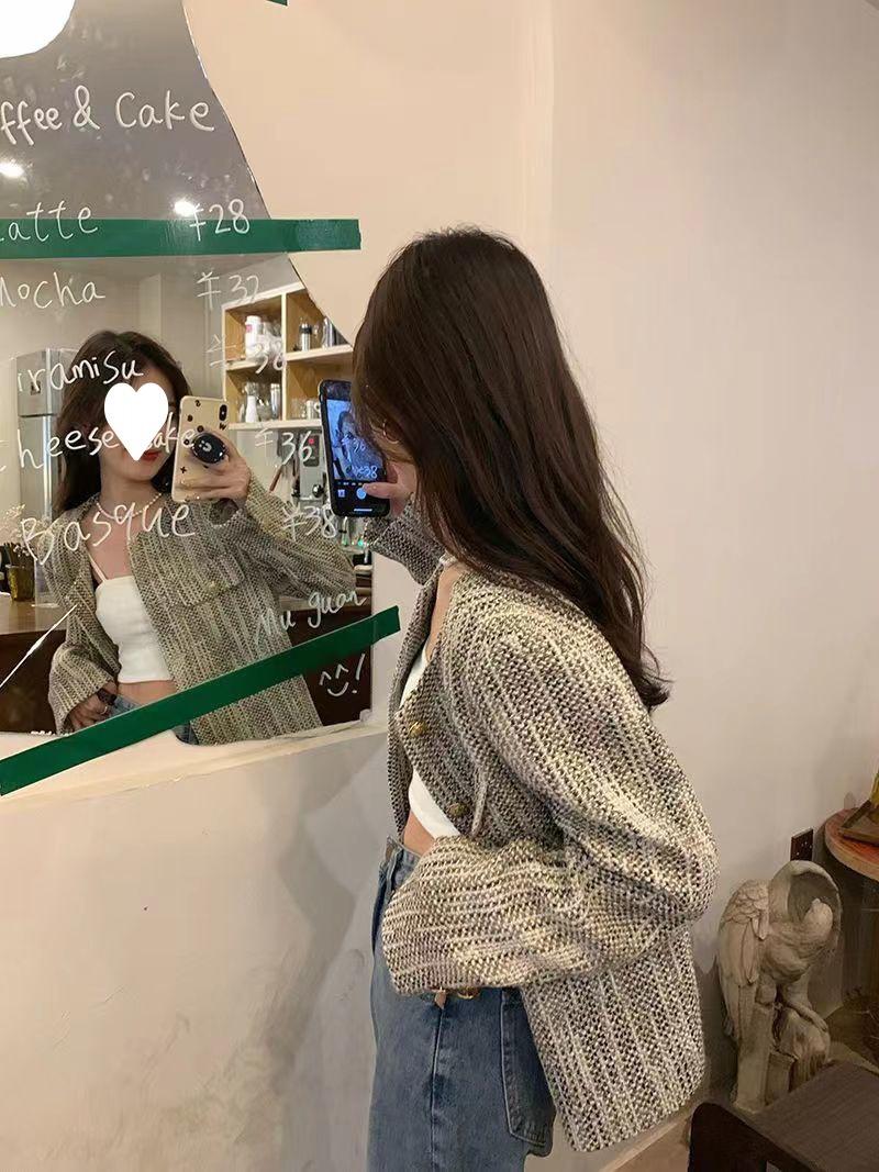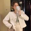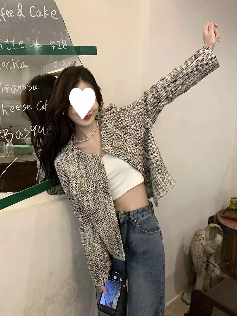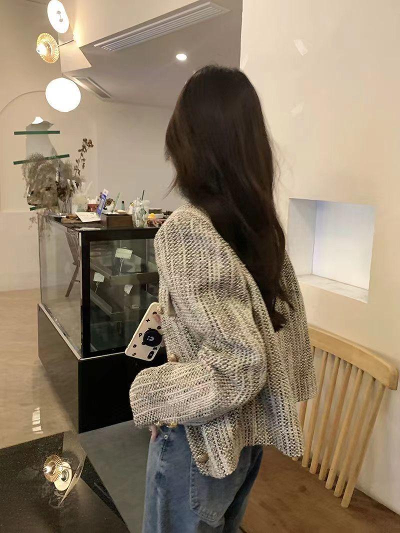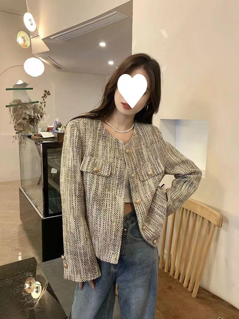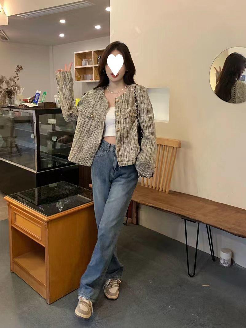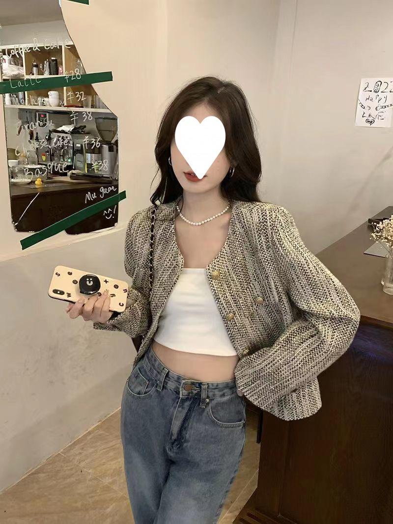 Chaqueta Corta de Manga Larga Estilo Chanel para Mujer, Otoño Simple Nuevo Diseño, Cárdigan Top Elegante de Alta Gama