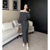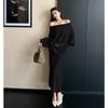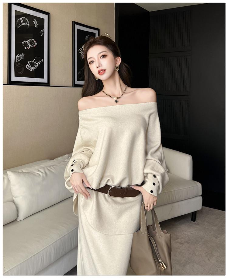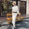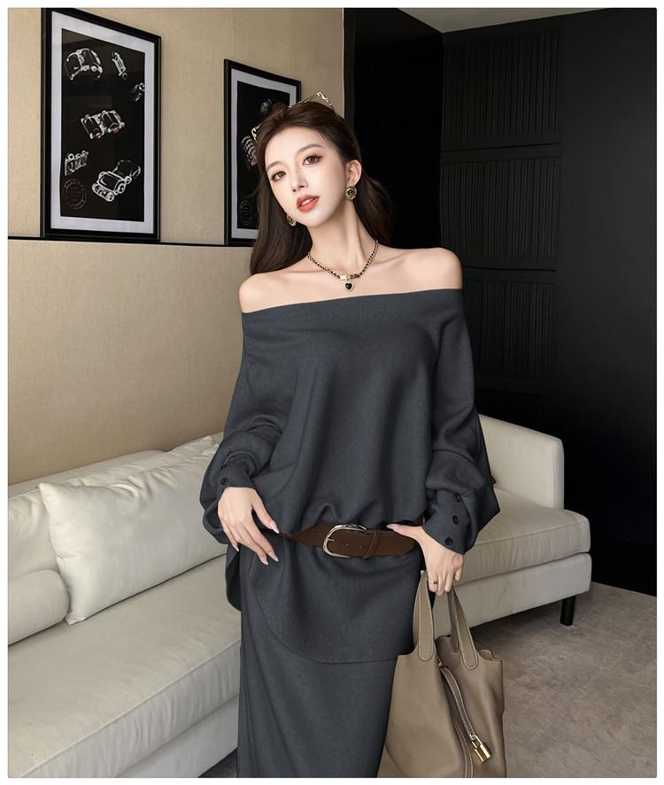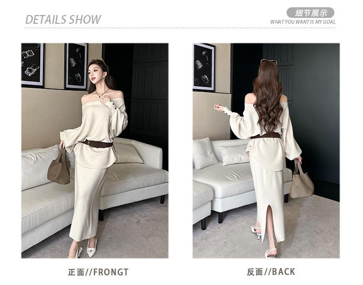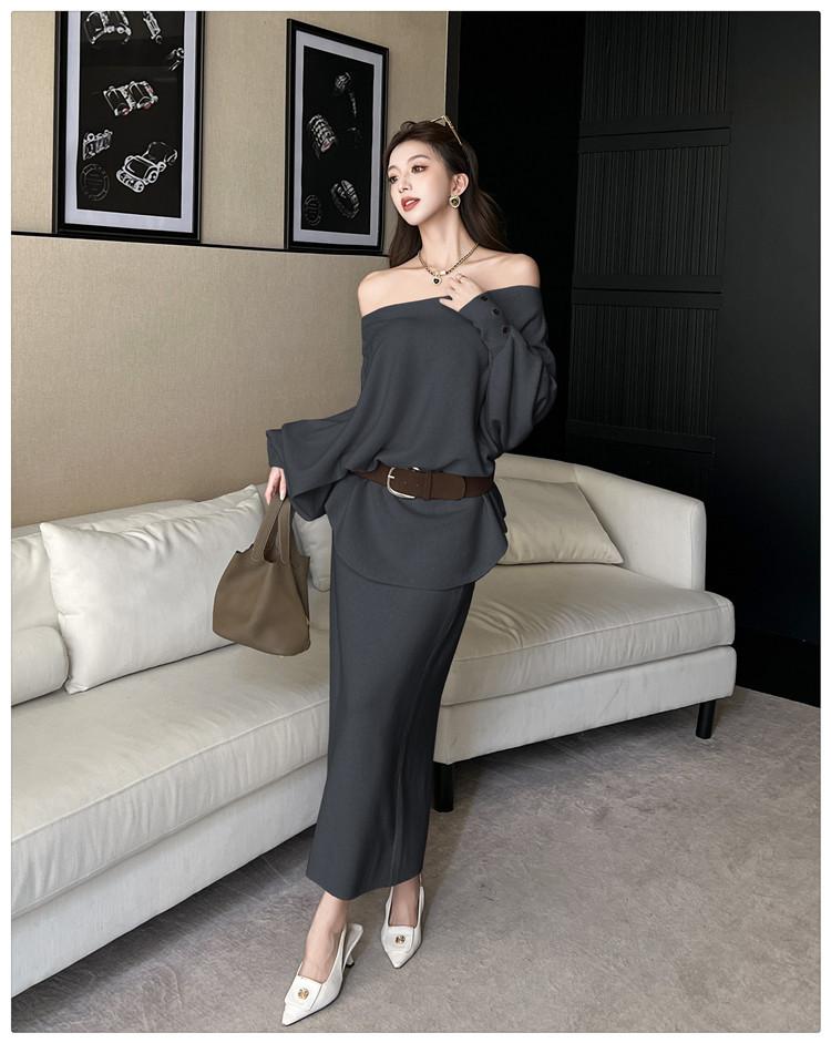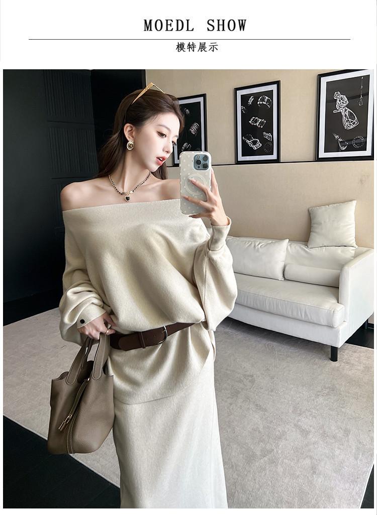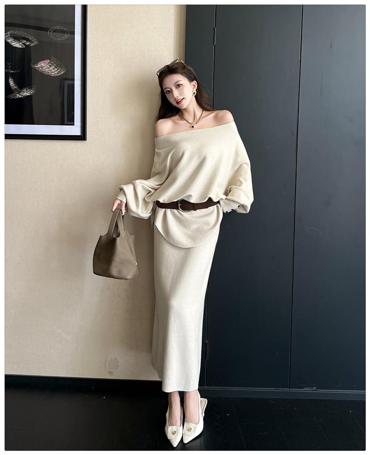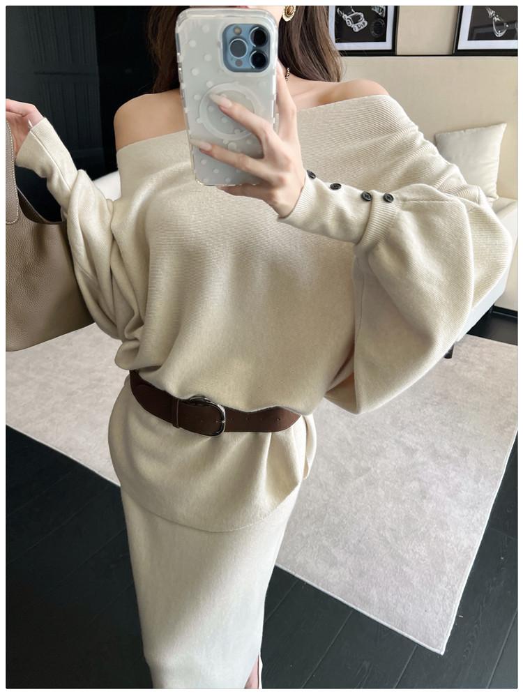 Conjunto de Suéter Versátil Adelgazante de Temperamento Francés Otoñal Transfronterizo 2025 + Falda Midi Coreana con Abertura de Cintura Alta