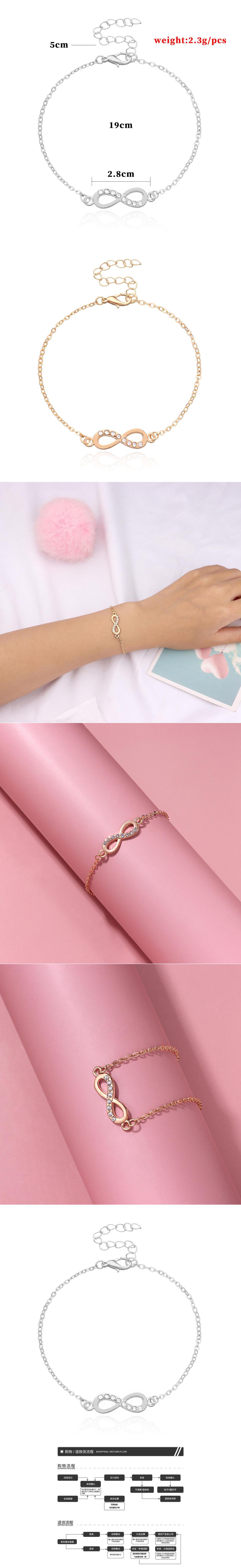 Joyería Transfronteriza Europea y Americana Moda Simple Diamante Incrustado 8 Infinito Brazalete Grande para Mujer Joyería de Moda Amazon de Venta Caliente