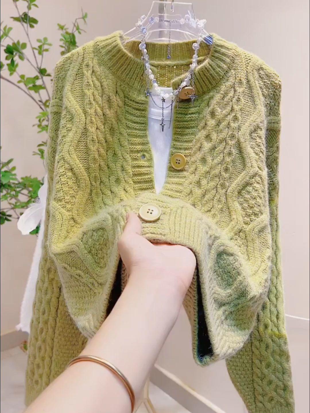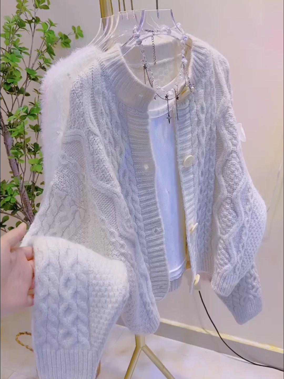 Abrigo cárdigan de punto trenzado suave y holgado estilo otoño e invierno para mujer 2025 nueva prenda de punto suelta y moderna