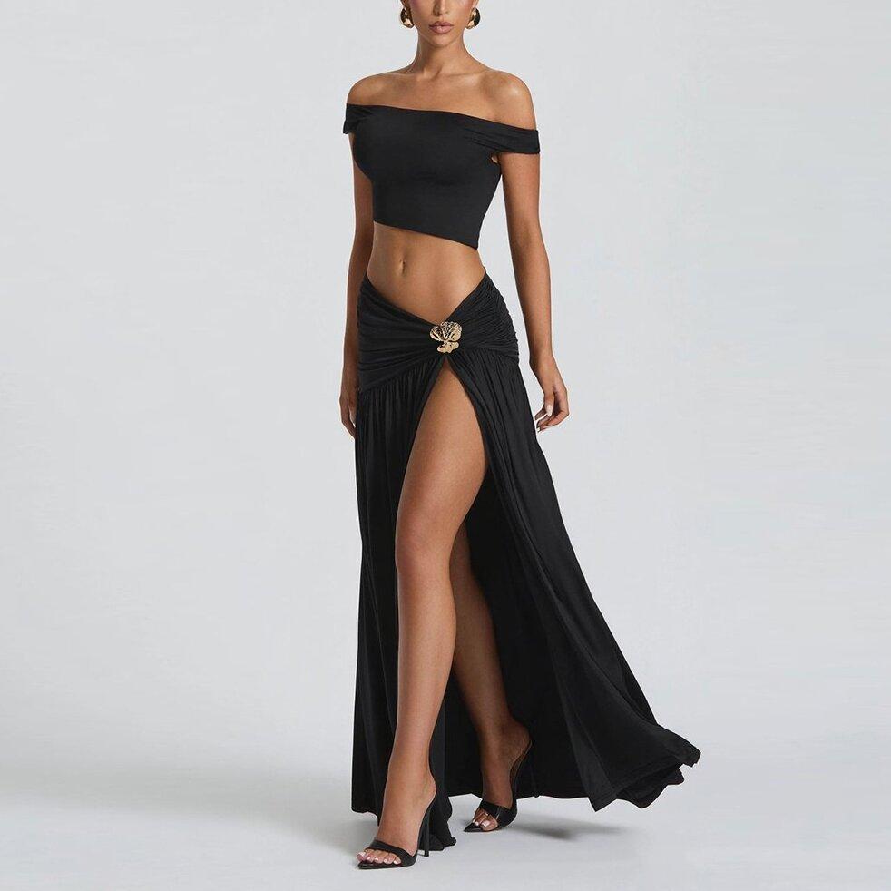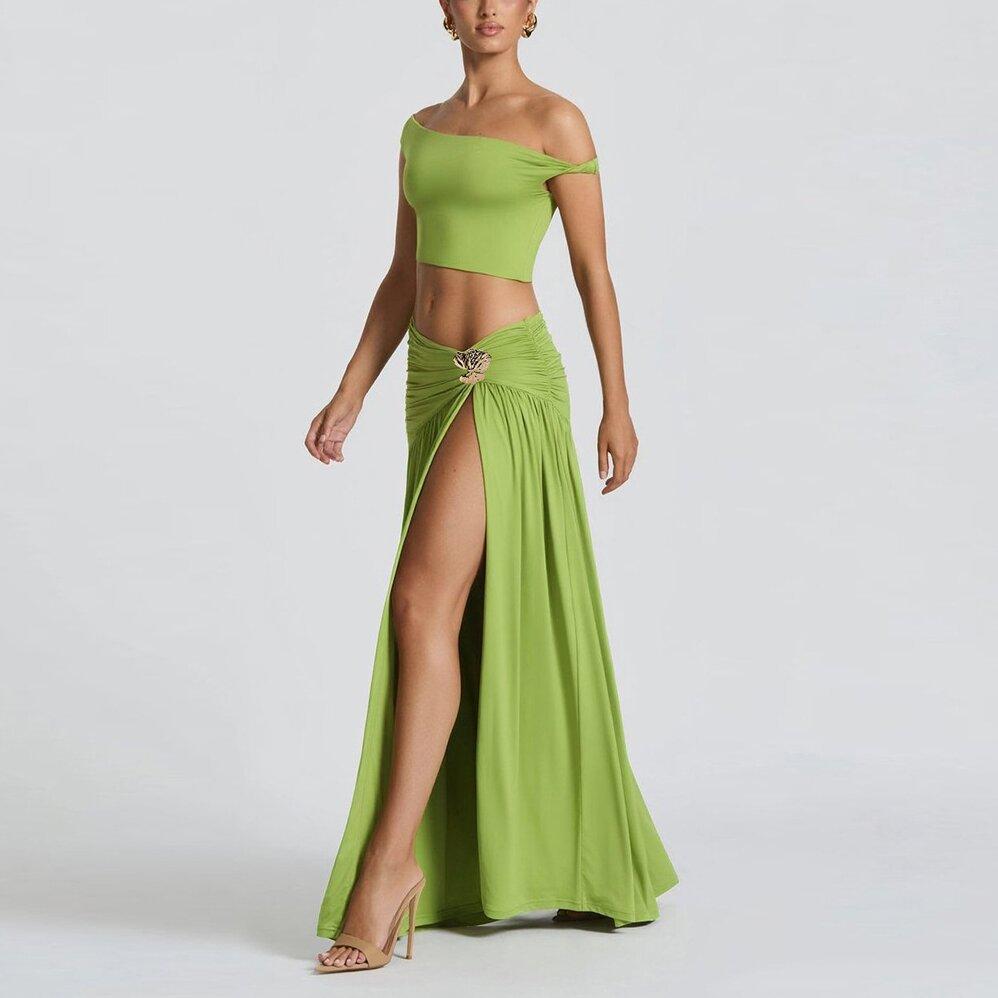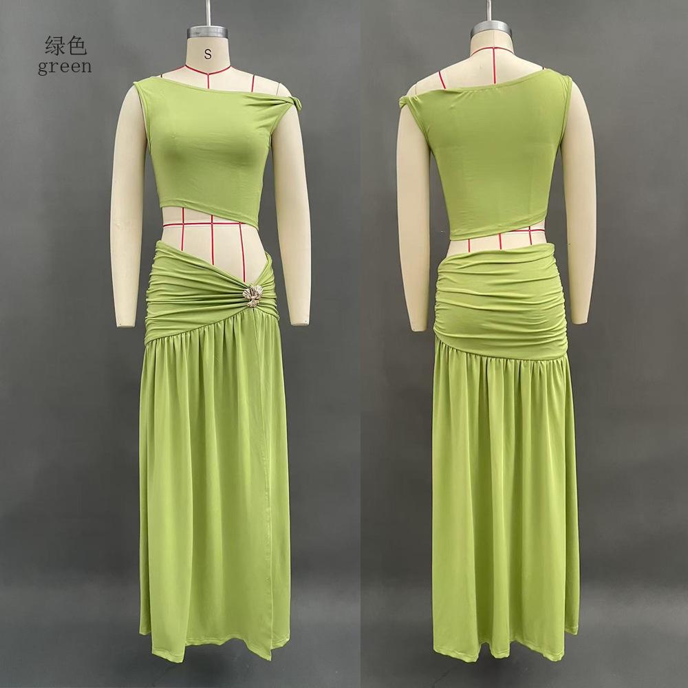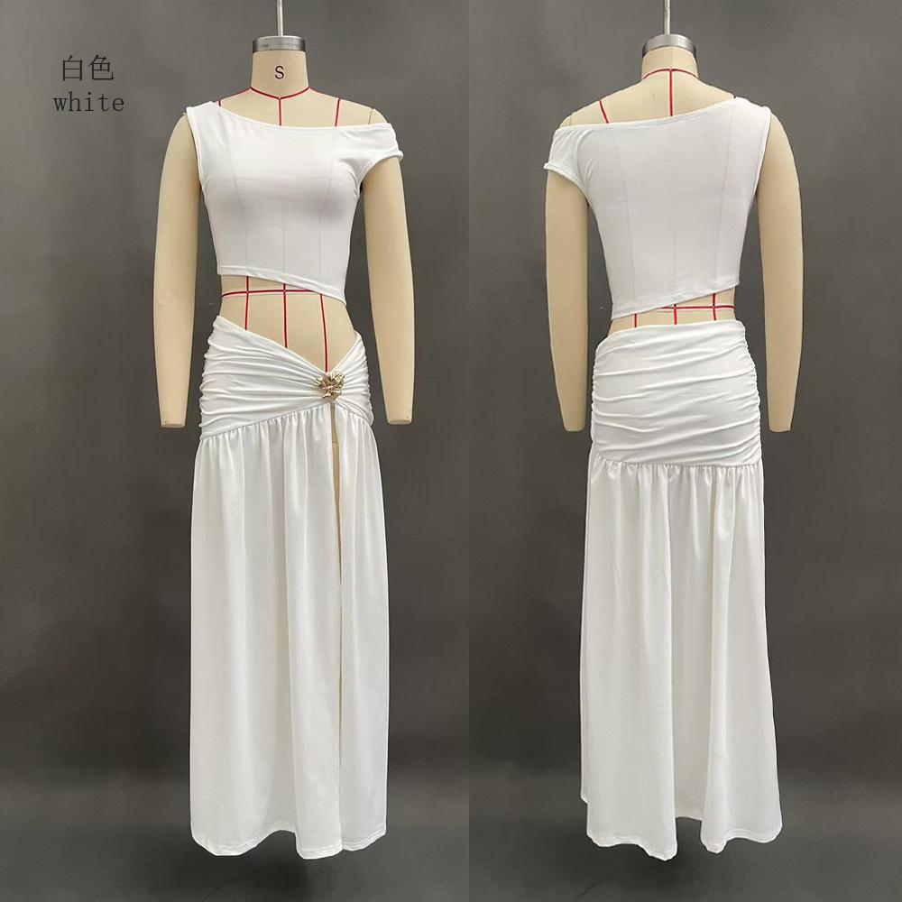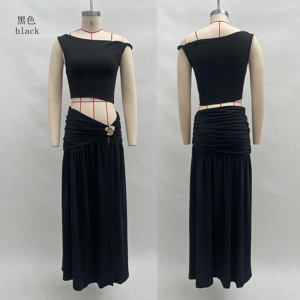 2025 Nuevo Amazon Estilo Europeo y Americano Sexy Top Corto de Un Hombro para Mujer Chaleco Ajustado Falda con Abertura Lateral