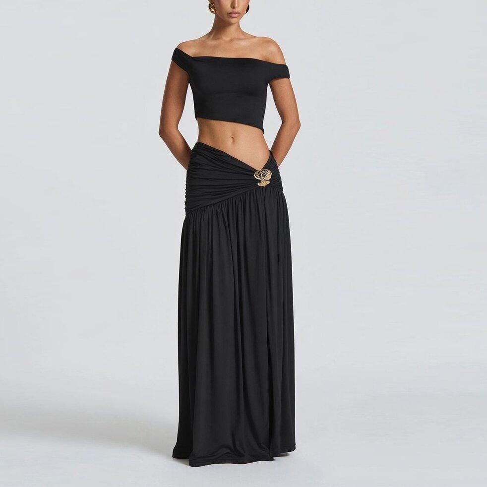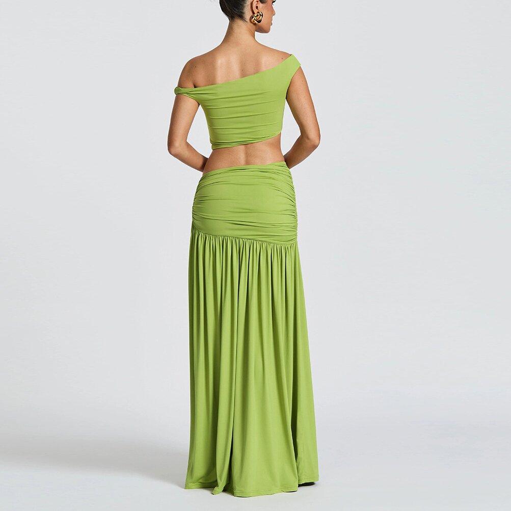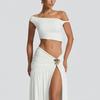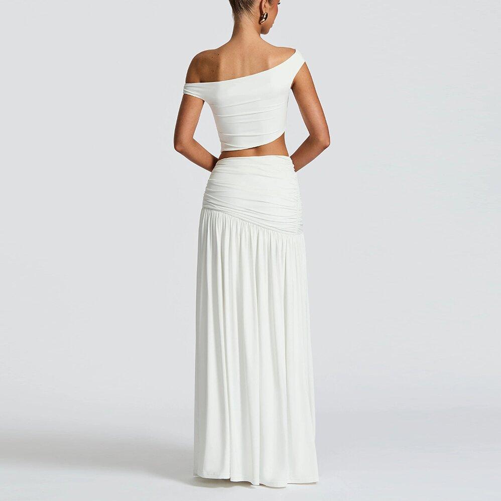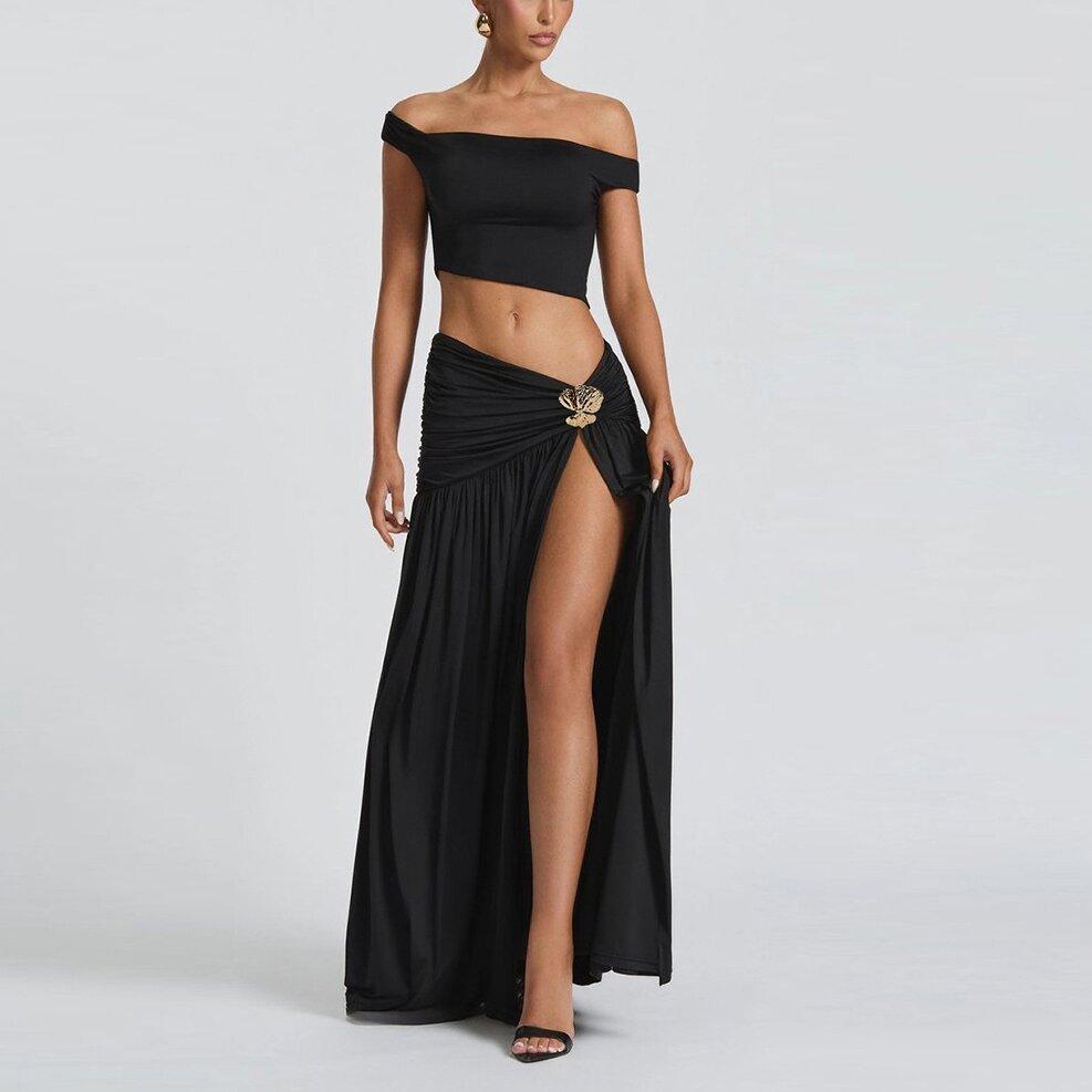 2025 Nuevo Amazon Estilo Europeo y Americano Sexy Top Corto de Un Hombro para Mujer Chaleco Ajustado Falda con Abertura Lateral