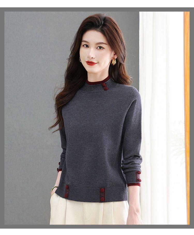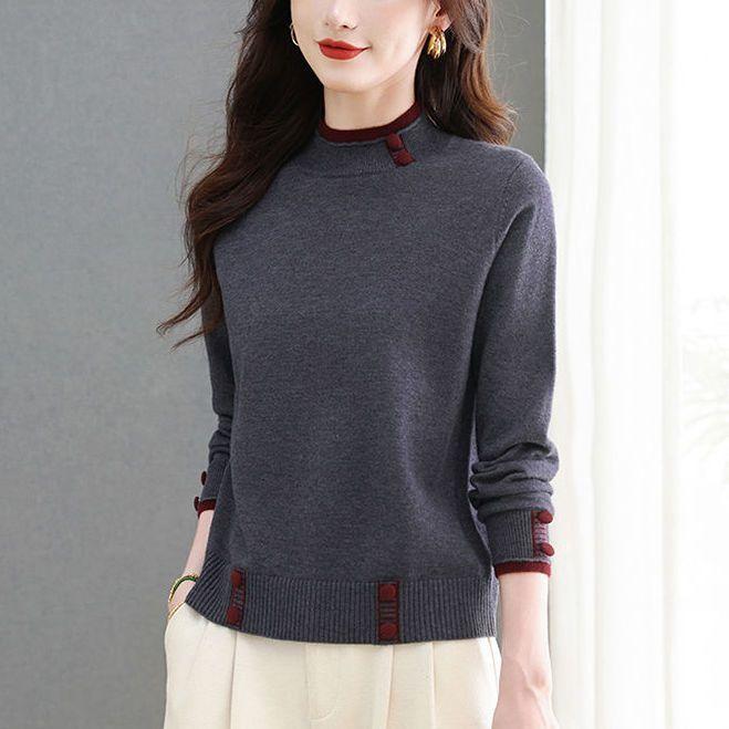 Moda Otoño/Invierno 2025 Versátil Camiseta Base de Cuello Medio Alto Suéter Elegante Suéter de Punto Grueso Top Casual Reductor de Edad para Mujer