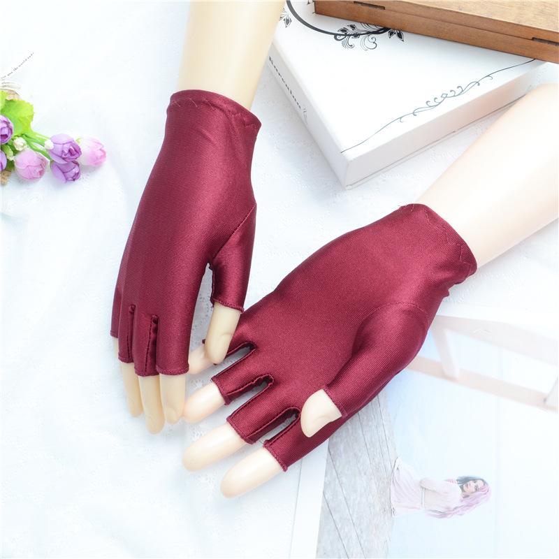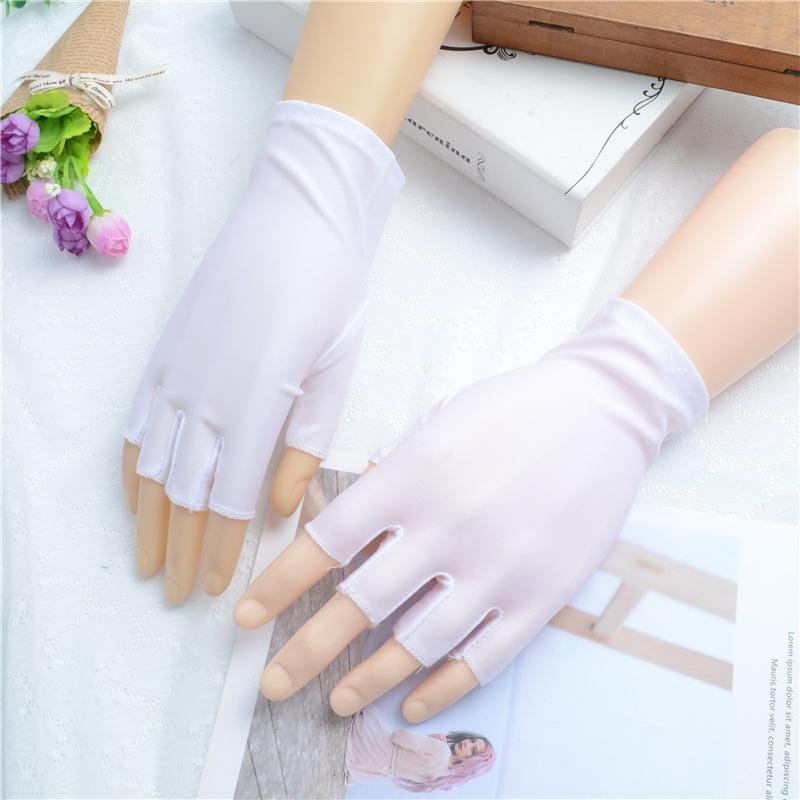 Guantes Coreanos Nuevos de Primavera y Otoño de Medio Dedo para Mujer Delgados de Spandex Elásticos Transpirables para Conducir Protección Solar Guantes de Etiqueta