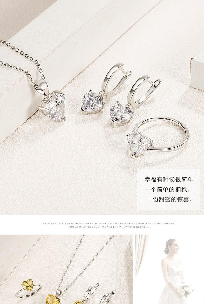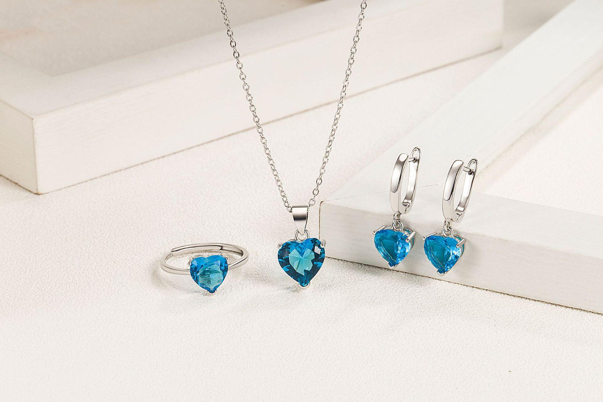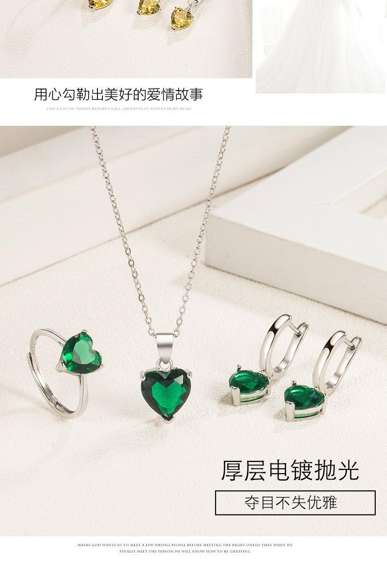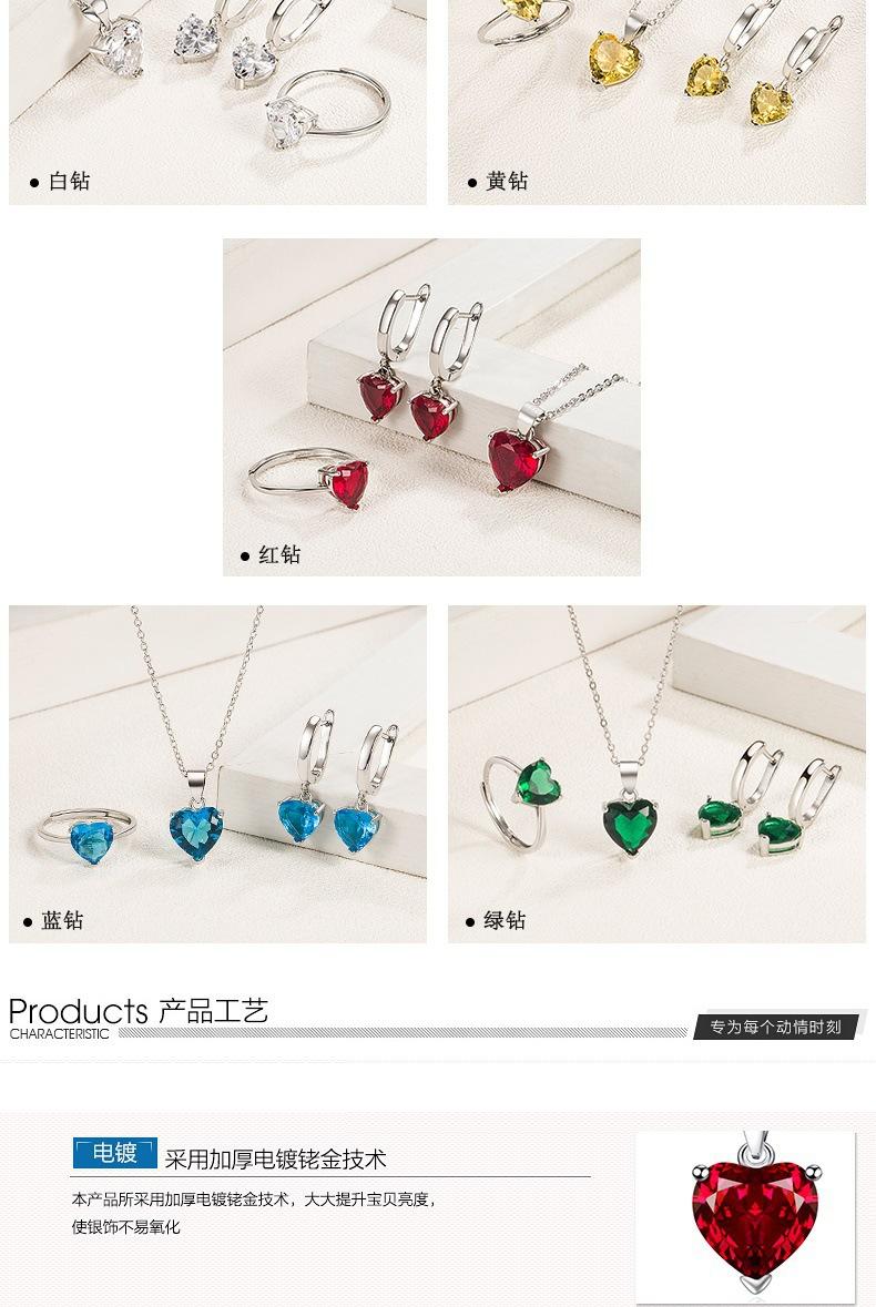 Moda Europea y Americana Anillo en Forma de Corazón Collar Aretes Rojo Azul Verde Amarillo Blanco Juego de Joyería de Tres Piezas con Diamantes de 5 Colores Venta al por Mayor