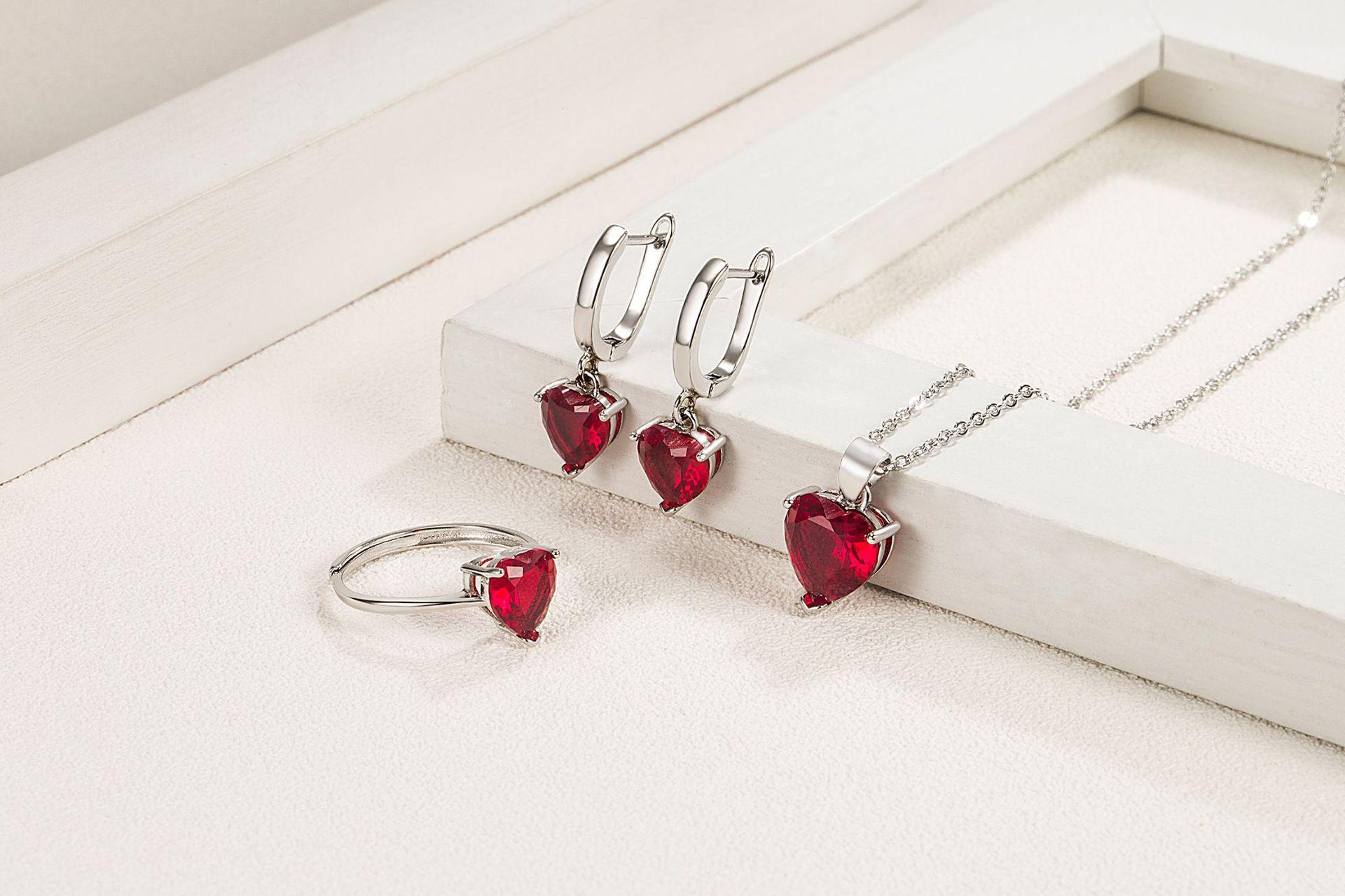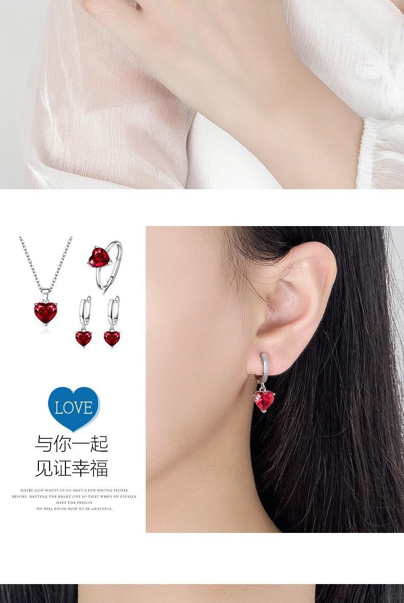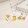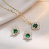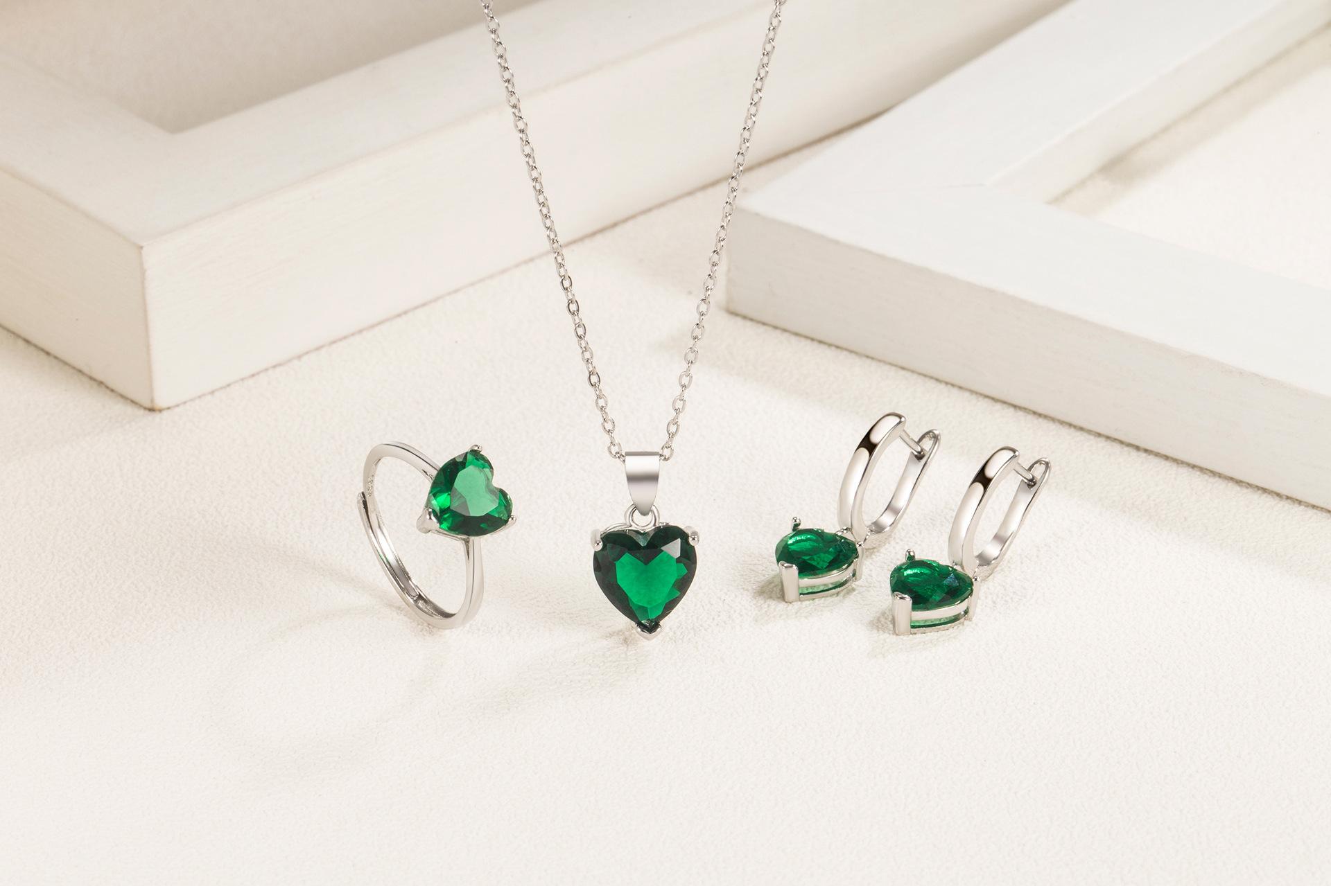 Moda Europea y Americana Anillo en Forma de Corazón Collar Aretes Rojo Azul Verde Amarillo Blanco Juego de Joyería de Tres Piezas con Diamantes de 5 Colores Venta al por Mayor
