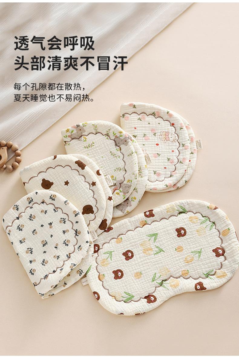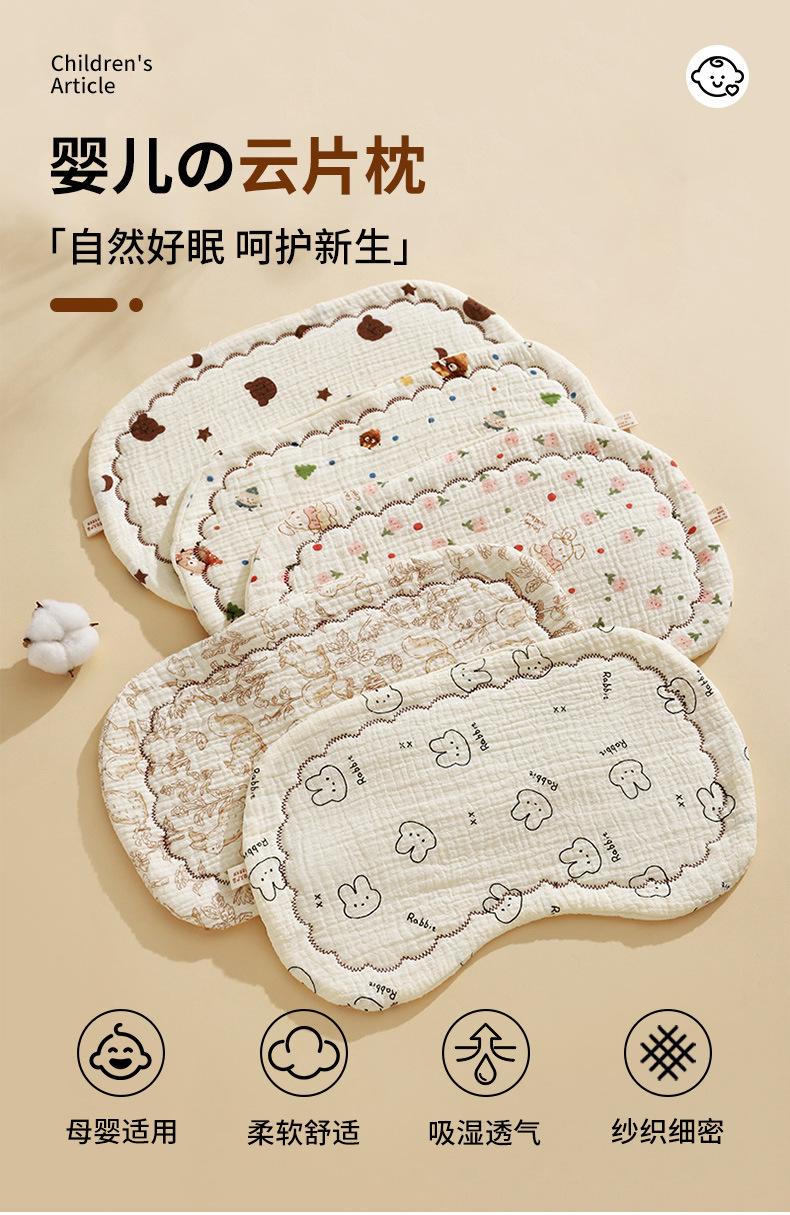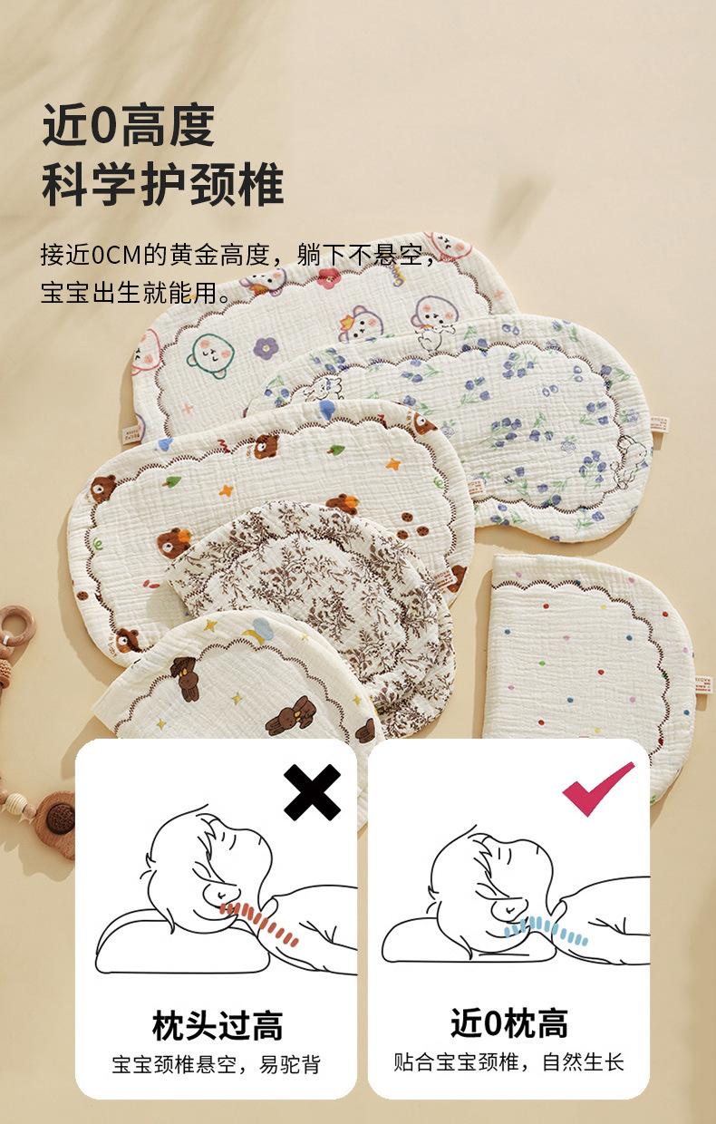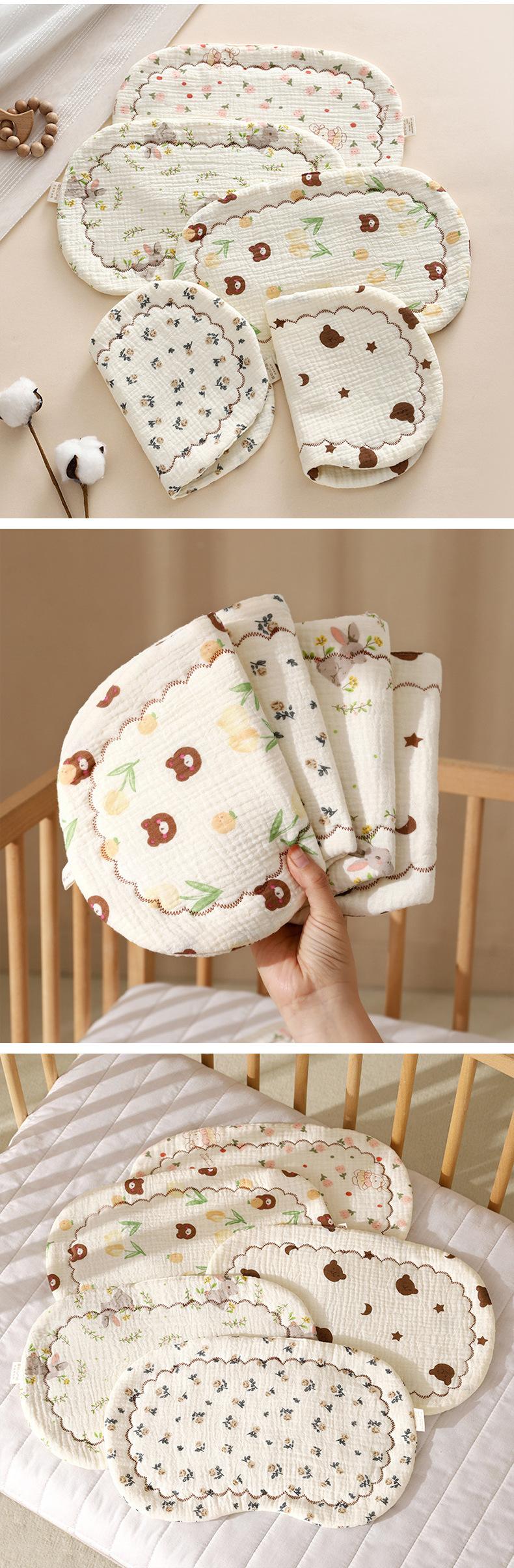 Almohada para Bebé Almohada de Nube para Bebé de Dibujos Animados 0-6 Meses Recién Nacido Antivómito Gasa de Algodón Puro Absorbente de Sudor Funda de Almohada Plana