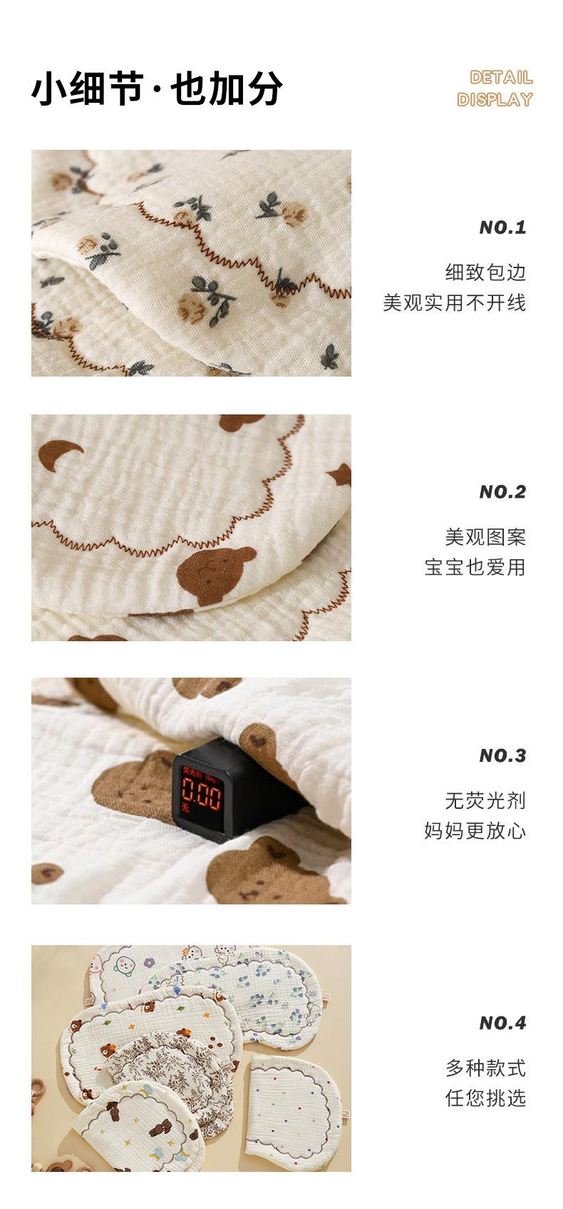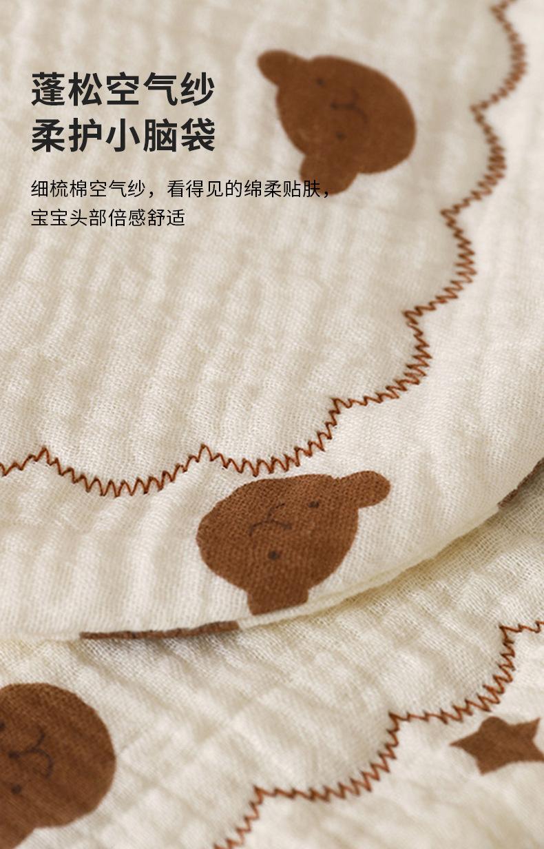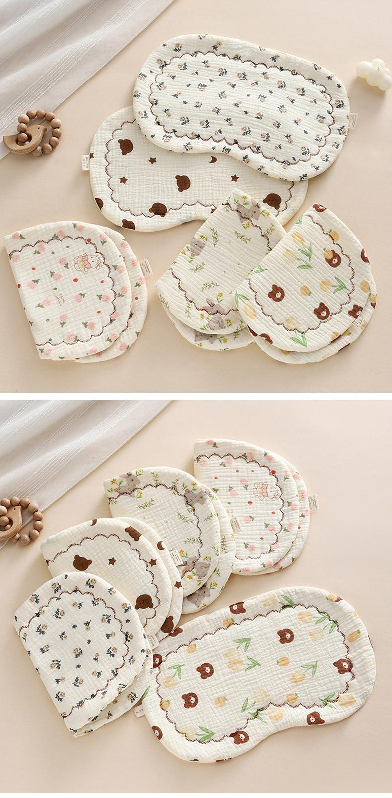 Almohada para Bebé Almohada de Nube para Bebé de Dibujos Animados 0-6 Meses Recién Nacido Antivómito Gasa de Algodón Puro Absorbente de Sudor Funda de Almohada Plana