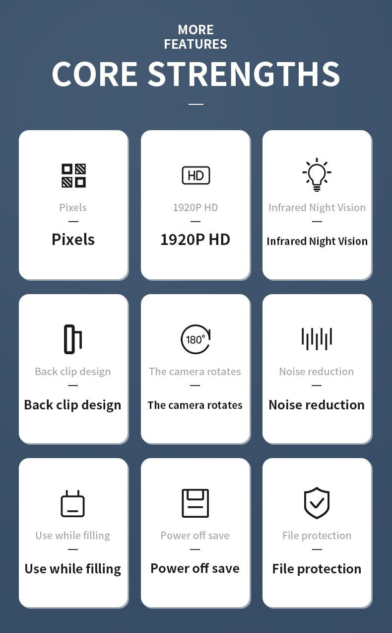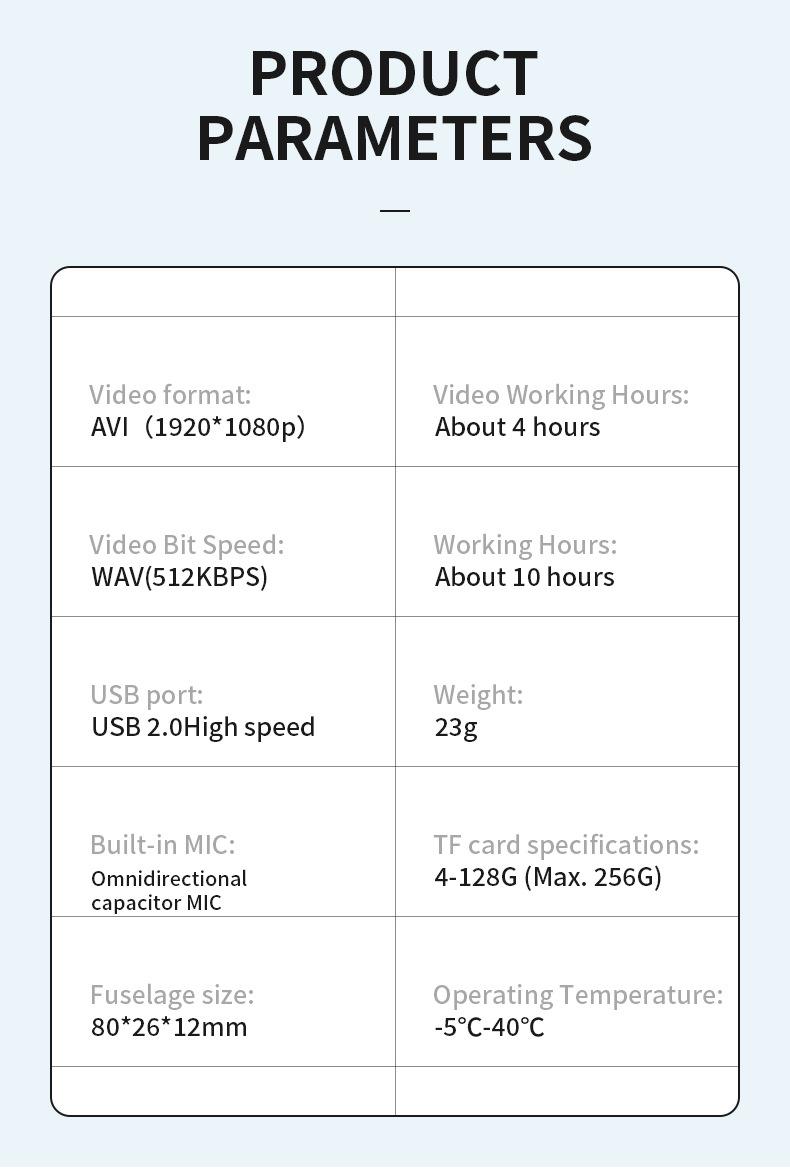 Artefacto profesional de grabación de video HD, grabadora para aplicación de la ley, bolígrafo de grabación, cámara deportiva, visión nocturna infrarroja, cámara de vigilancia
