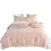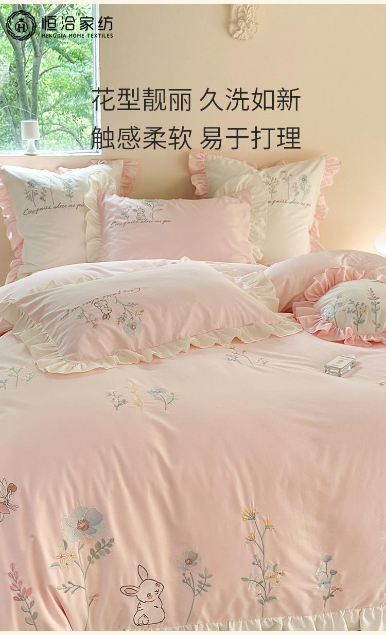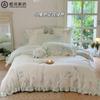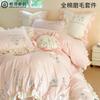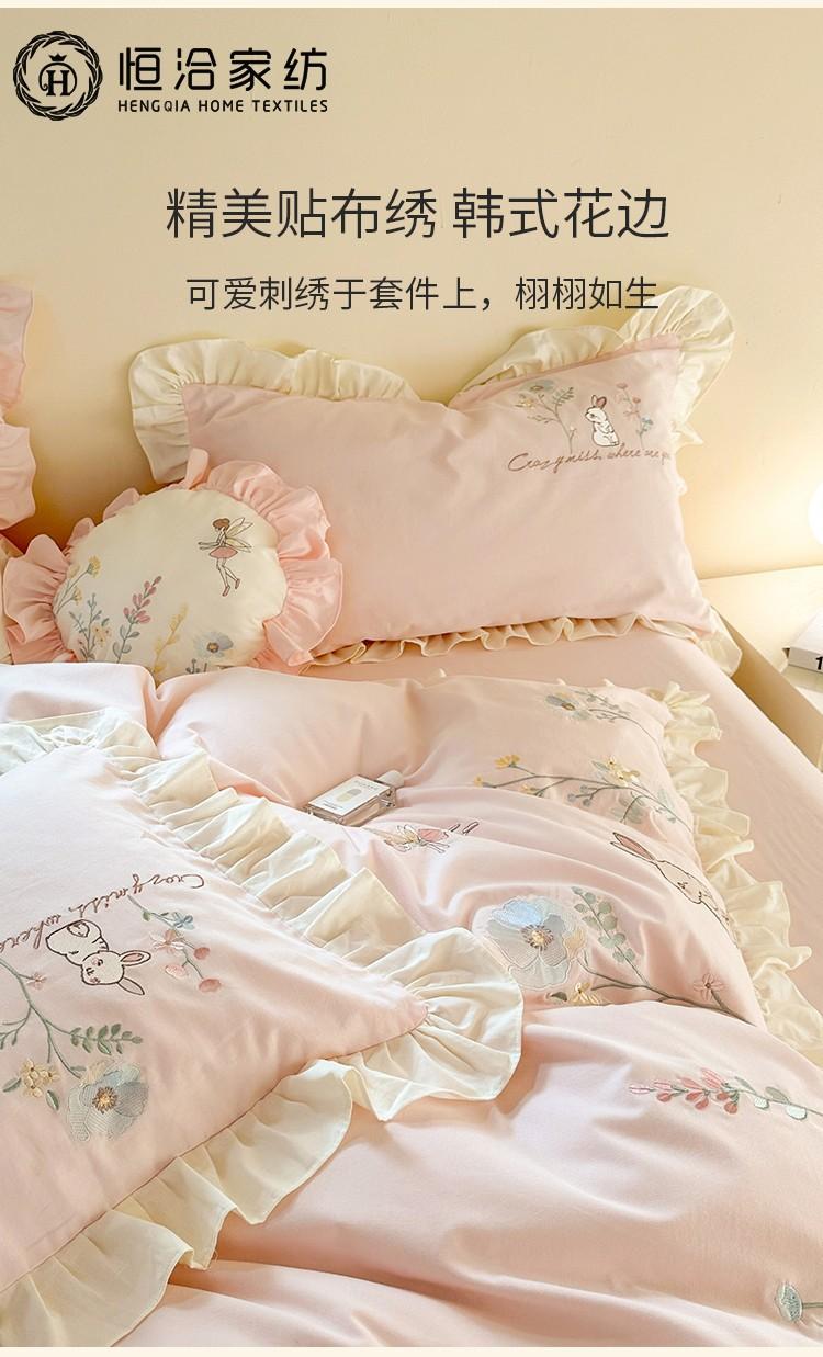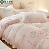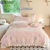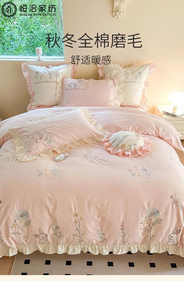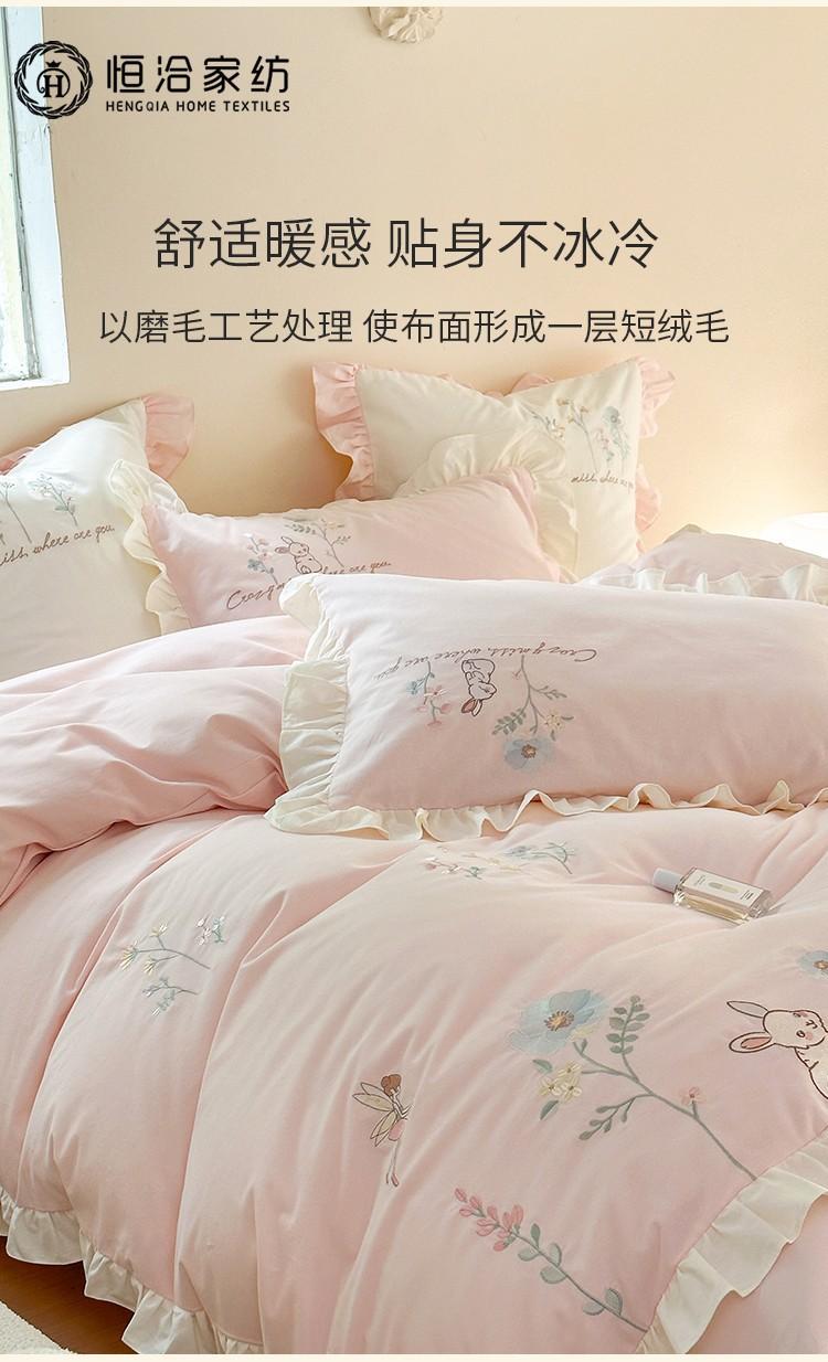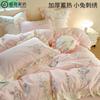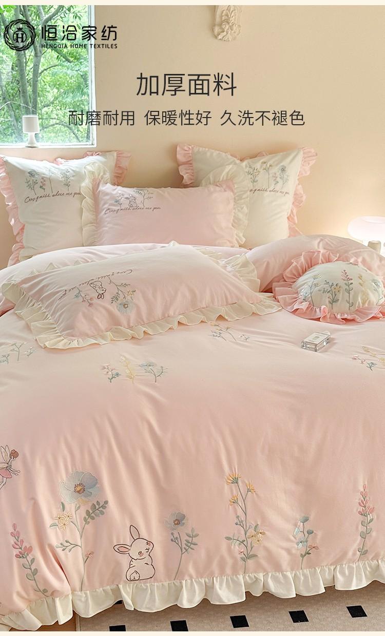 Conjunto de cuatro piezas de franela de algodón para niña de otoño e invierno, algodón puro engrosado, bordado de conejito, encaje, funda nórdica, ropa de cama, verde