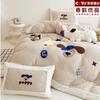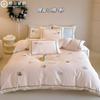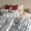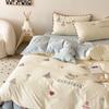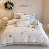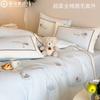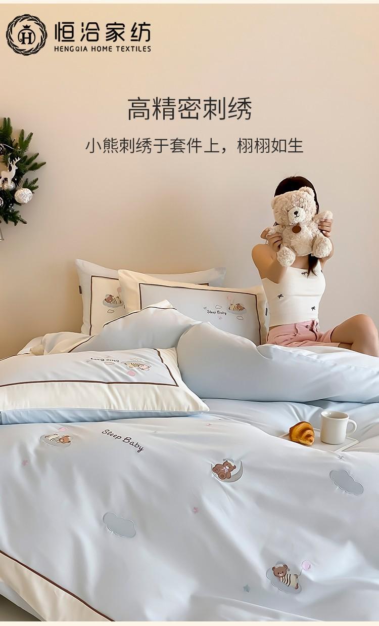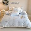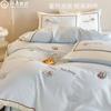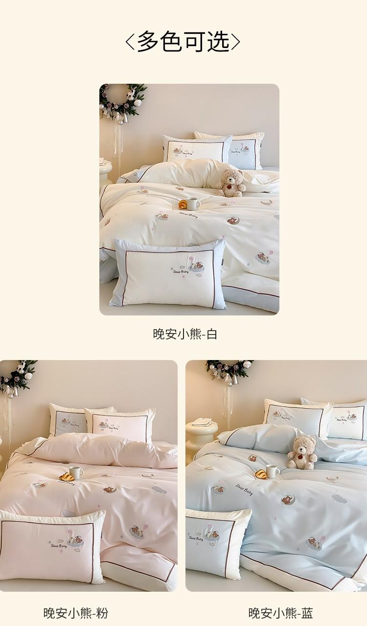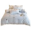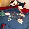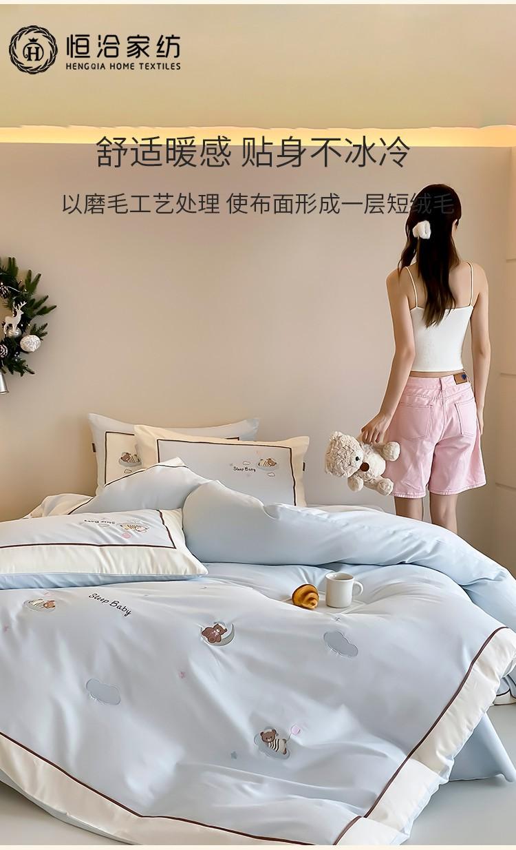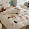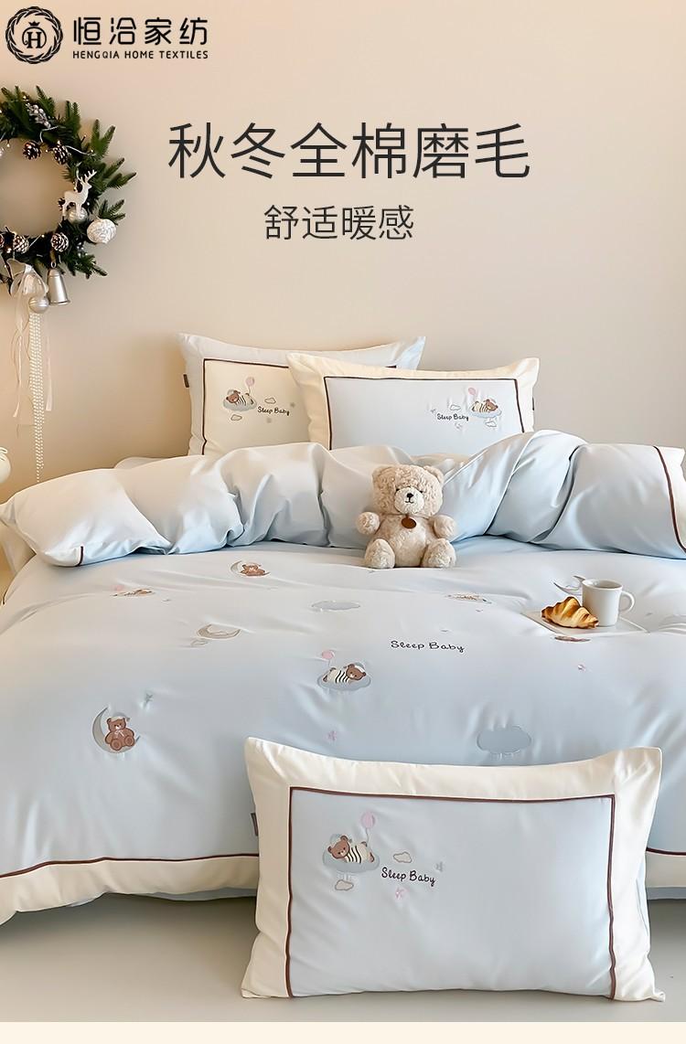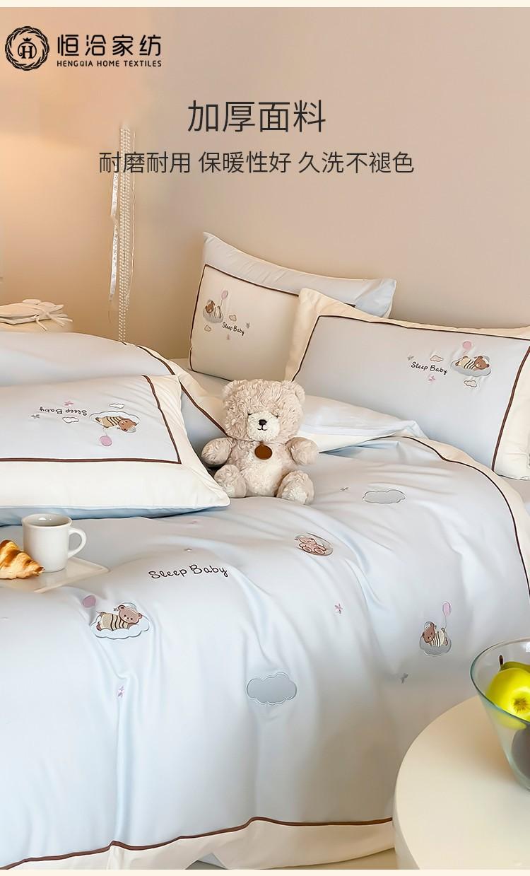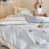 Otoño/Invierno Lindo Oso Franela de Algodón Puro Juego de Cuatro Piezas Bordado de Dibujos Animados Funda de Edredón Acolchada Gruesa y Cálida Ropa de Cama Azul y Blanco