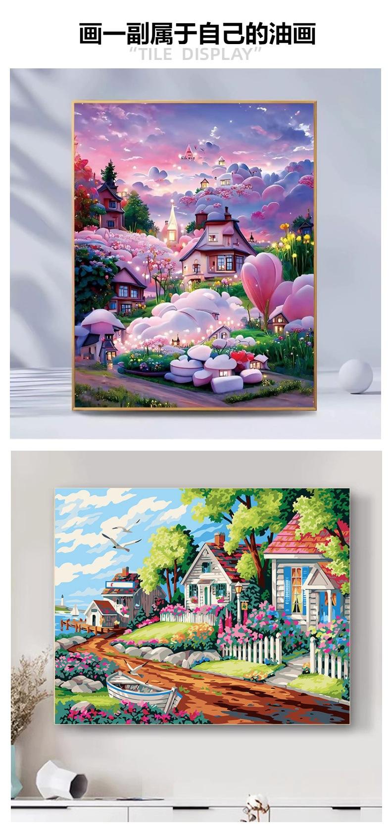 Pintura al óleo digital de venta caliente transfronteriza DIY pintada a mano para colorear pintura paisaje arquitectónico pintura transfronteriza comercio exterior mayoreo Amazon