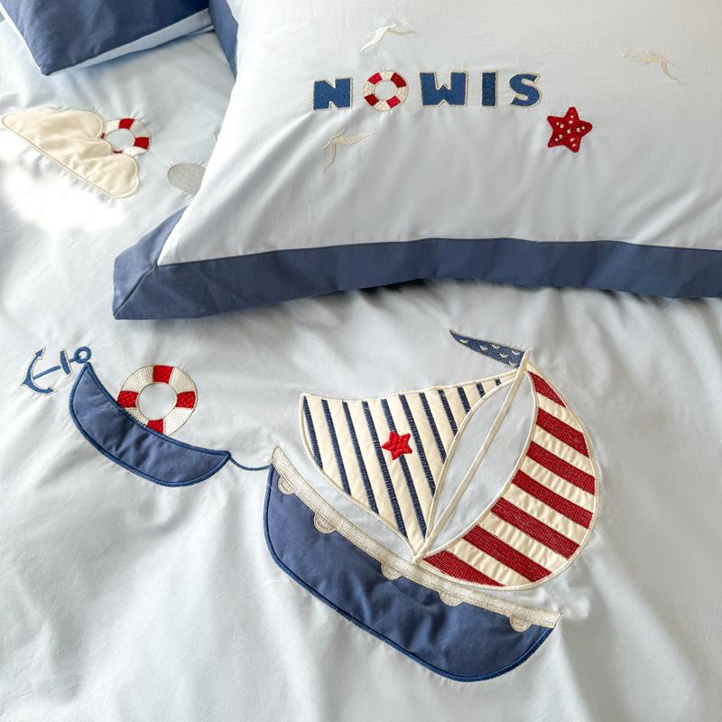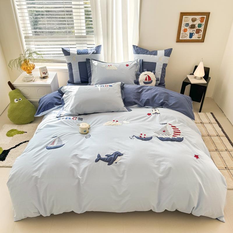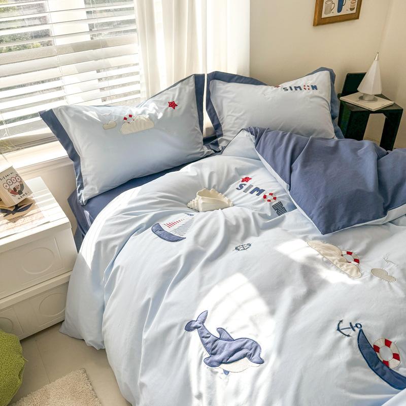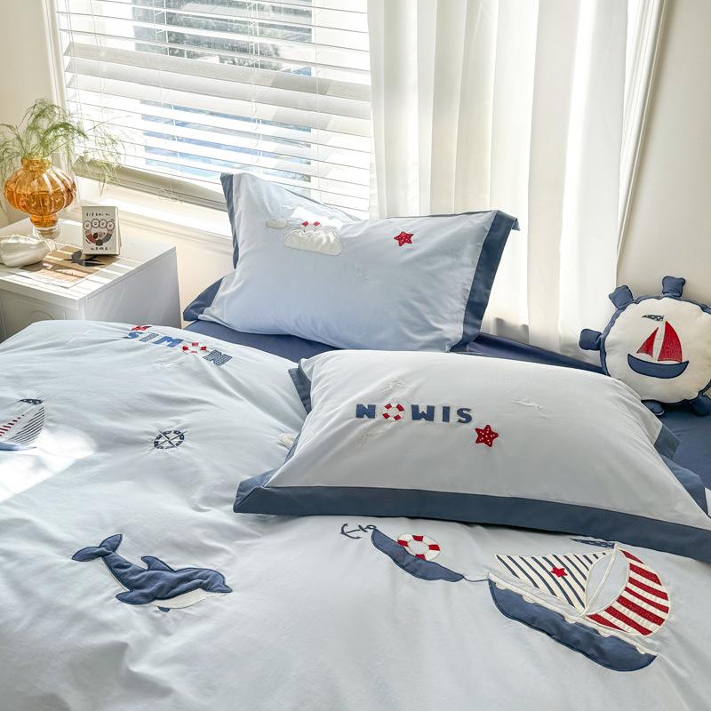 ¡Pon las estrellas y el mar en tu edredón! Juego de cuatro piezas de navegante de dibujos animados