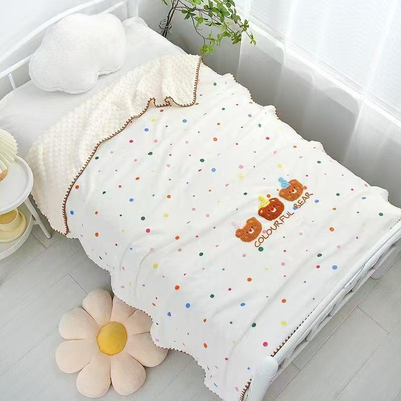 Manta de frijol para niños transfronteriza bordada de terciopelo cristalino manta para bebé suave y cálida colcha para lactantes y niños pequeños