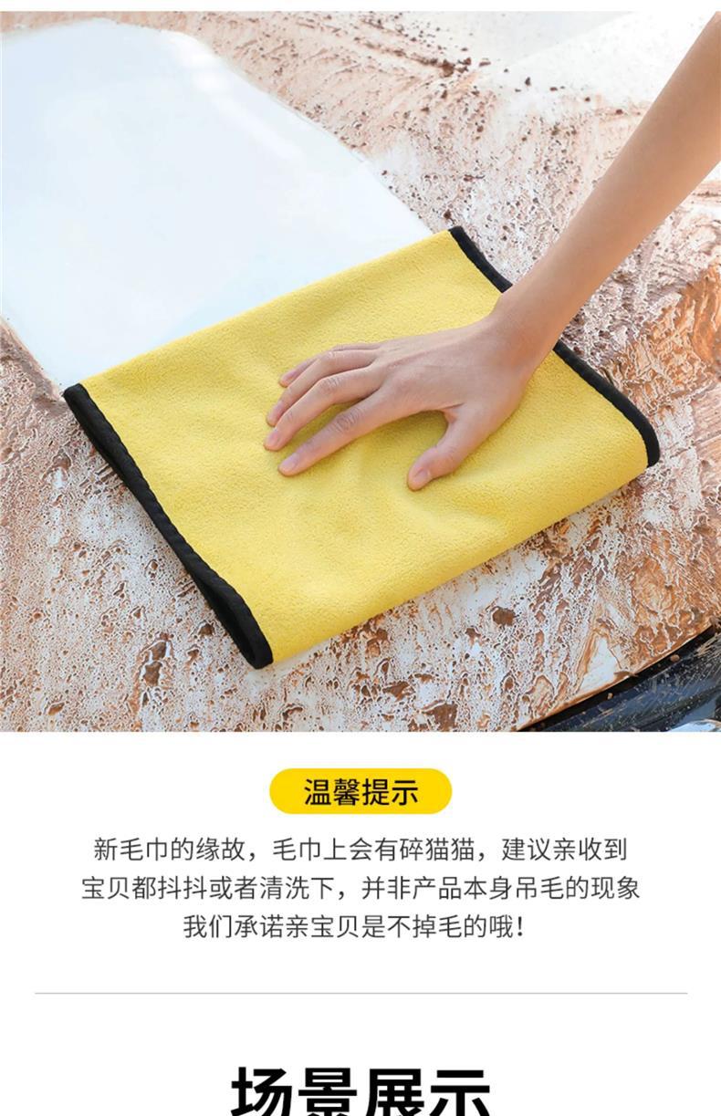 Toalla extra grande para limpieza de autos sin pelusa engrosada especial para lavado de autos toalla absorbente de doble cara paño sin costuras para limpieza de cristales de autos