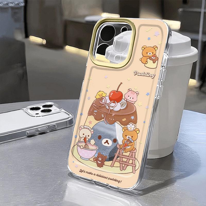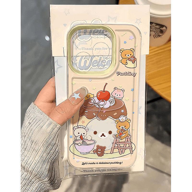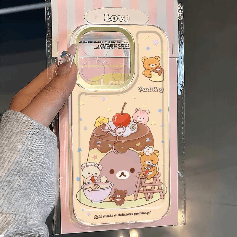 Funda para teléfono Pudding Rilakkuma Compatible Apple 17PRO iPhone16 Nuevo 15ROMAX/13/12/11 Transparente X