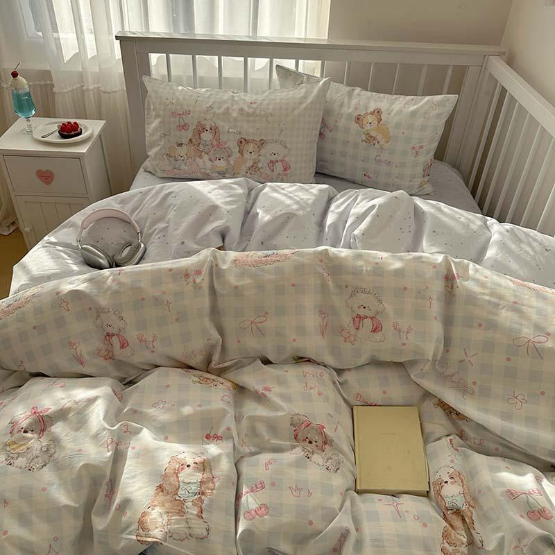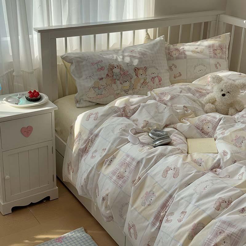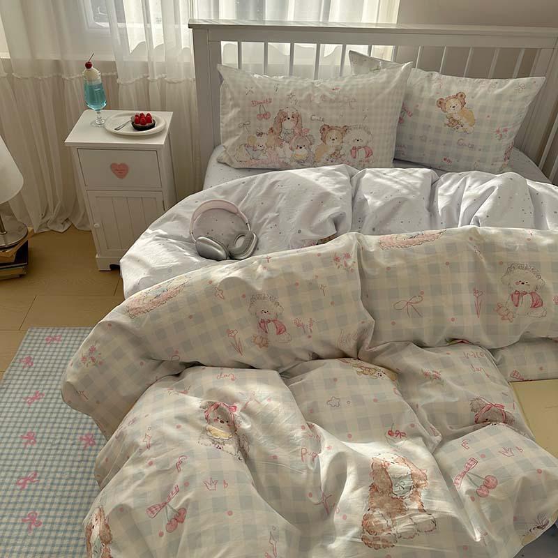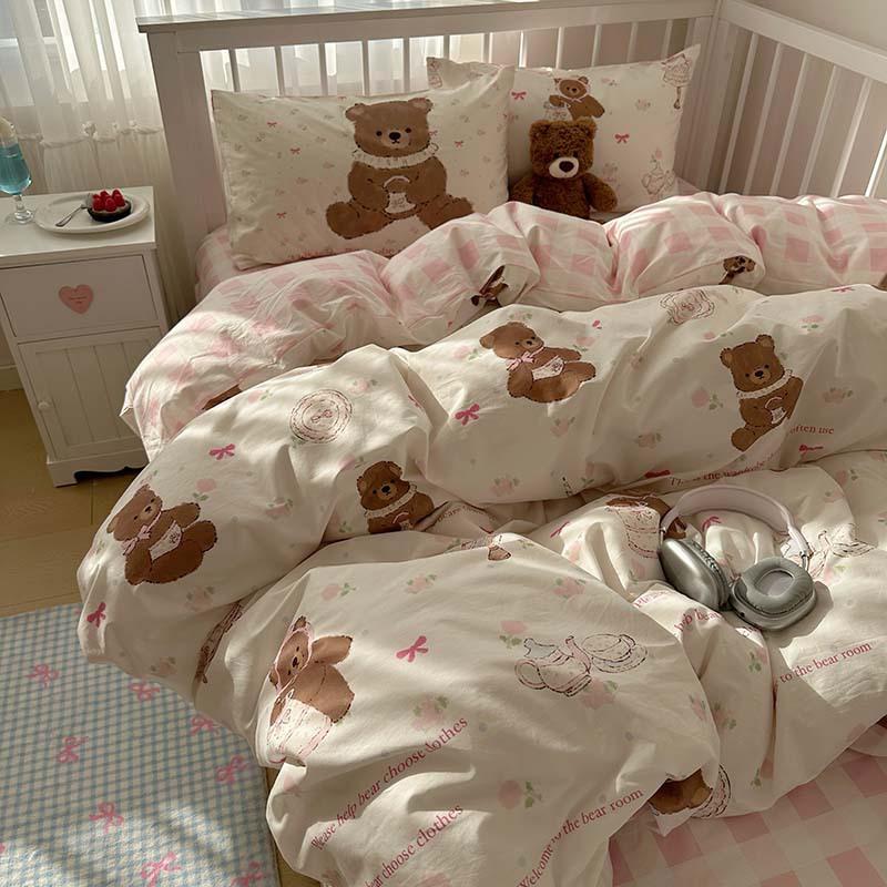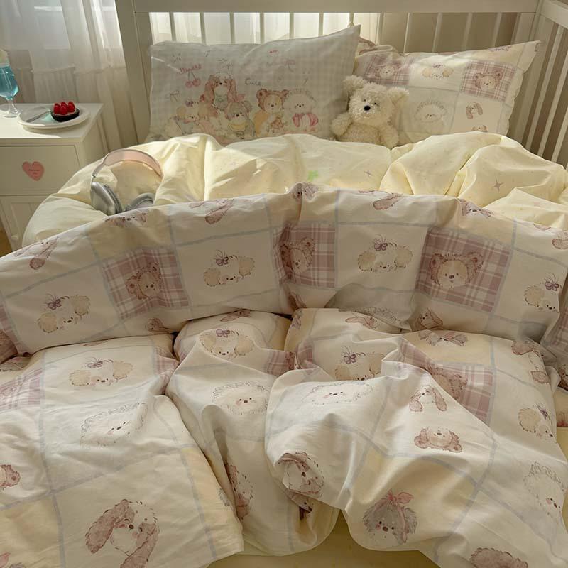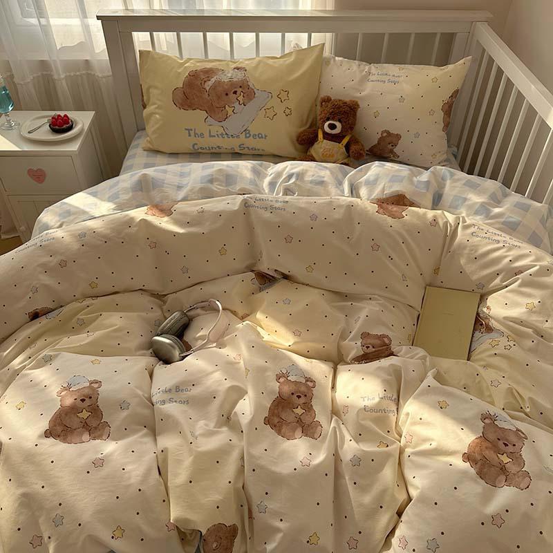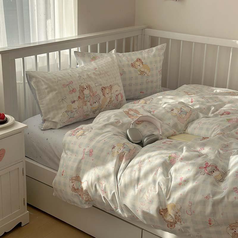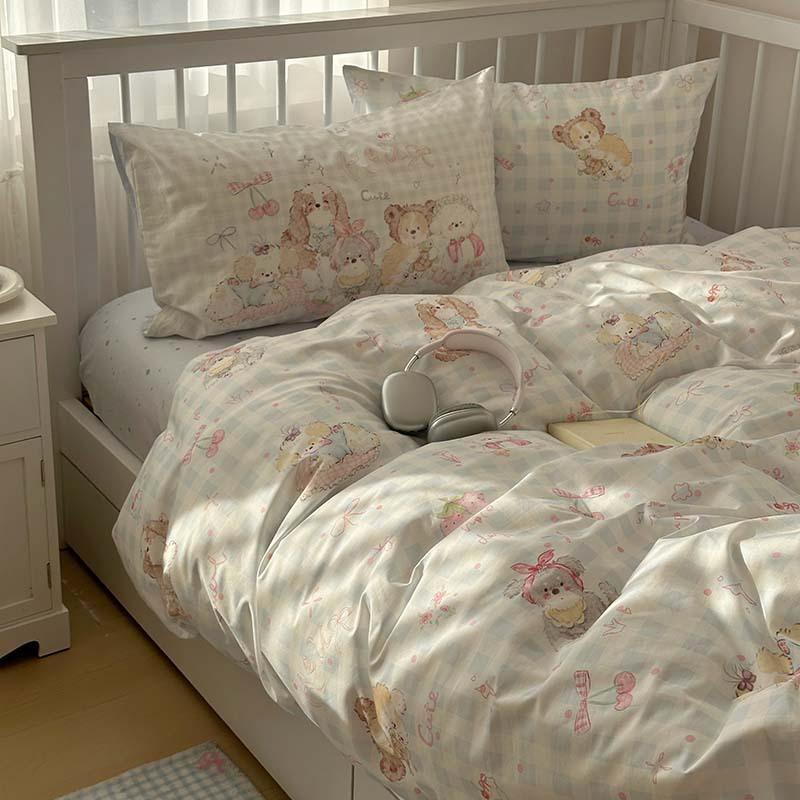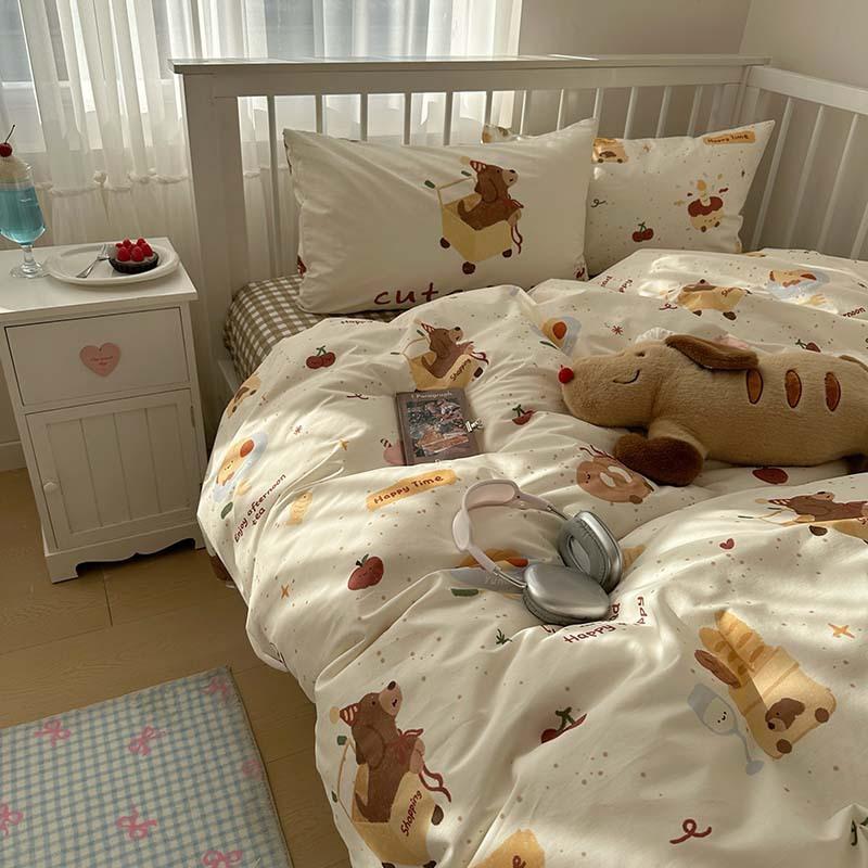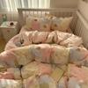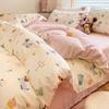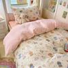 Juego de cama de cuatro piezas de algodón puro de dibujos animados, Ropa de cama infantil linda de algodón puro, Funda nórdica de invierno para dormitorio, Sábanas de cama, Juego de sábanas ajustables de tres piezas