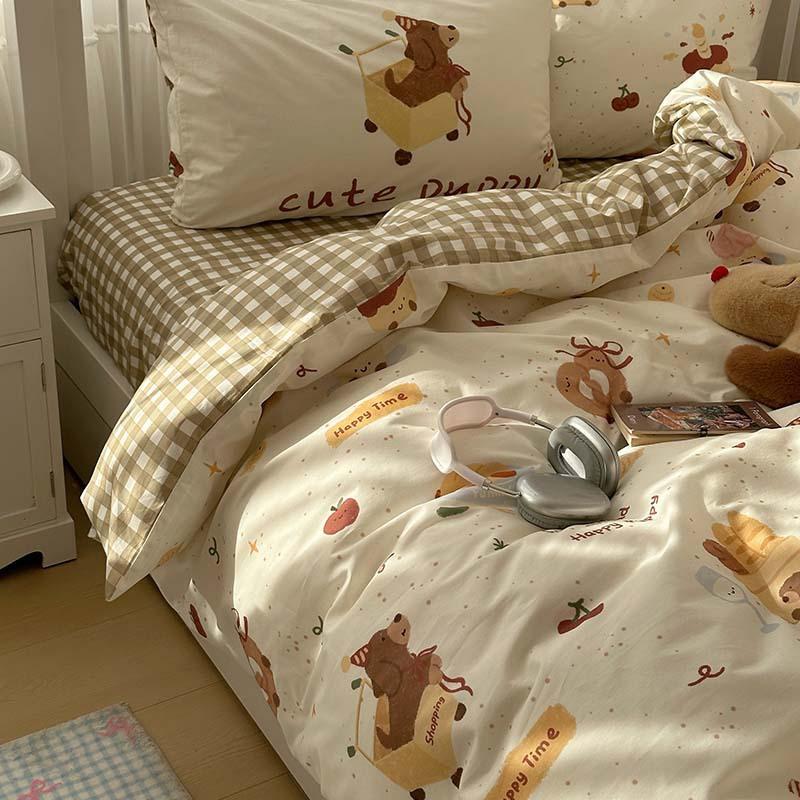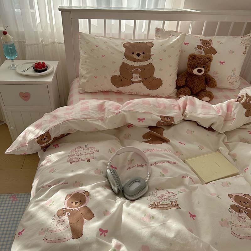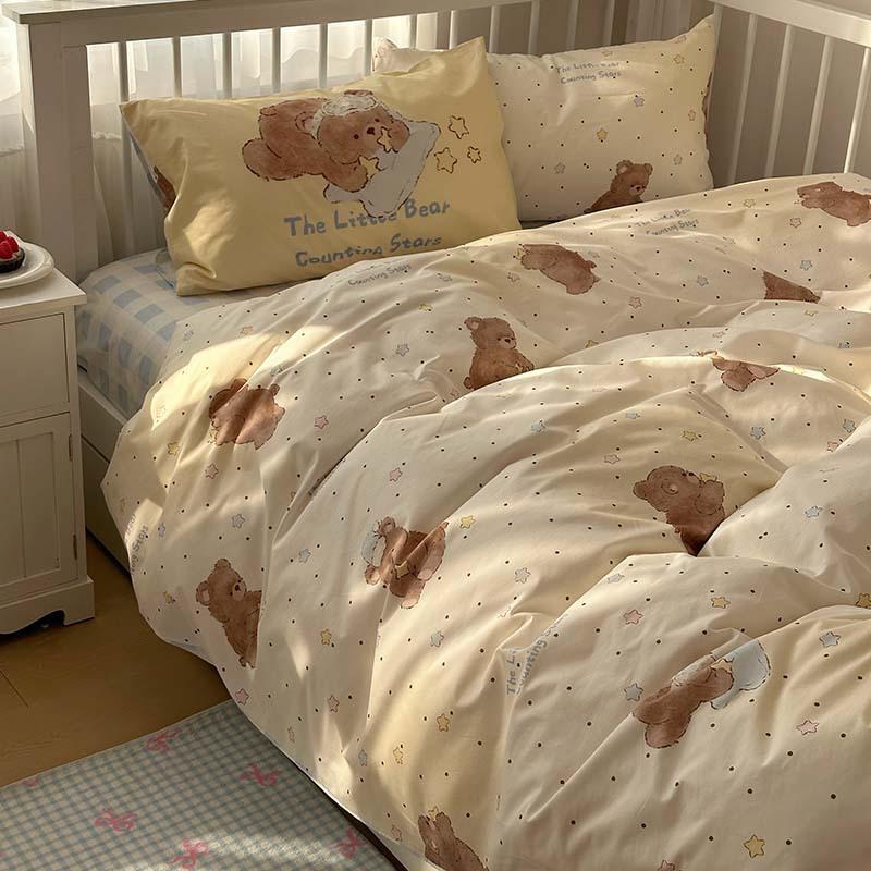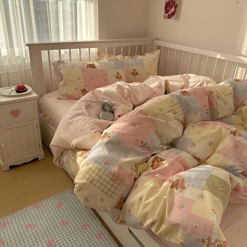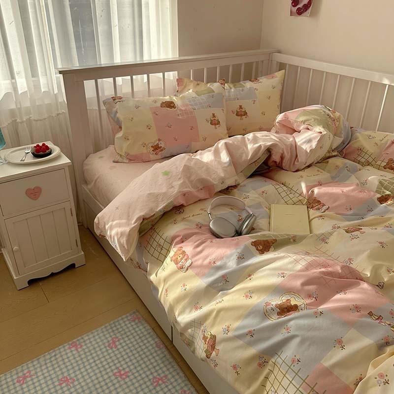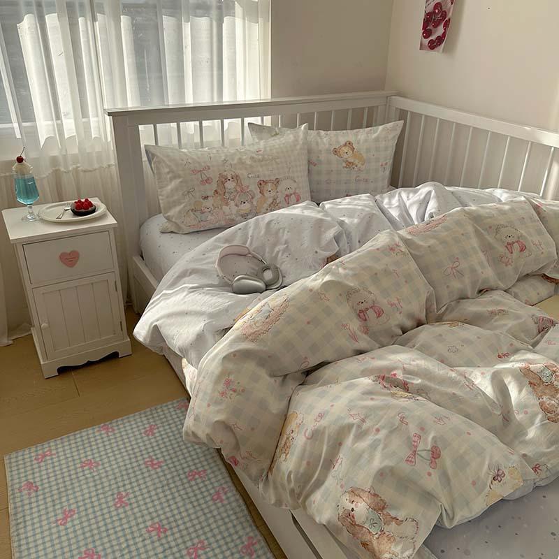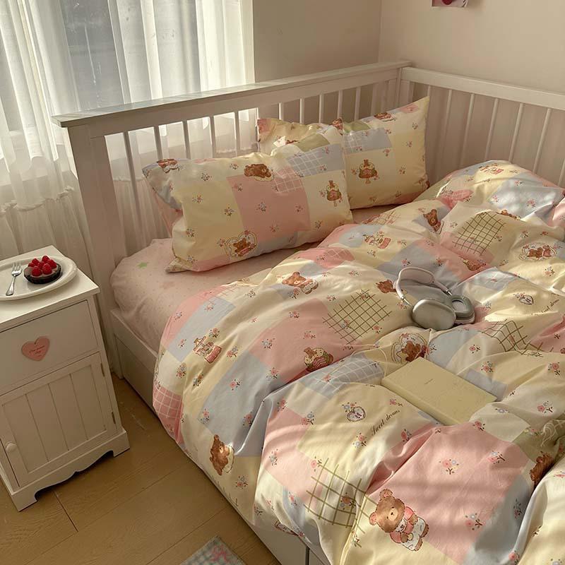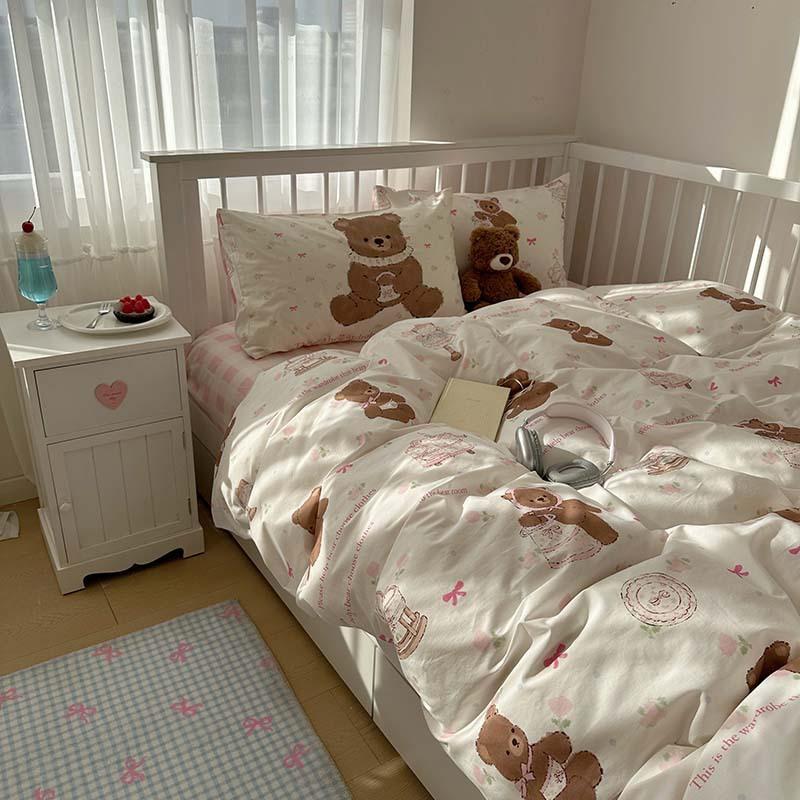 Juego de cama de cuatro piezas de algodón puro de dibujos animados, Ropa de cama infantil linda de algodón puro, Funda nórdica de invierno para dormitorio, Sábanas de cama, Juego de sábanas ajustables de tres piezas