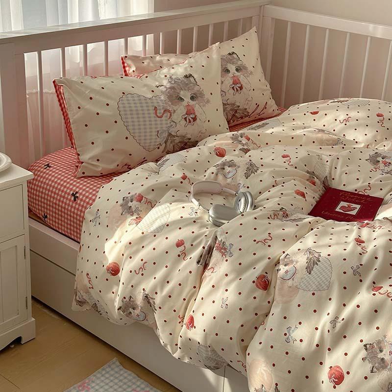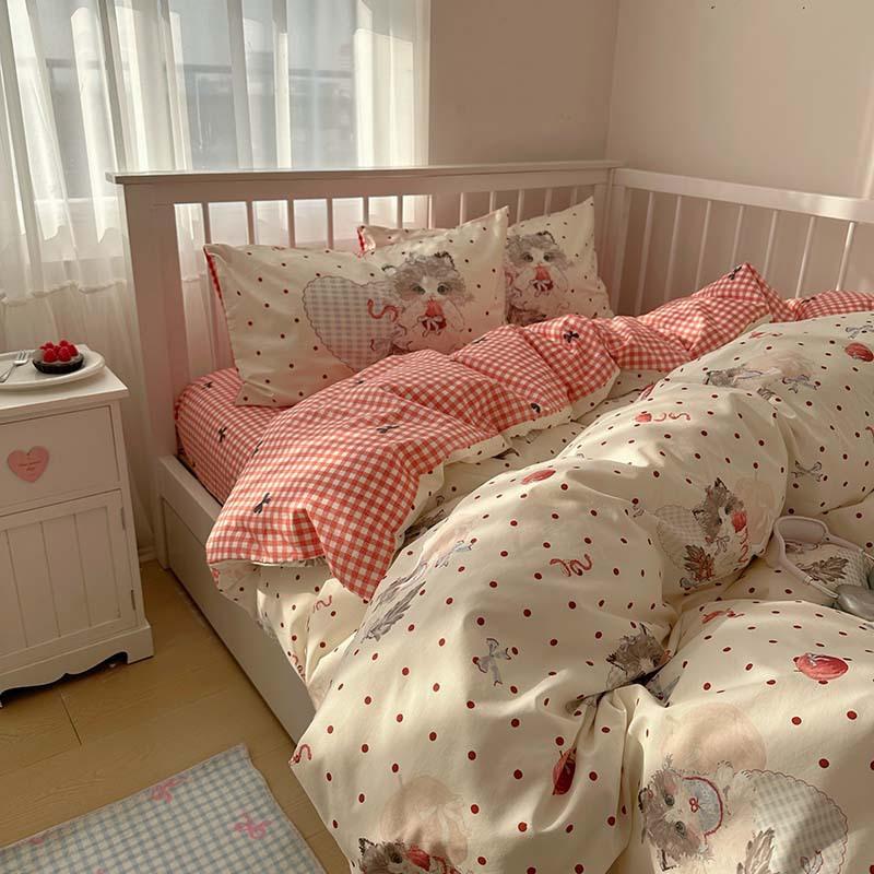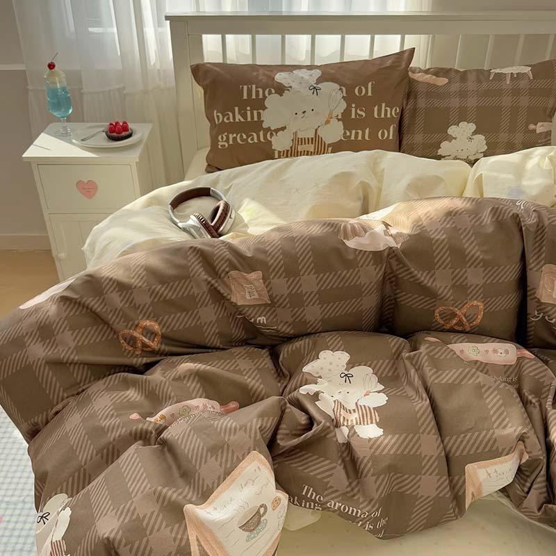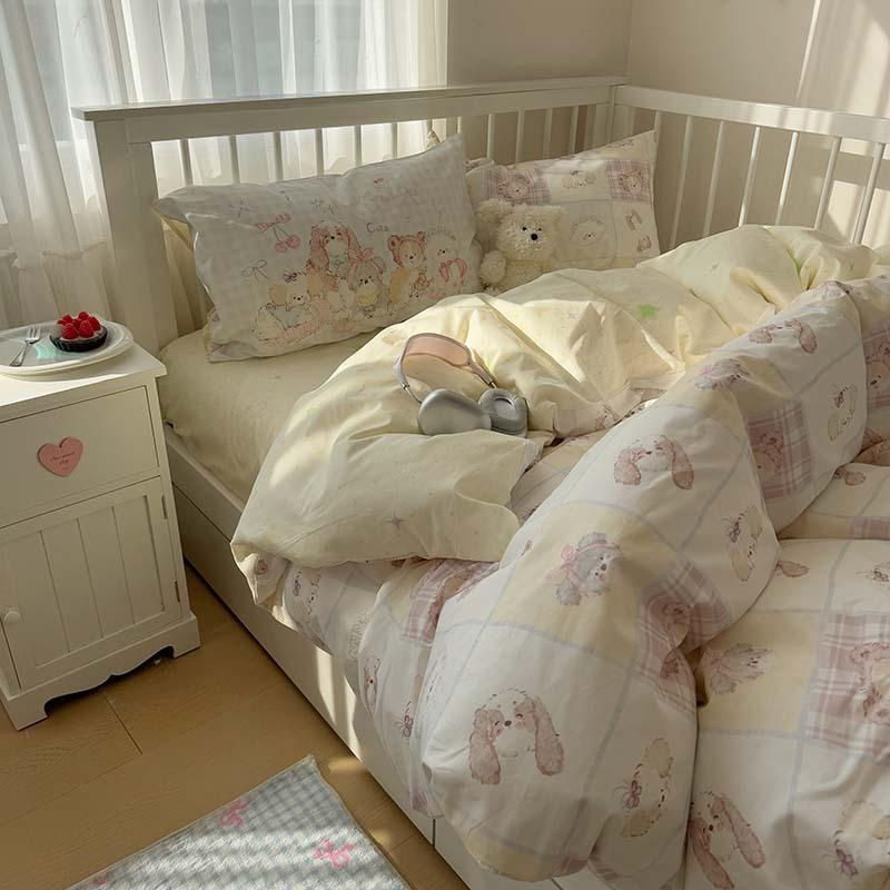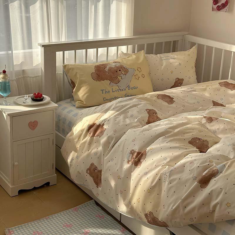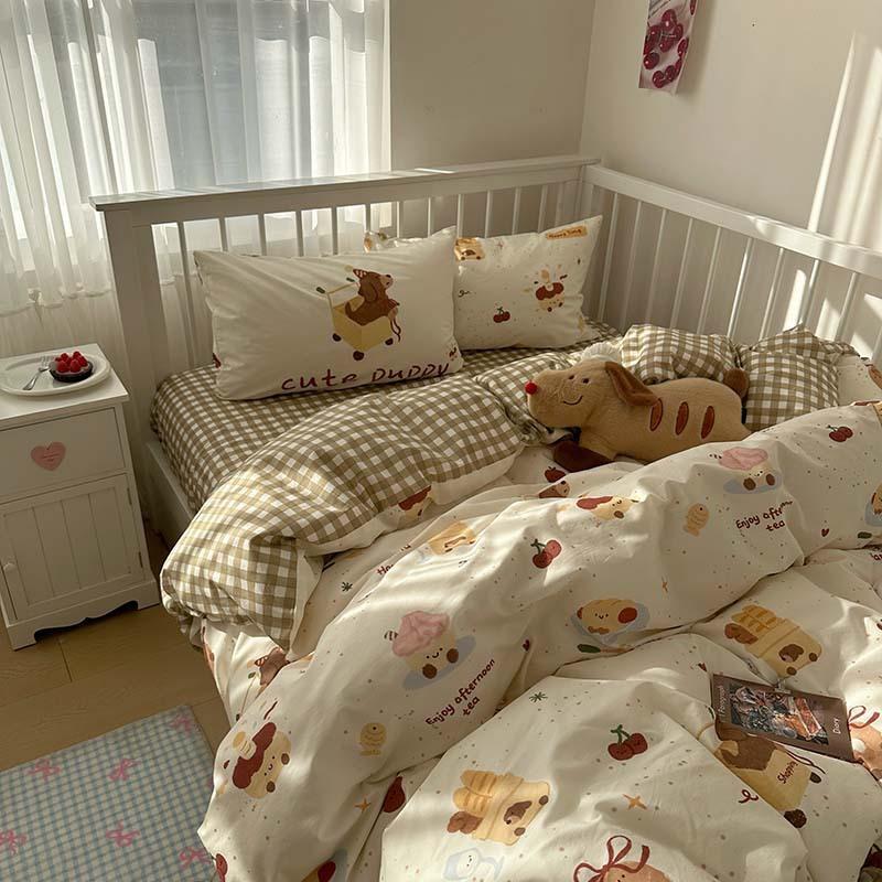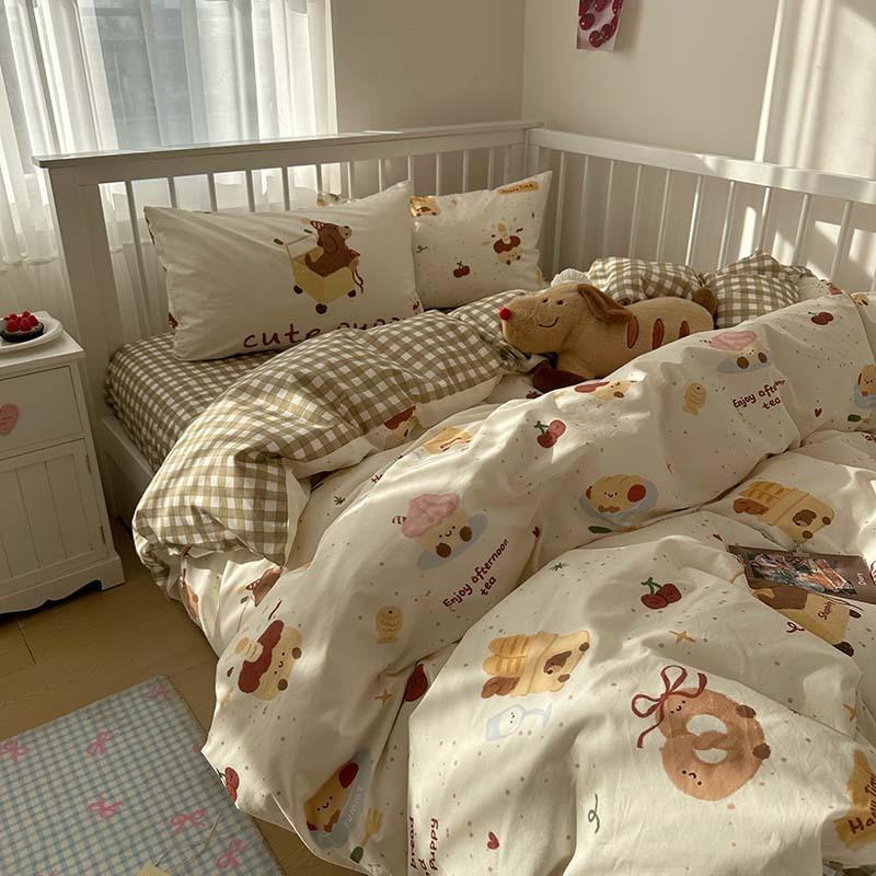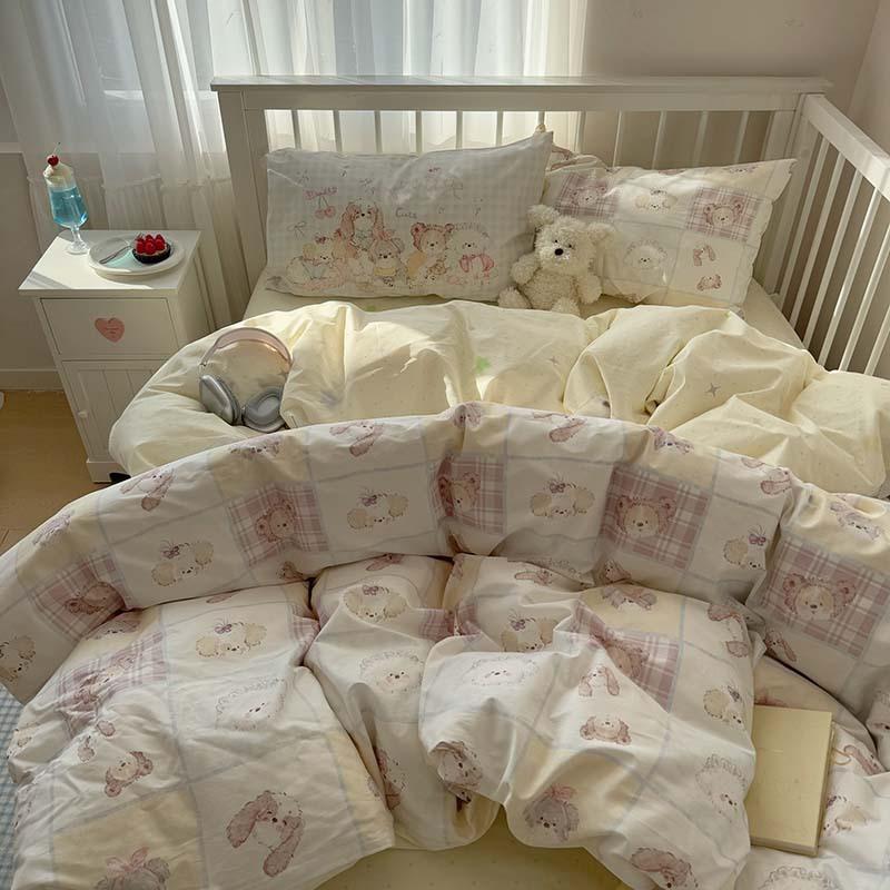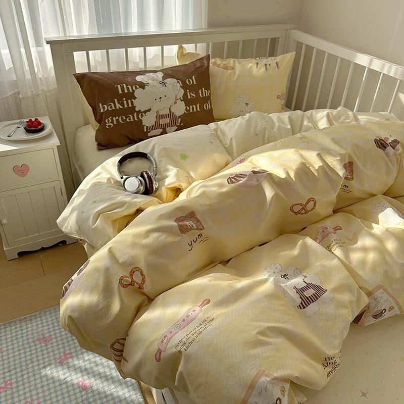 Juego de cama de cuatro piezas de algodón puro de dibujos animados, Ropa de cama infantil linda de algodón puro, Funda nórdica de invierno para dormitorio, Sábanas de cama, Juego de sábanas ajustables de tres piezas