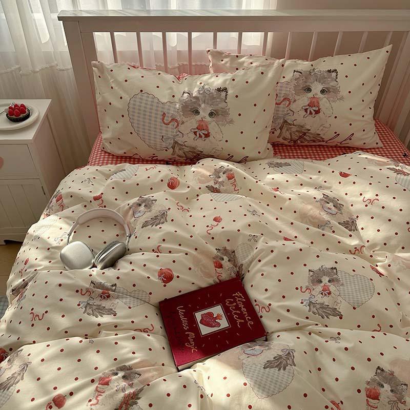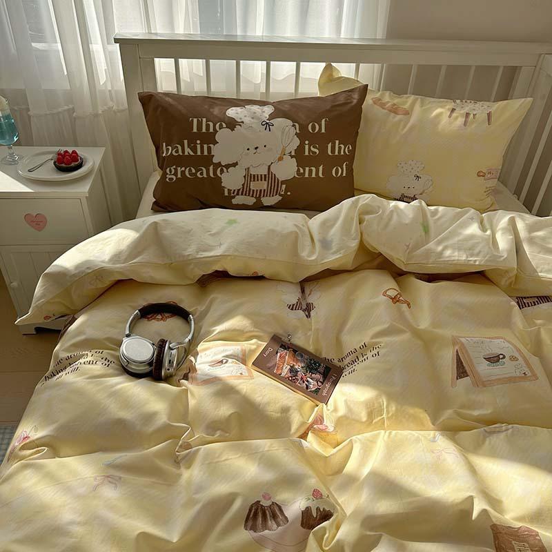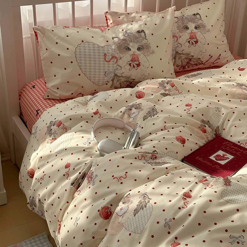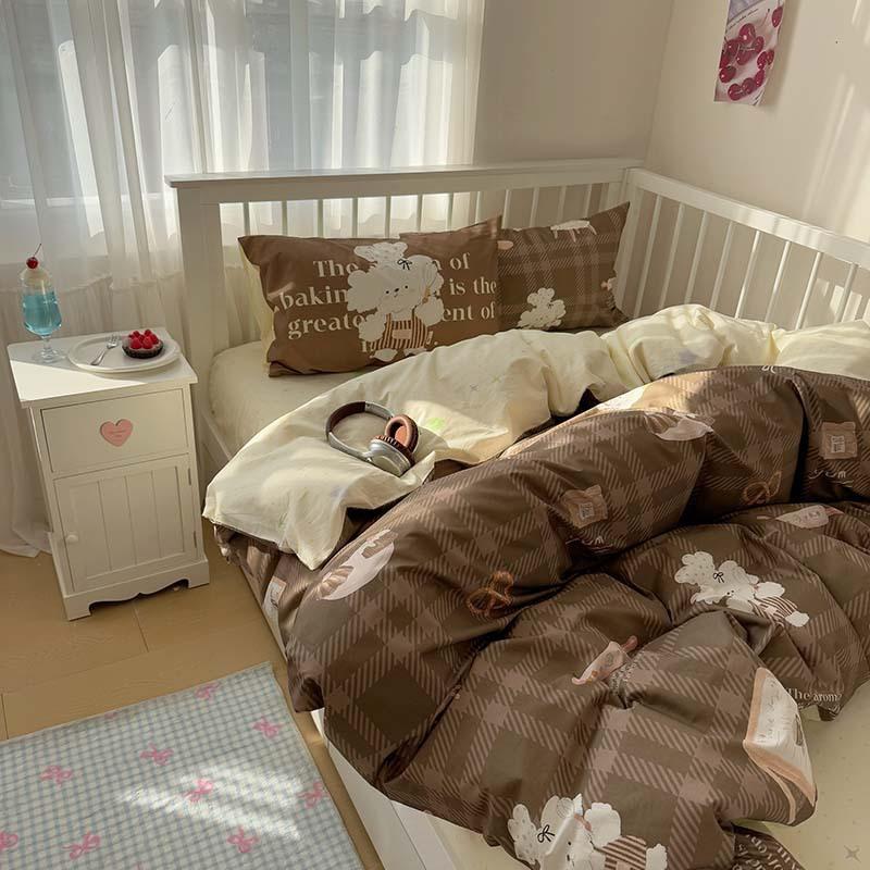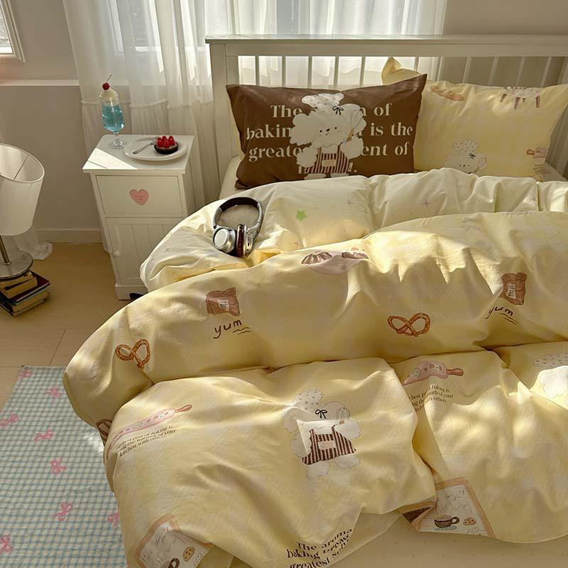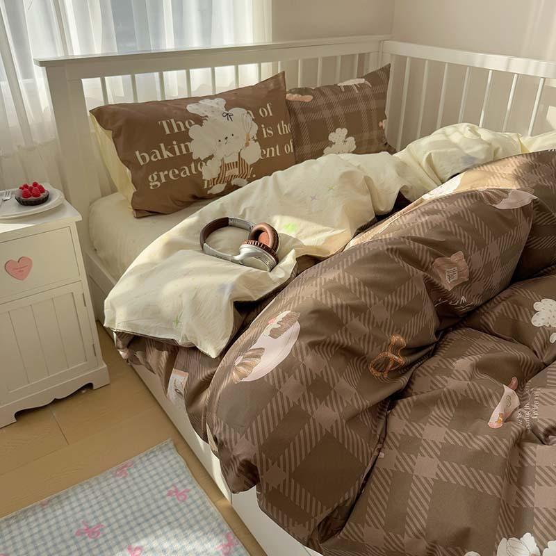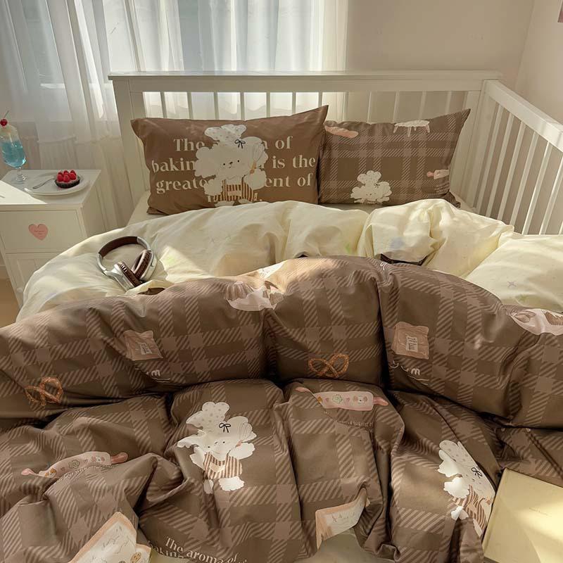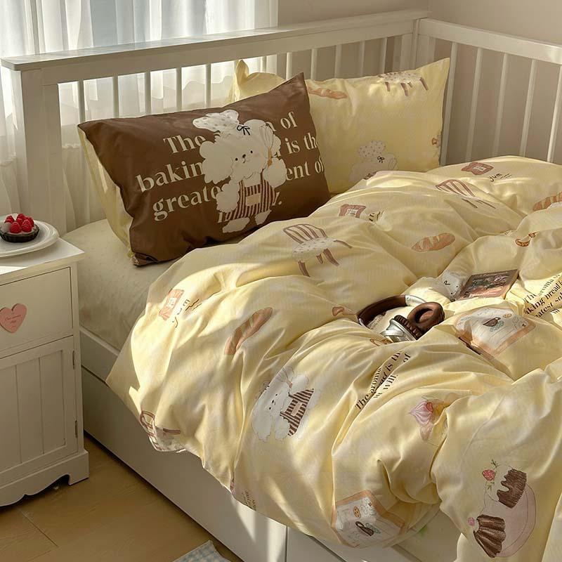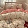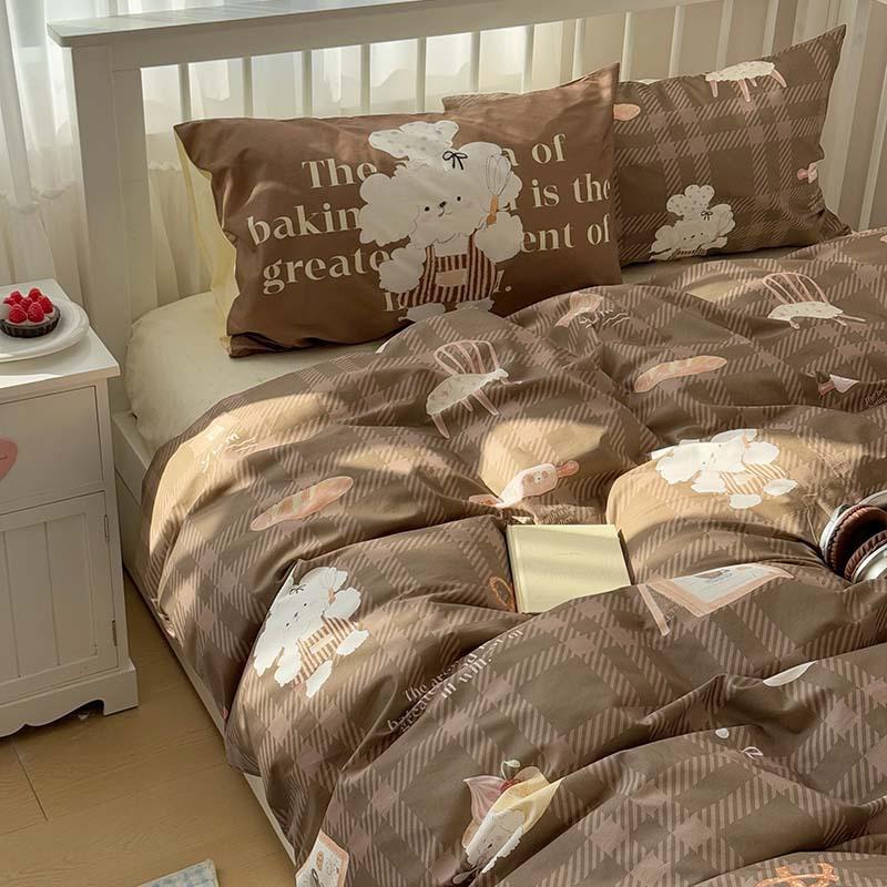 Juego de cama de cuatro piezas de algodón puro de dibujos animados, Ropa de cama infantil linda de algodón puro, Funda nórdica de invierno para dormitorio, Sábanas de cama, Juego de sábanas ajustables de tres piezas