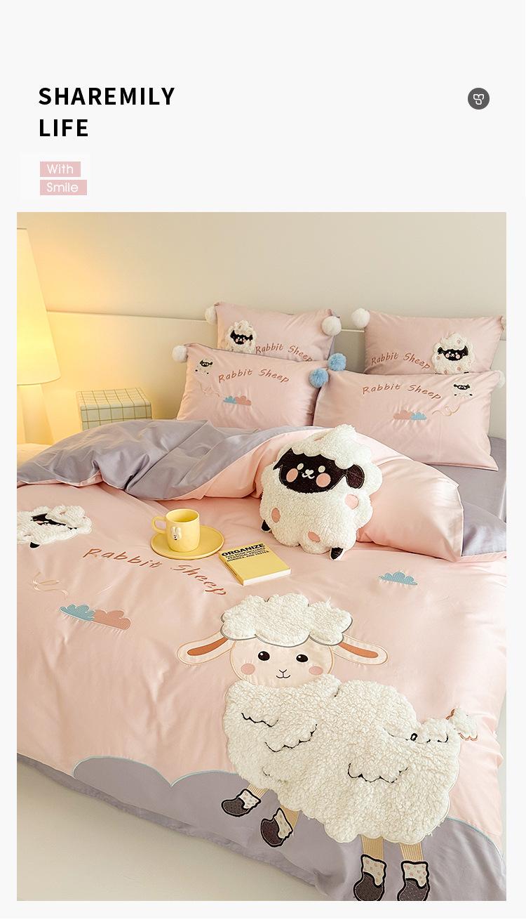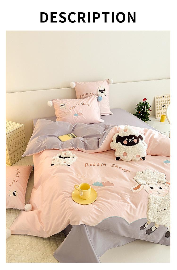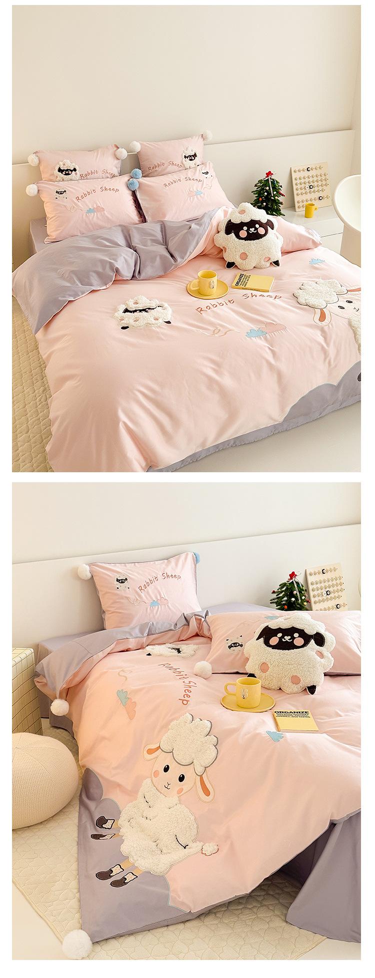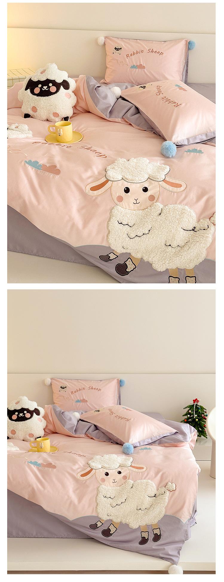 Algodón 100S algodón de fibra larga bordado de cordero de dibujos animados juego de cuatro piezas para dormitorio de estudiantes colcha de 1,2 m ropa de cama para niños y niñas