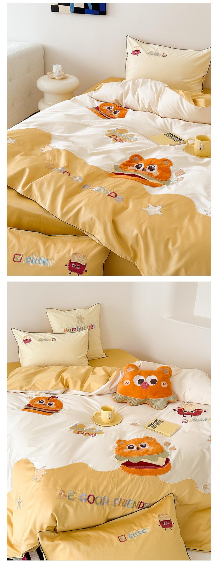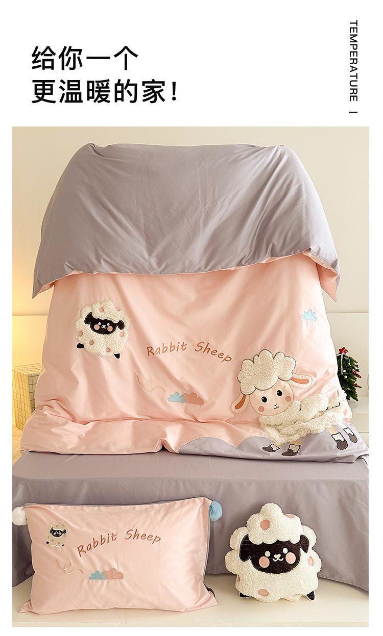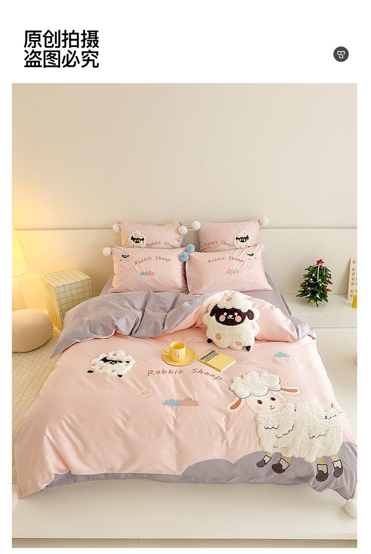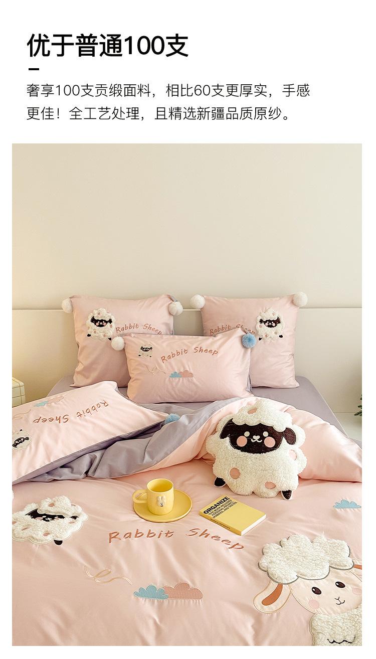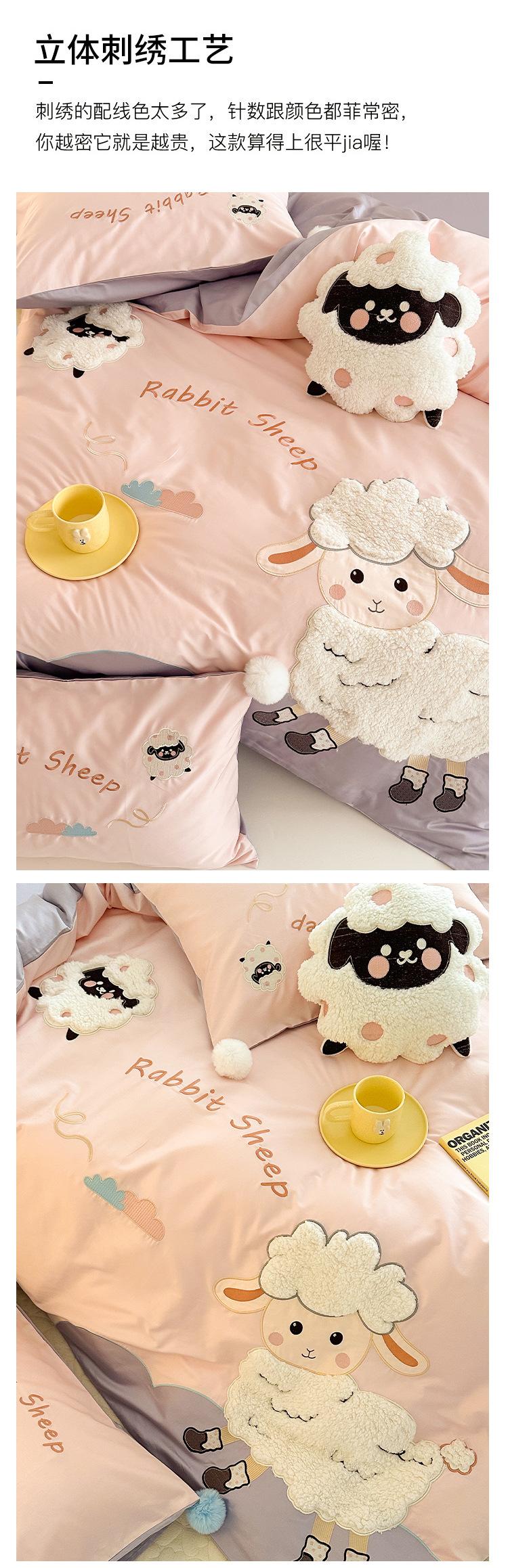 Algodón 100S algodón de fibra larga bordado de cordero de dibujos animados juego de cuatro piezas para dormitorio de estudiantes colcha de 1,2 m ropa de cama para niños y niñas