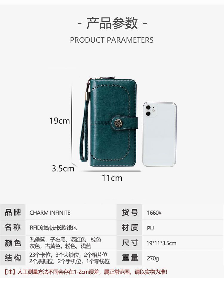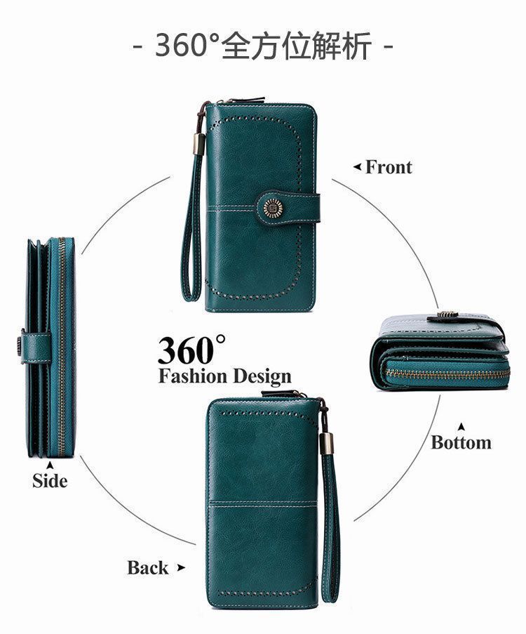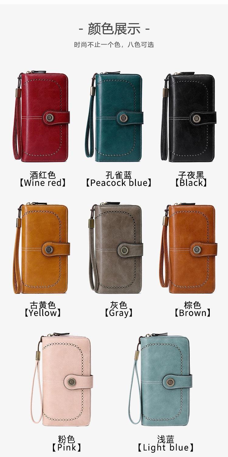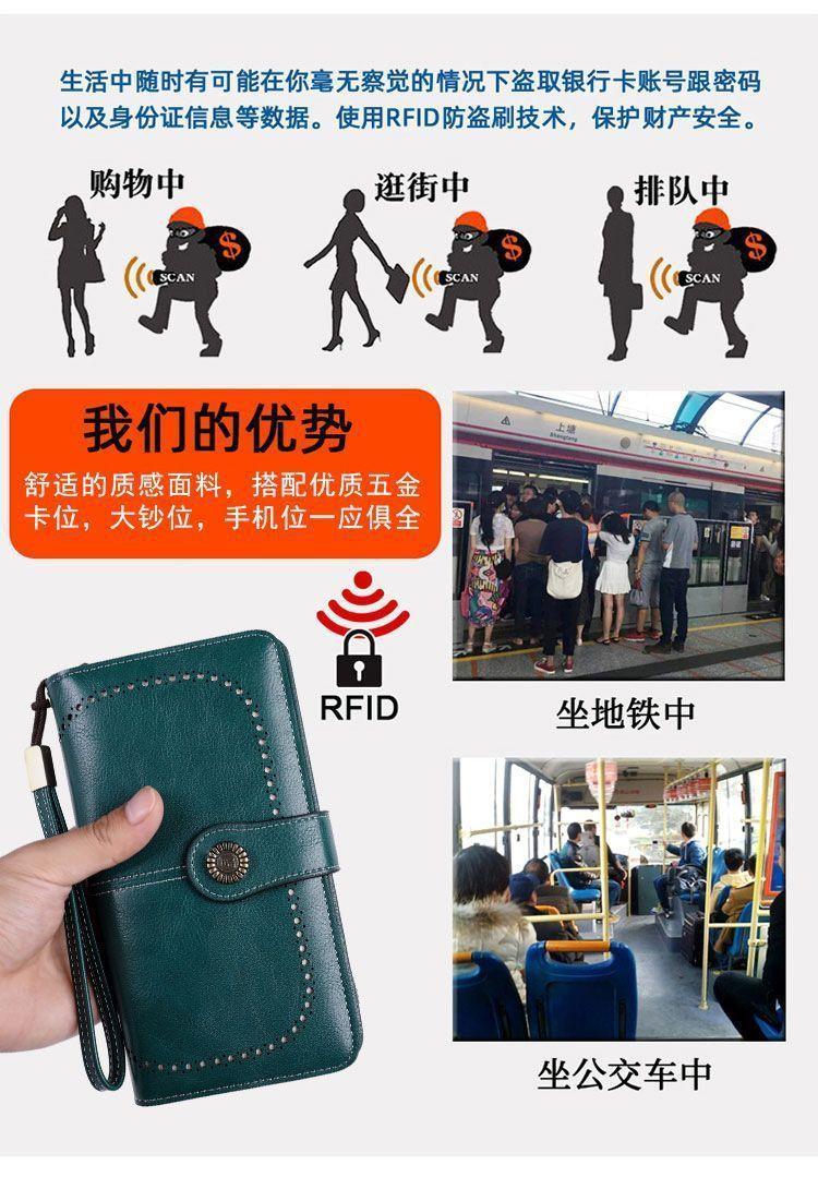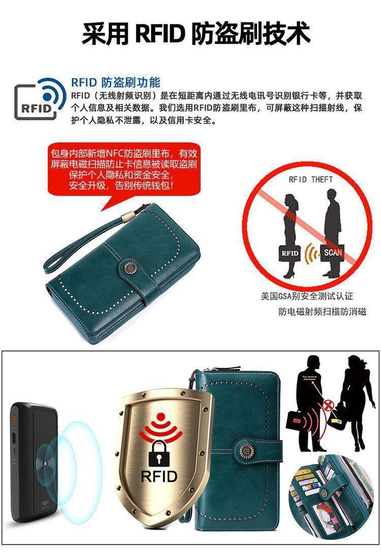 Nueva cartera antirrobo para mujer, cartera larga de piel con cremallera, tarjetero de moda europea y americana, bolso para teléfono de gran capacidad, clutch