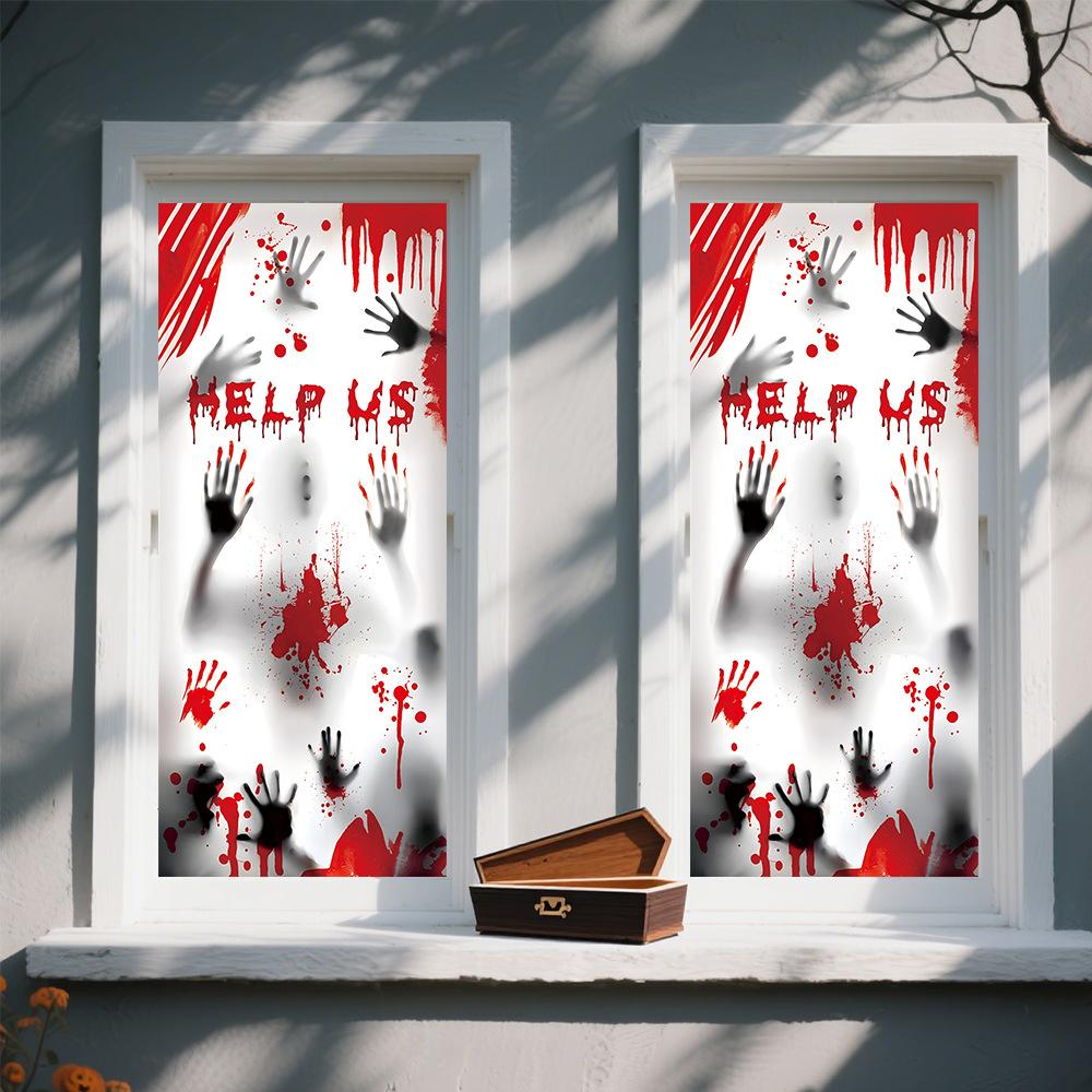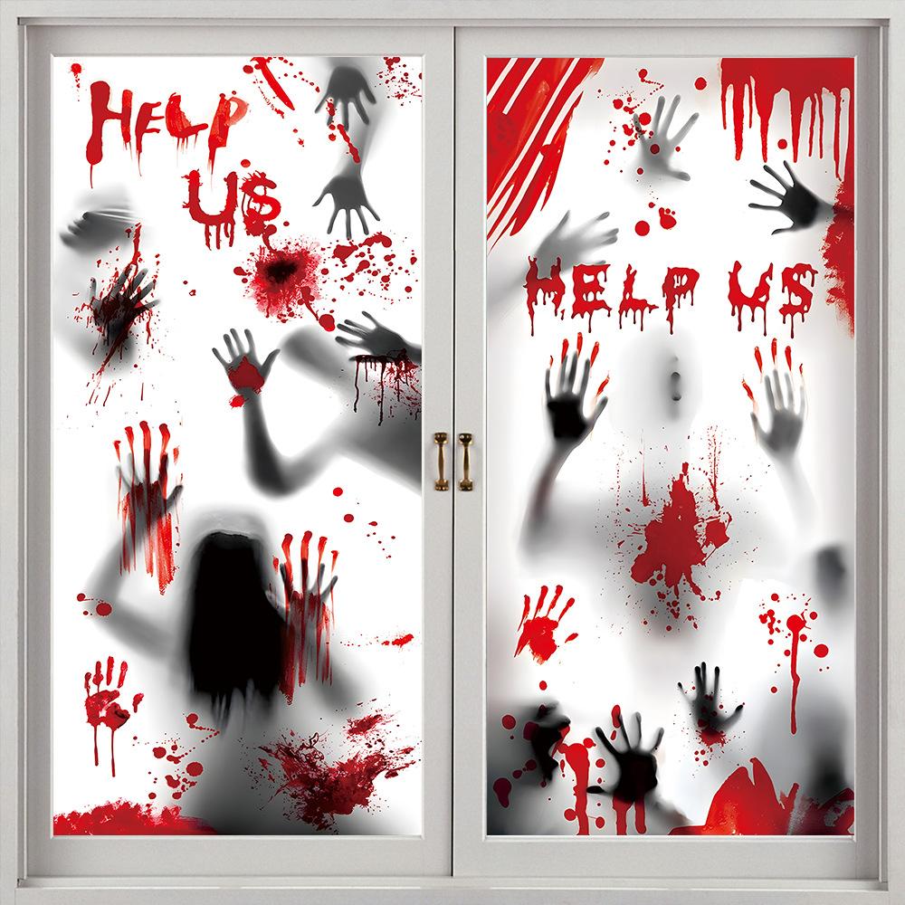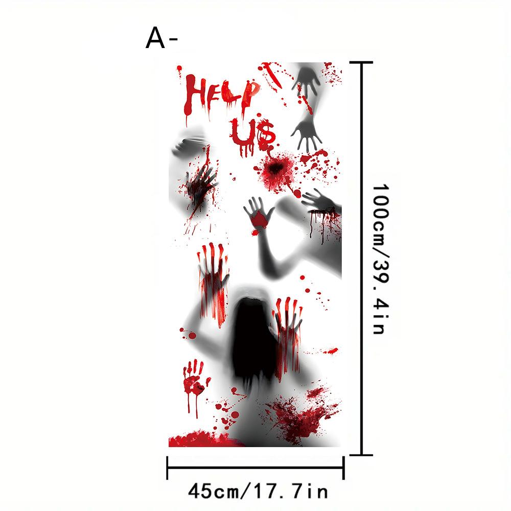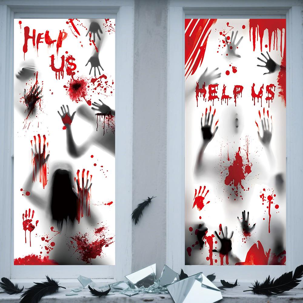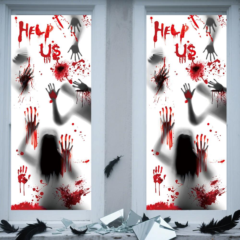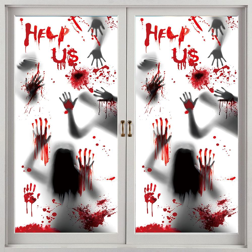 Halloween Horror Fantasma Femenino Calcomanía Decoración de Fiesta Huella de Mano de Sangre Puerta de Vidrio Ventana Calcomanía Estática de Vidrio Esmerilado