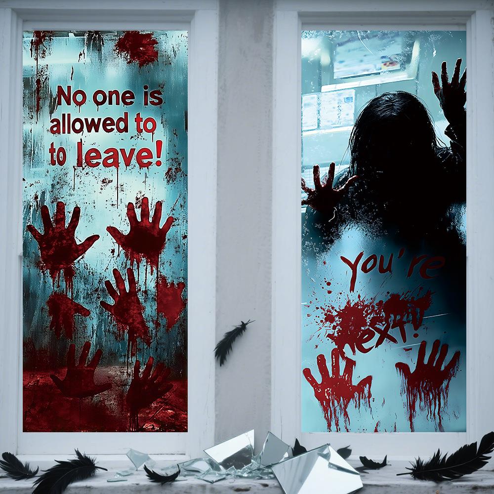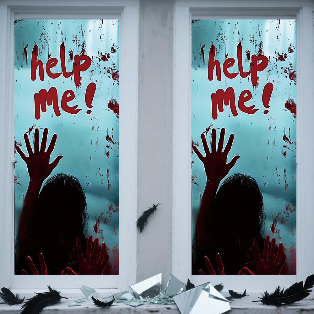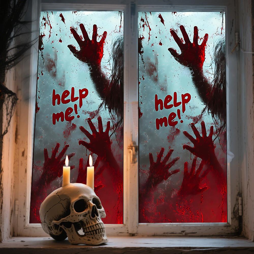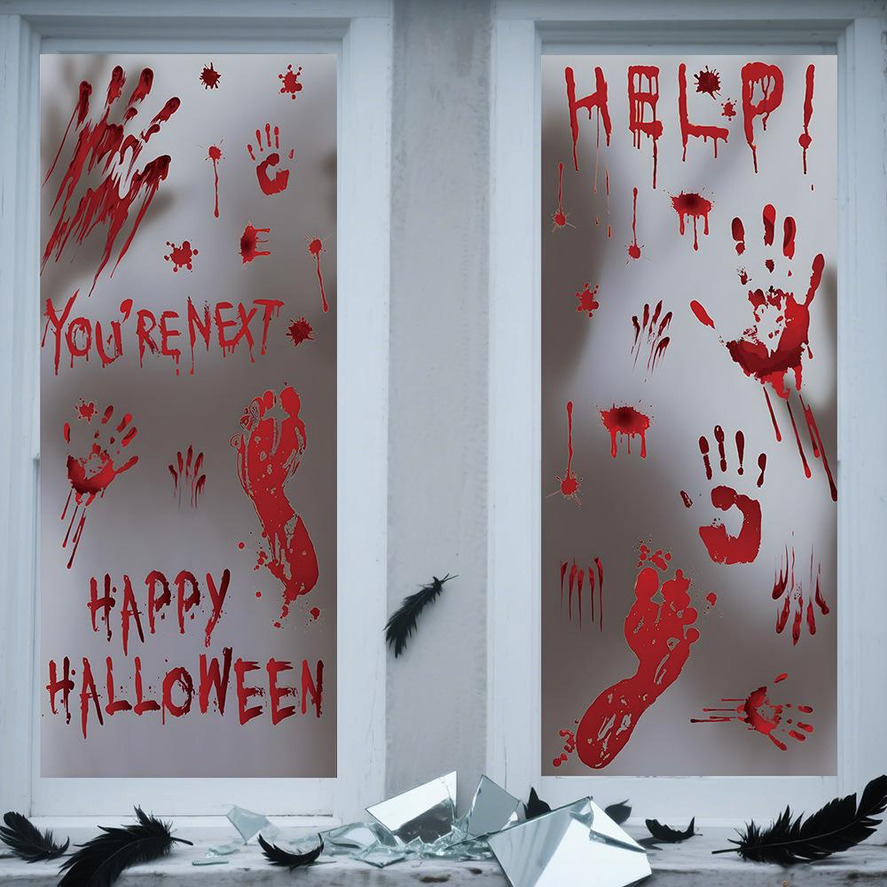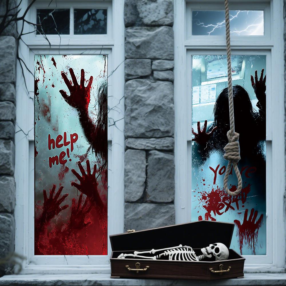 Halloween Horror Fantasma Femenino Calcomanía Decoración de Fiesta Huella de Mano de Sangre Puerta de Vidrio Ventana Calcomanía Estática de Vidrio Esmerilado