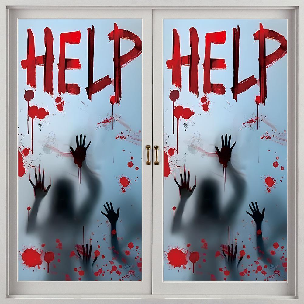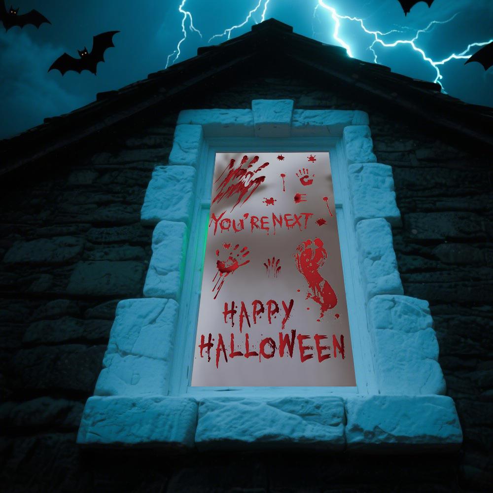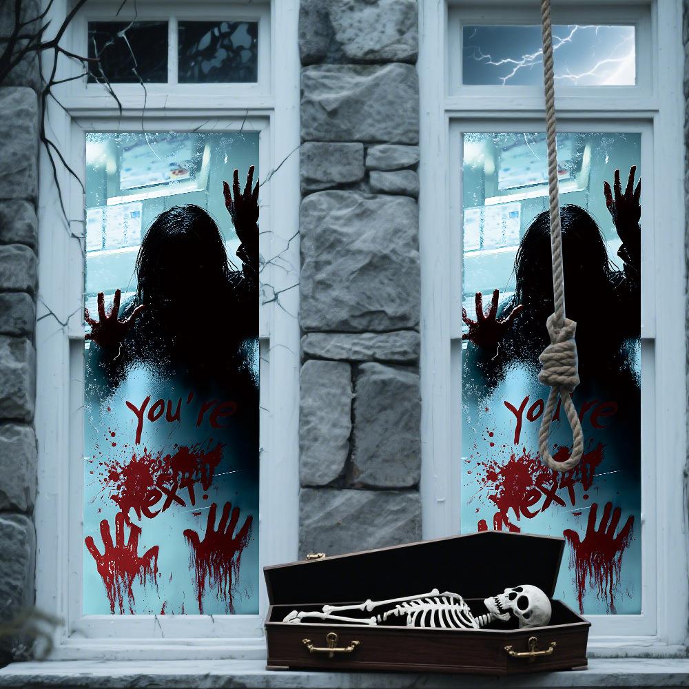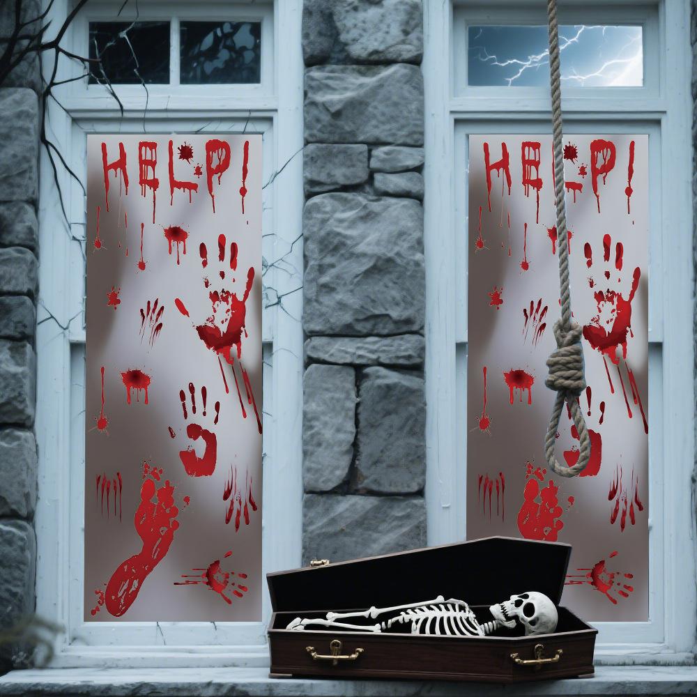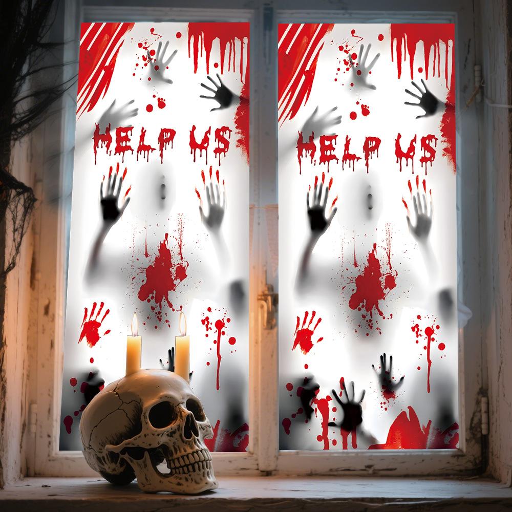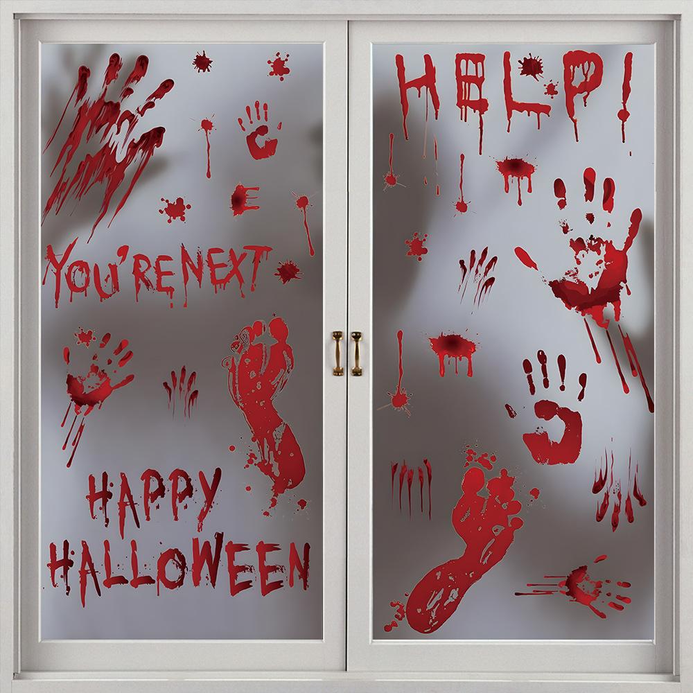 Halloween Horror Fantasma Femenino Calcomanía Decoración de Fiesta Huella de Mano de Sangre Puerta de Vidrio Ventana Calcomanía Estática de Vidrio Esmerilado