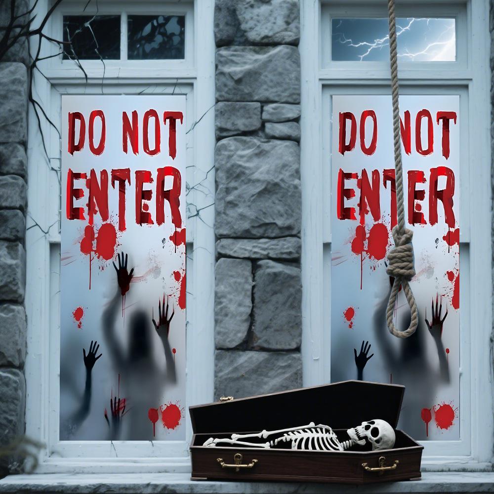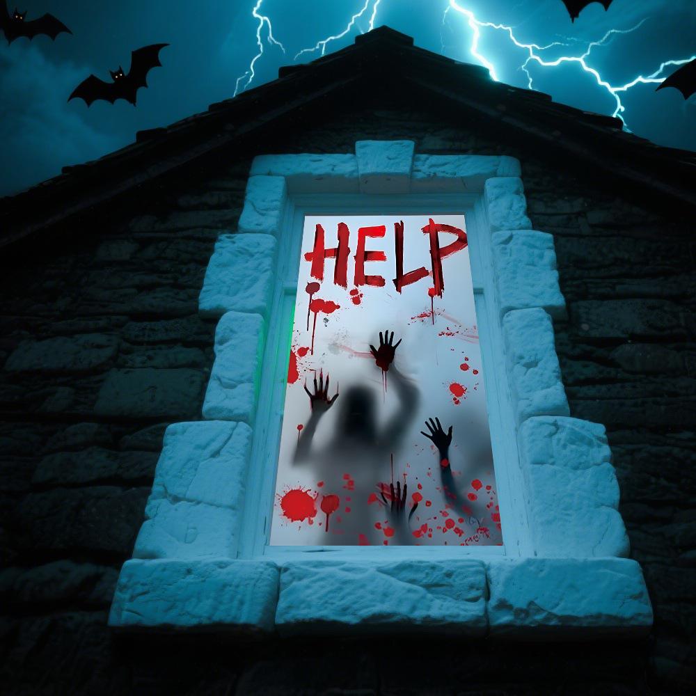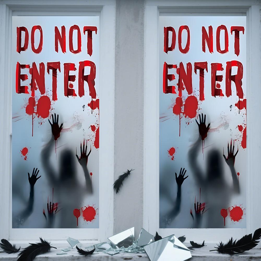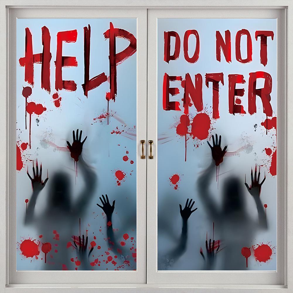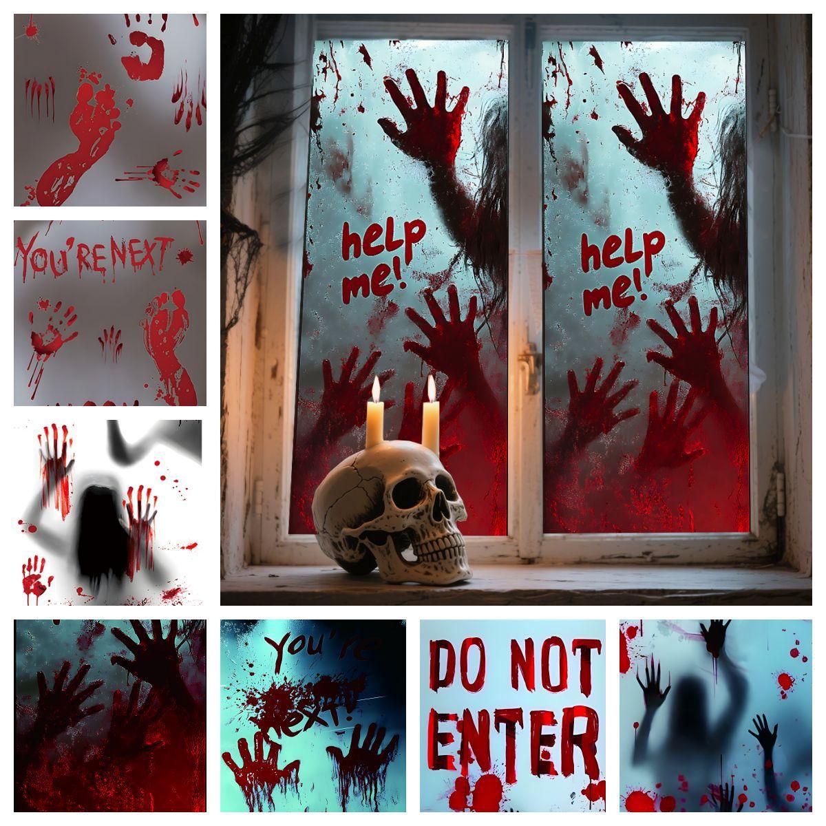 Halloween Horror Fantasma Femenino Calcomanía Decoración de Fiesta Huella de Mano de Sangre Puerta de Vidrio Ventana Calcomanía Estática de Vidrio Esmerilado