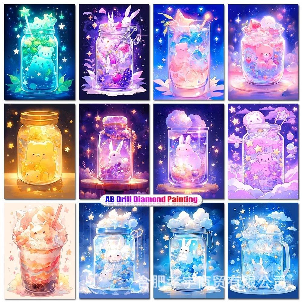 Diamante AB Colorido Lindo Animal Patrón de Dibujos Animados Jarrón Pintura de Diamantes Nuevo Punto de Cruz Lleno de Diamantes Decoración para Dormitorio Sala de Estar