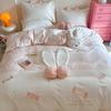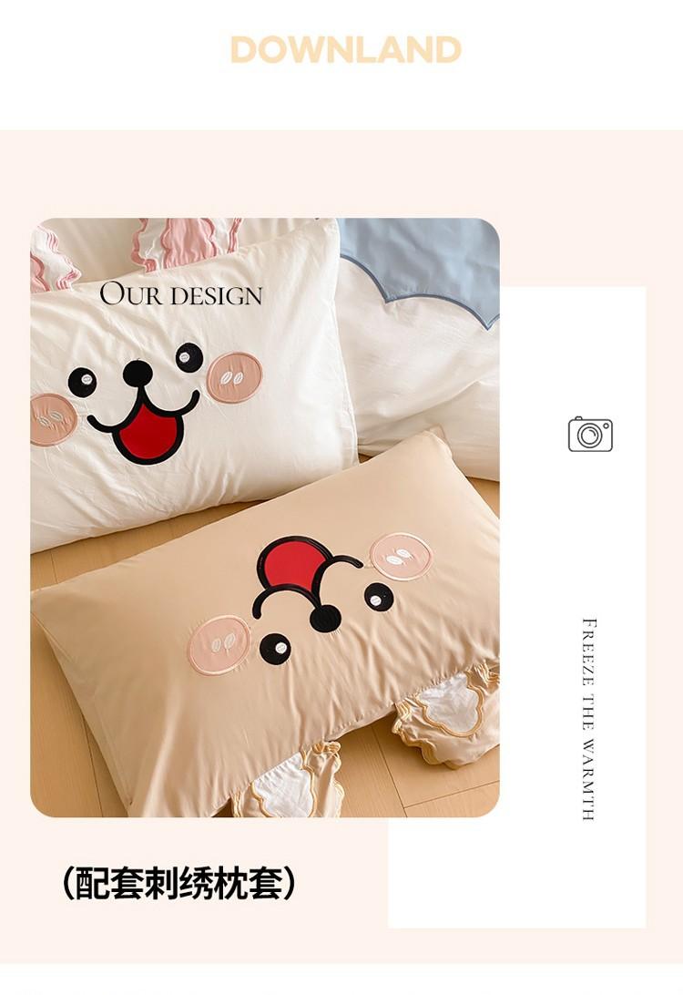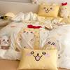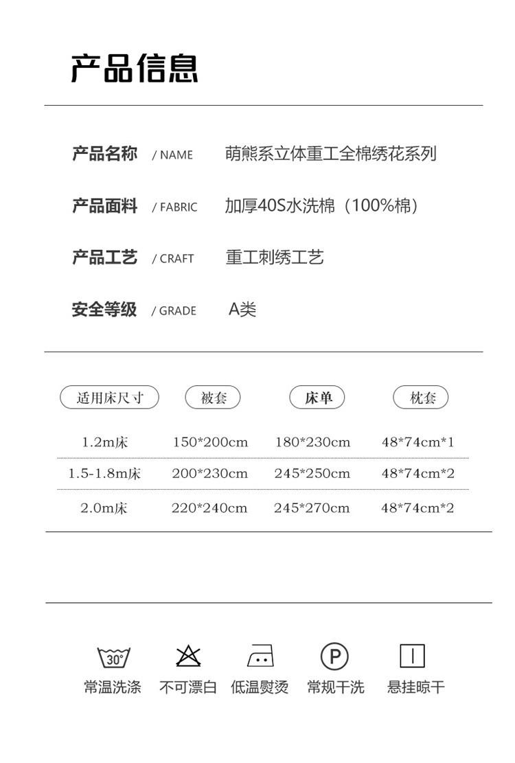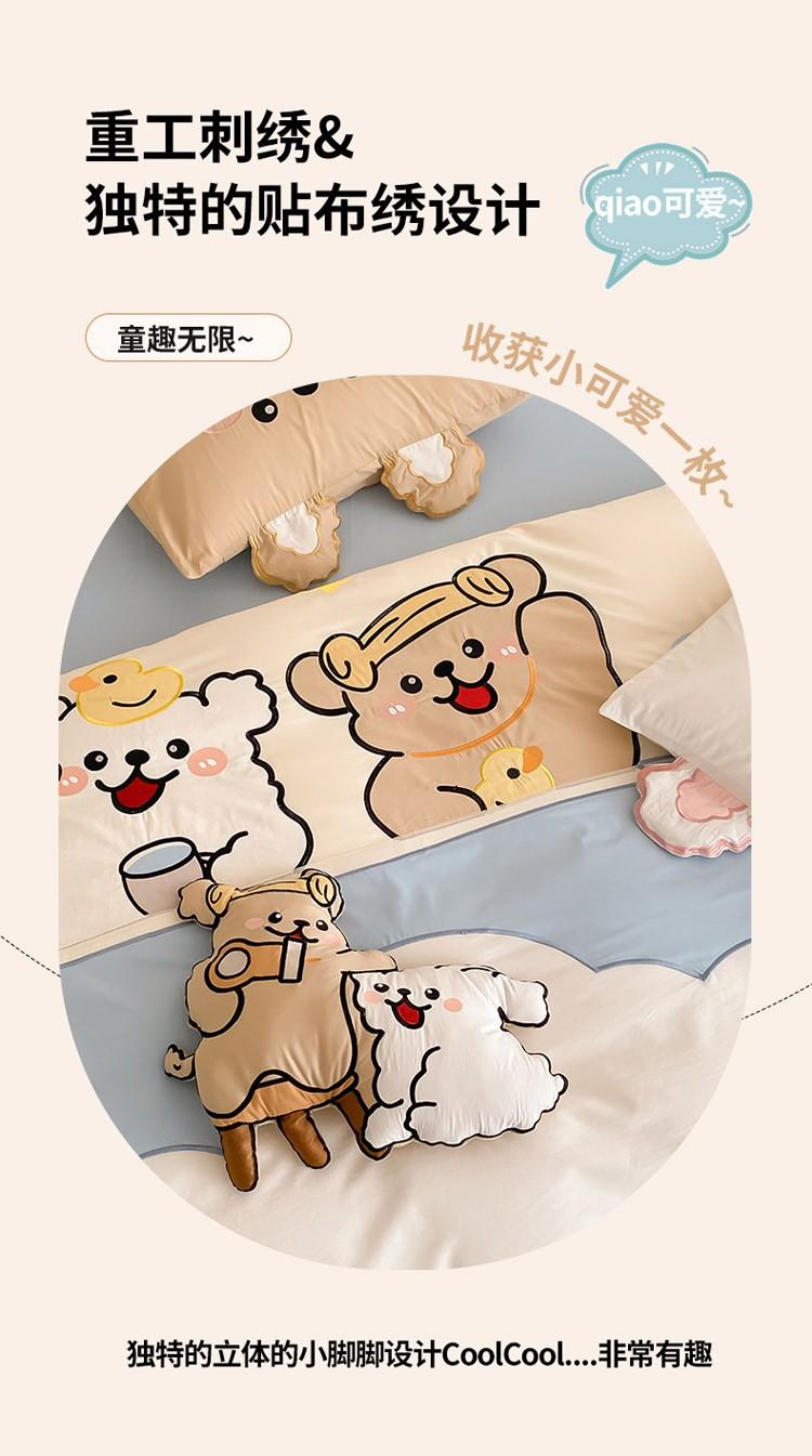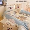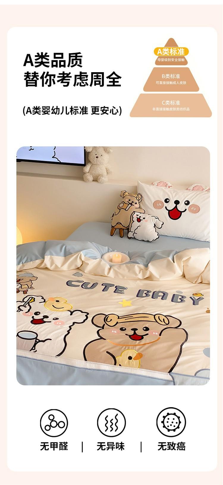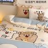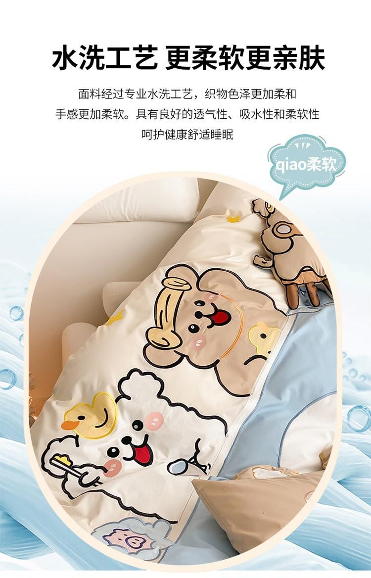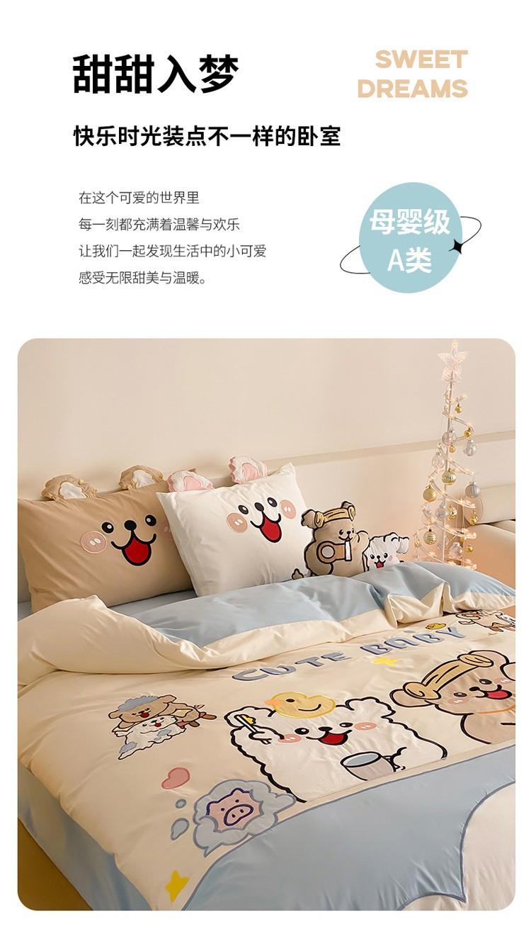 Juego de cuatro piezas de algodón puro engrosado Clase A, algodón lavado, bordado de oso de dibujos animados, lindo, funda de edredón, sábana, ropa de cama 1.2 niños