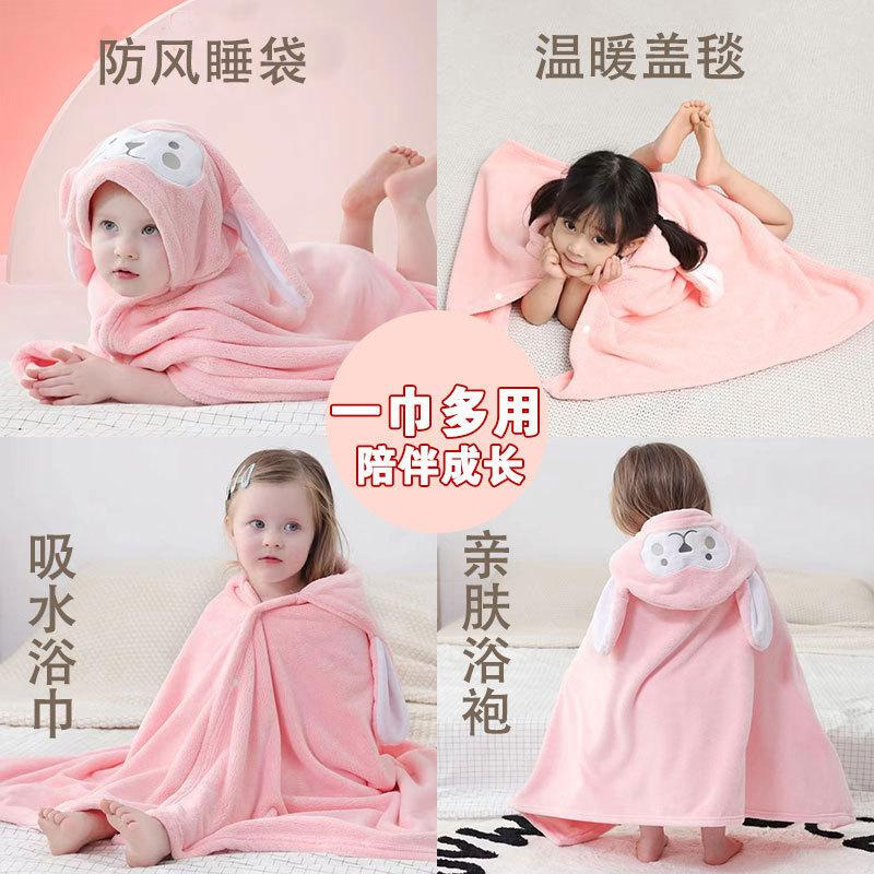 Toalla de baño infantil de forro polar coral, capa con capucha, camisón para bebé, absorbente, sin pelusa, para bebé, baño de cuatro estaciones, albornoz lindo