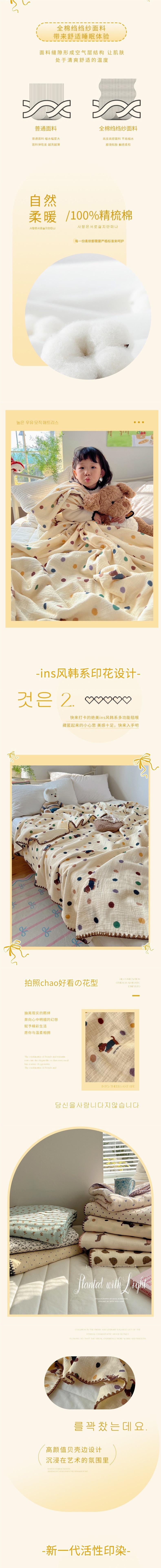 2025 nuevo estilo ins coreano Clase A todo algodón puro algodón 4 capas gasa arrugada manta multifuncional