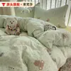 Juego de cuatro piezas de algodón de doble hilo estilo caricatura Ins para niños, sábana de algodón, funda nórdica, ropa de cama de gasa 100% algodón al por mayor